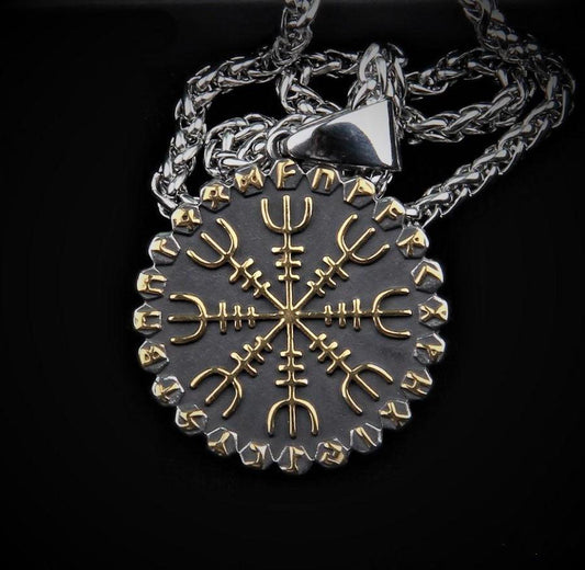 Vegvisir & Aegishjalmur 2 Sides Runic Necklace