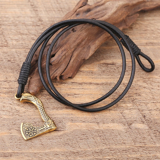 Viking Wolf Axe Leather Wrap Bracelet