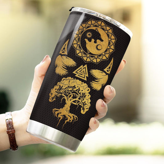 Viking Wolf Raven And Tree Of Life - Viking Tumbler