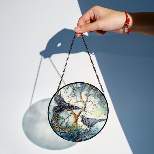 Yggdrasil Ravens - Viking Stained Glass Hanging Ornament