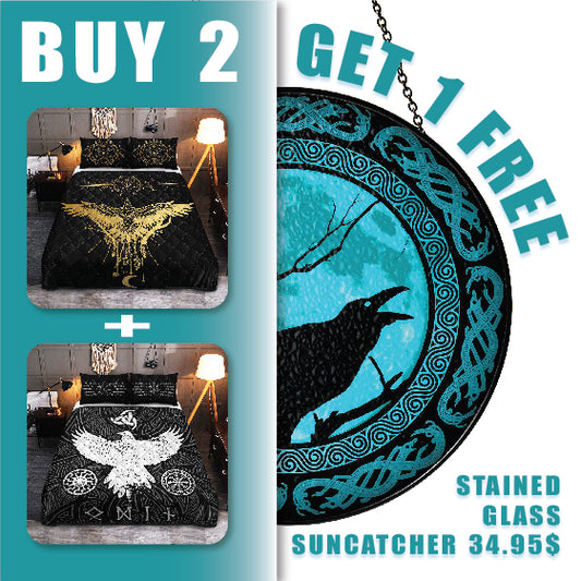 Odin's Wisdom Raven Viking Quilt Set Collection