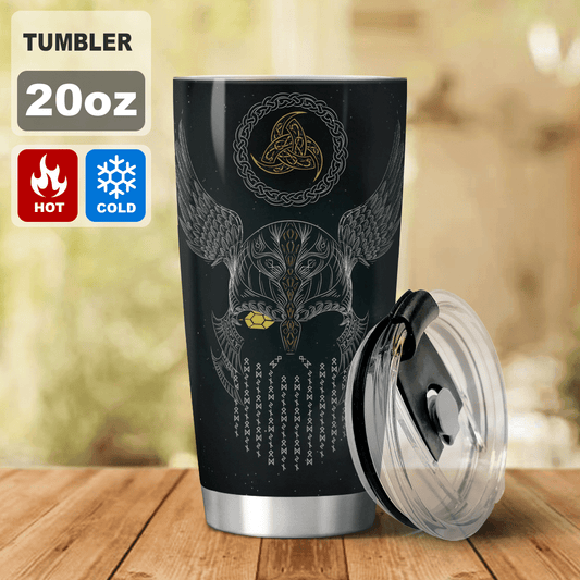 Wolf Hammer Raven Valknut - Viking Tumbler