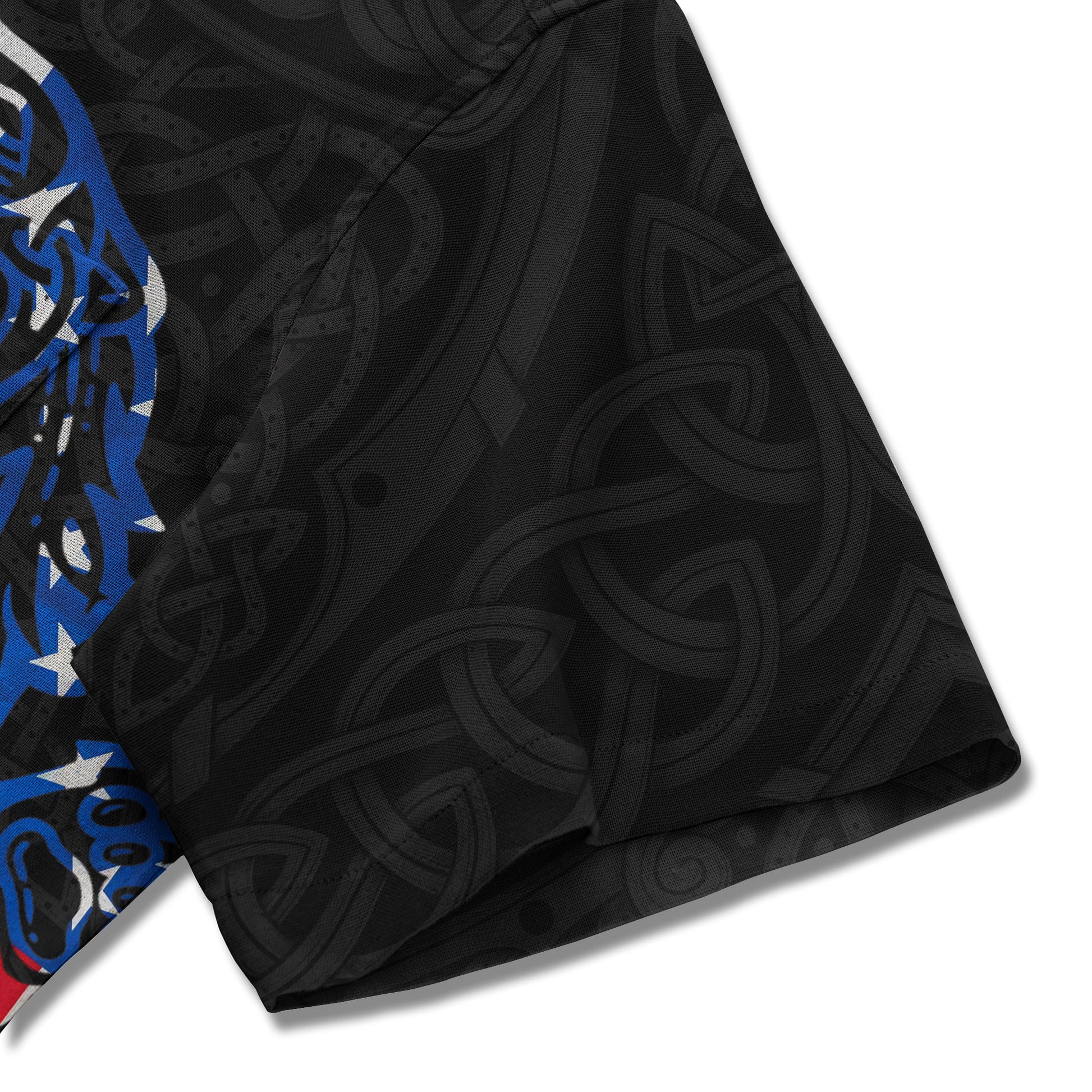Our Hawaiian Collection blends the vibrant charm of tropical designs with the powerful symbols of Norse mythology, creating a truly one-of-a-kind look that represents bold Viking heritage with a modern twist.