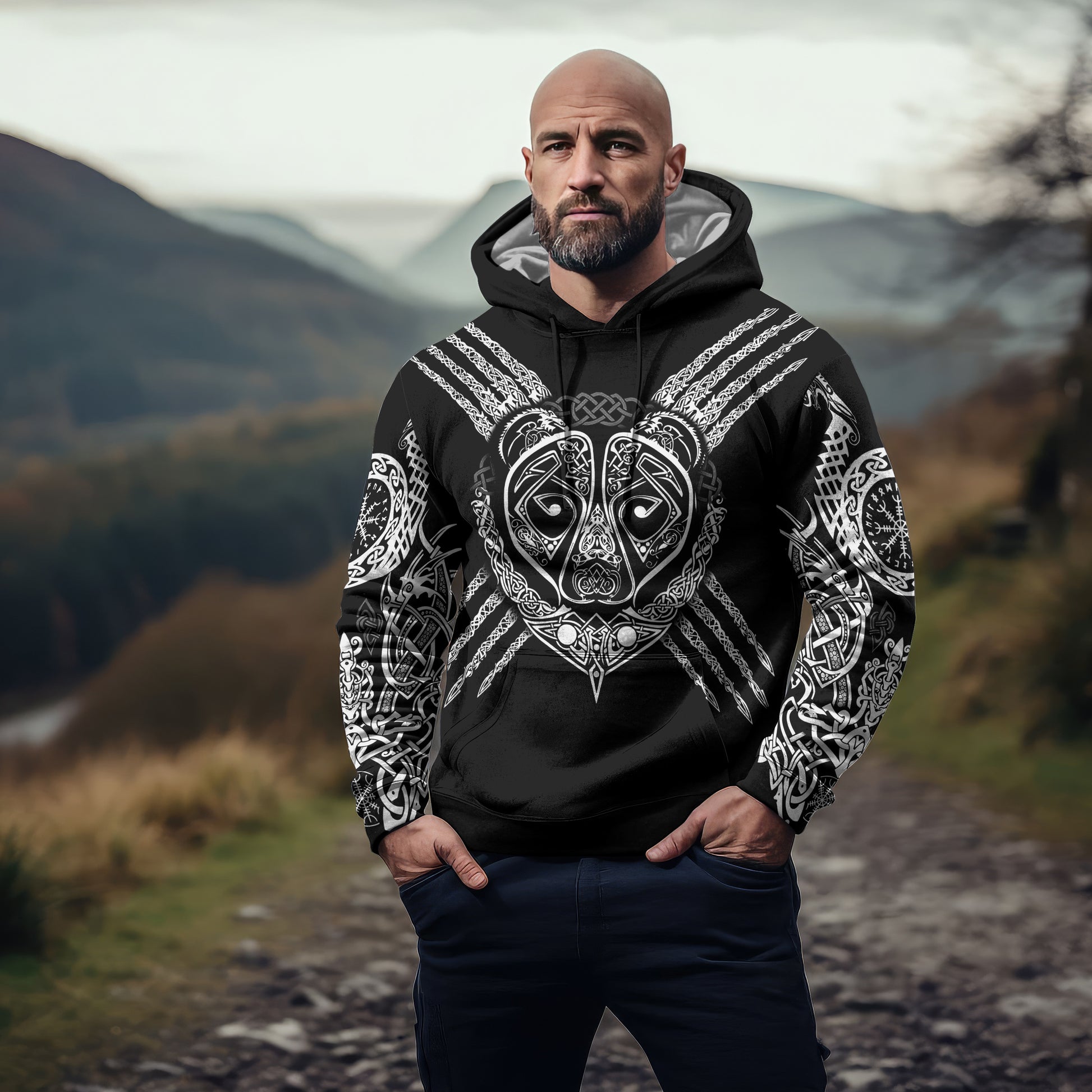 • All-Over Print: Bold Viking-themed designs printed across the entire hoodie, making it a unique addition to your wardrobe.