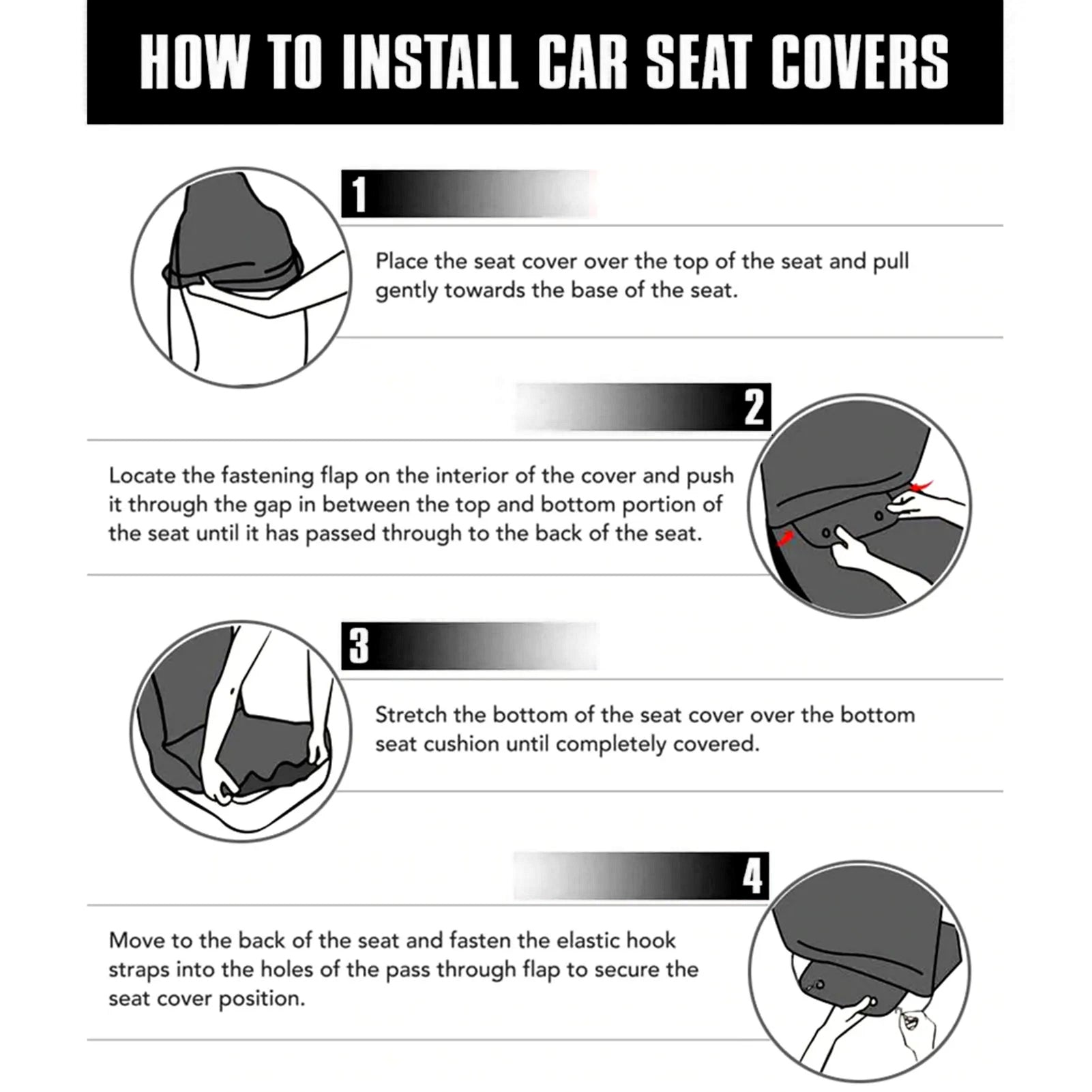 ⚠️ Note: These are semi-universal fit seat covers; they are not suitable for seats with integrated airbags, seat belts, or armrests.