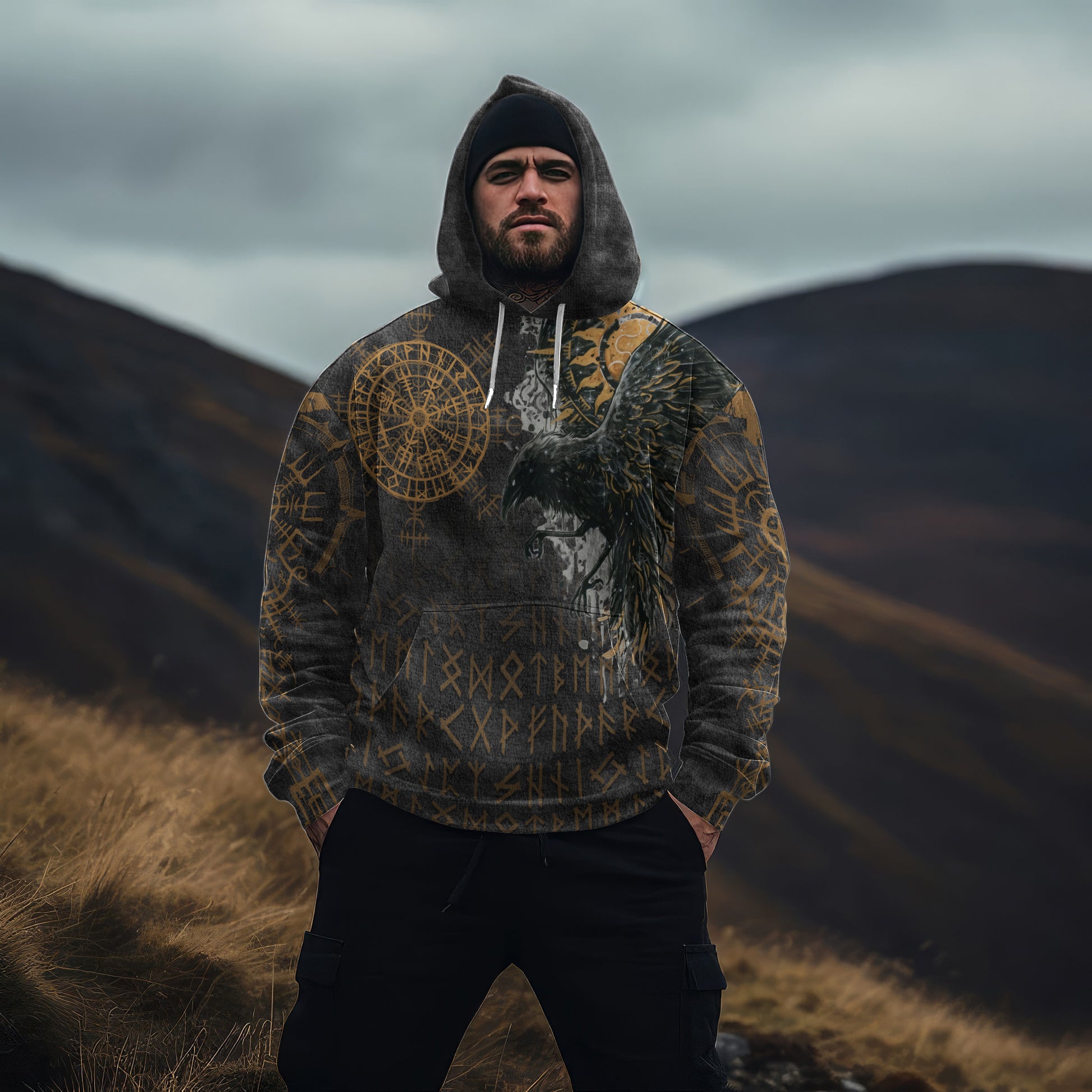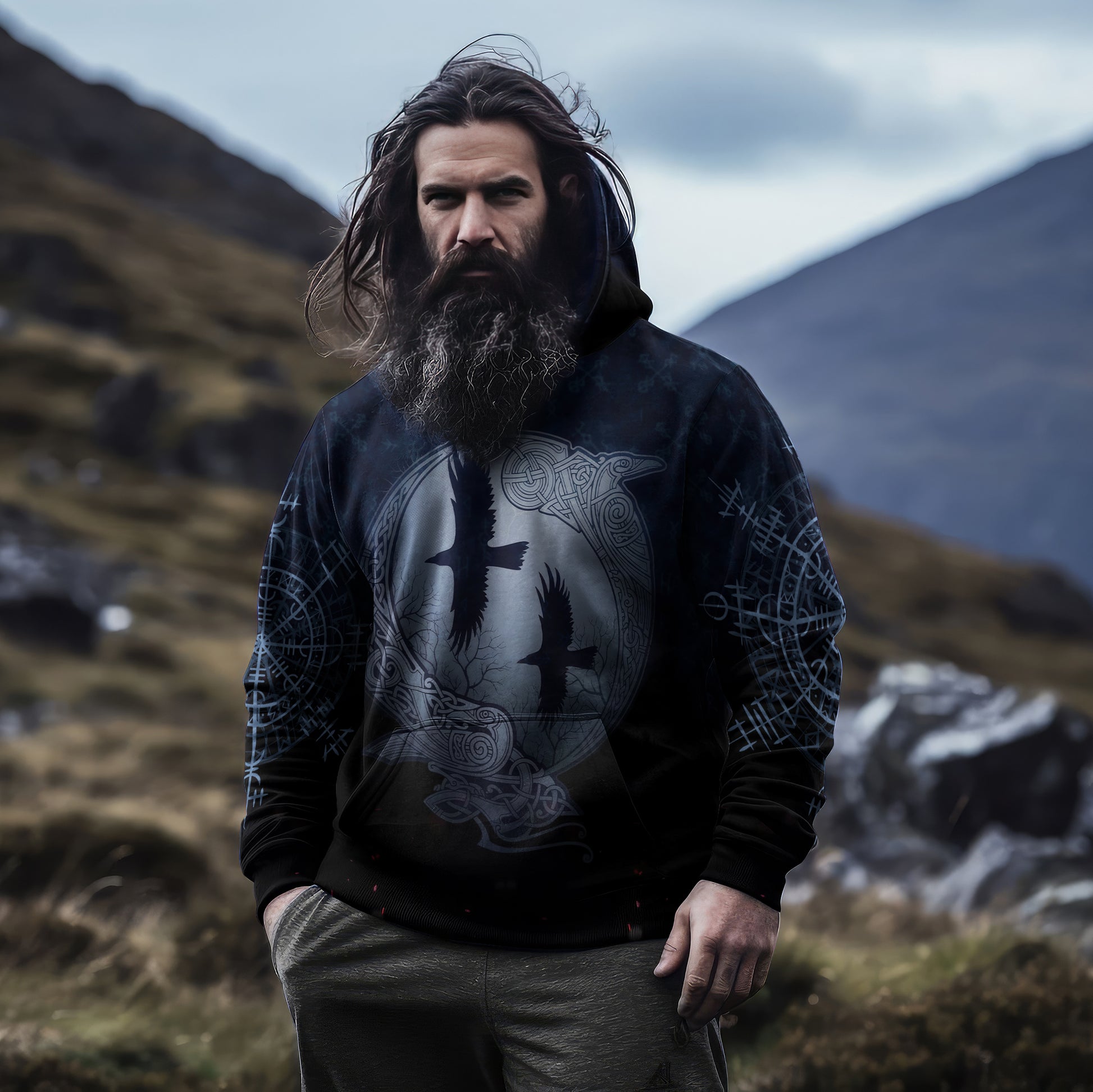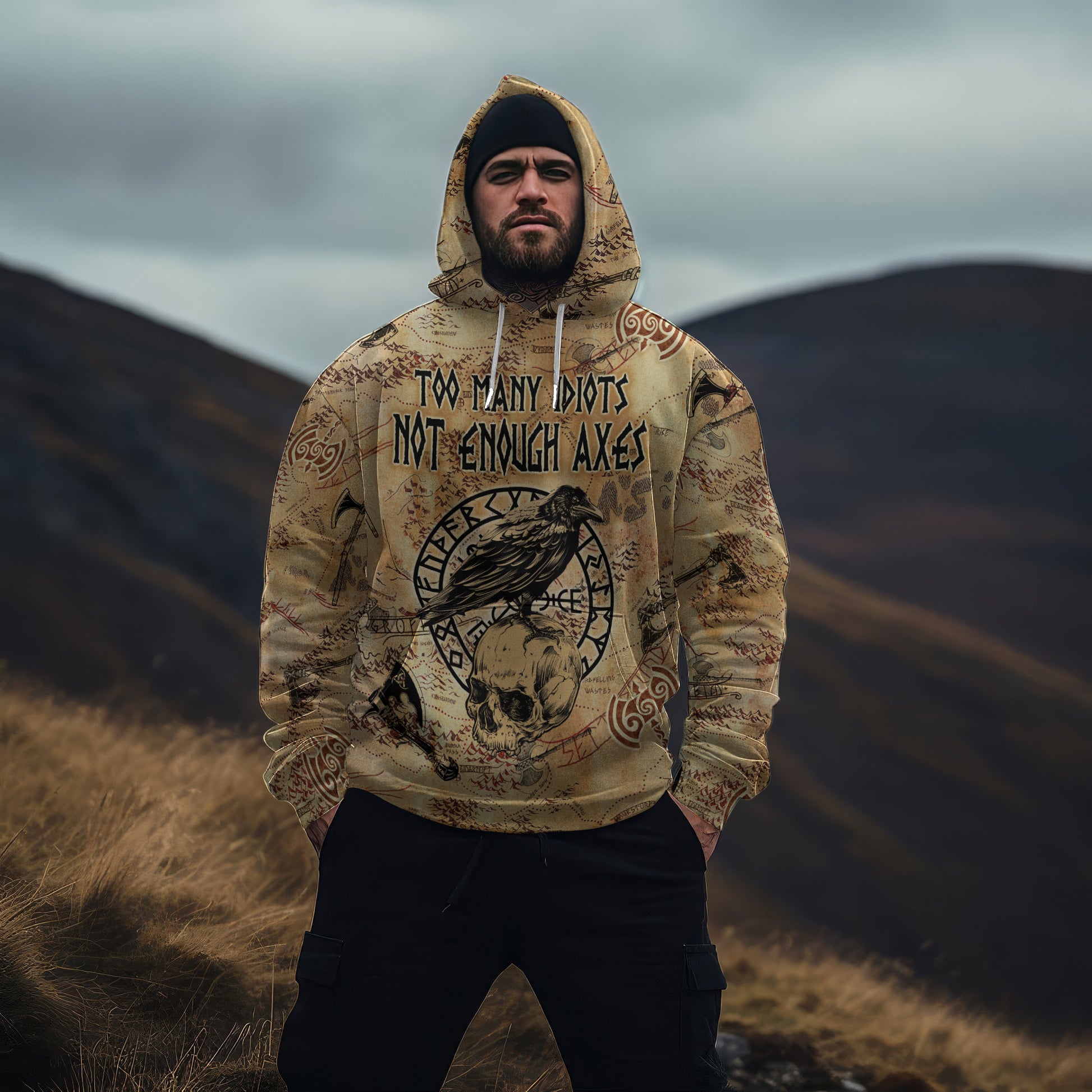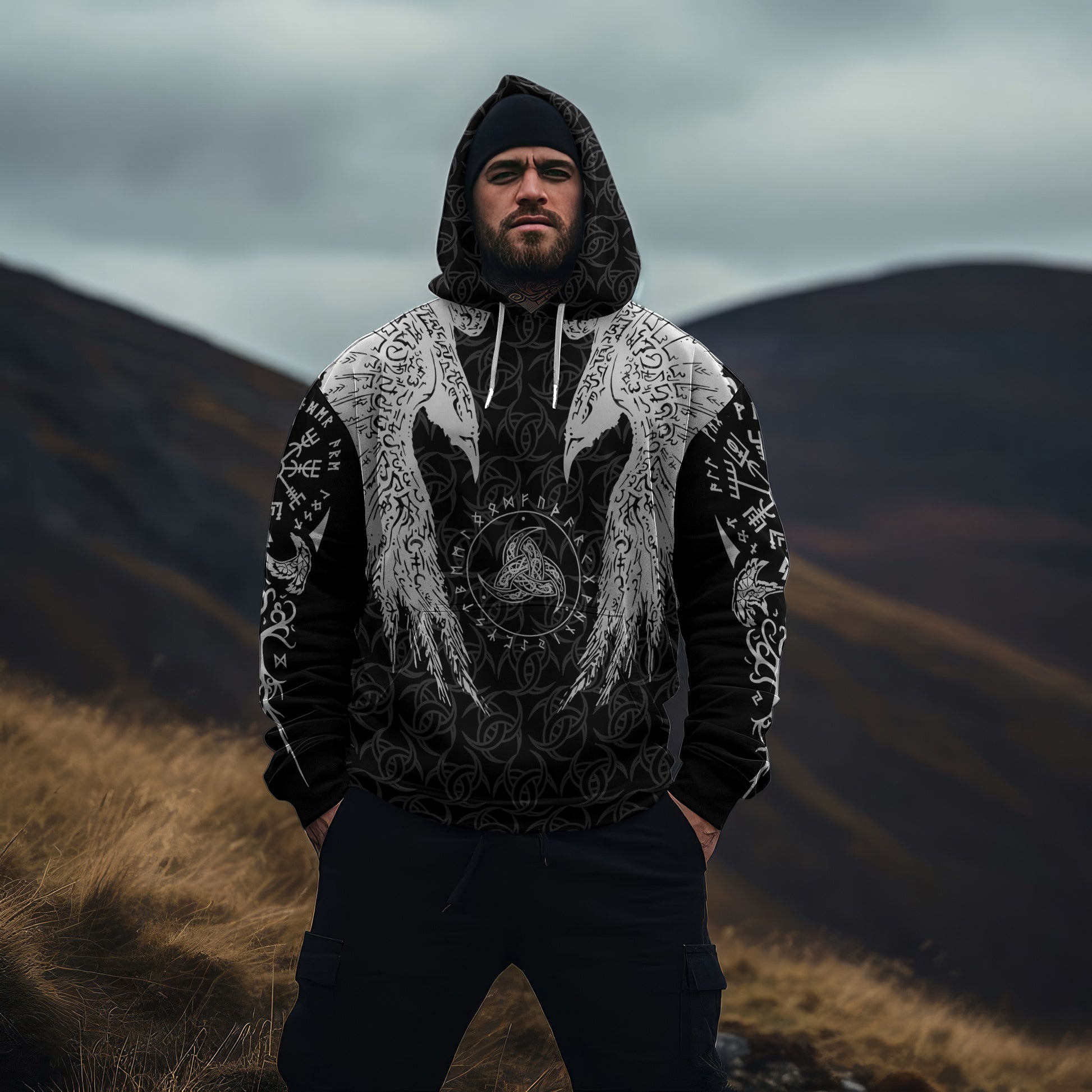 • All-Over Print: Bold Viking-themed designs printed across the entire hoodie, making it a unique addition to your wardrobe.