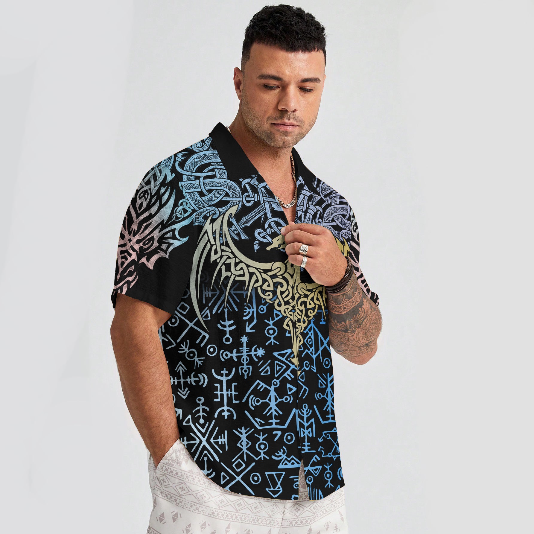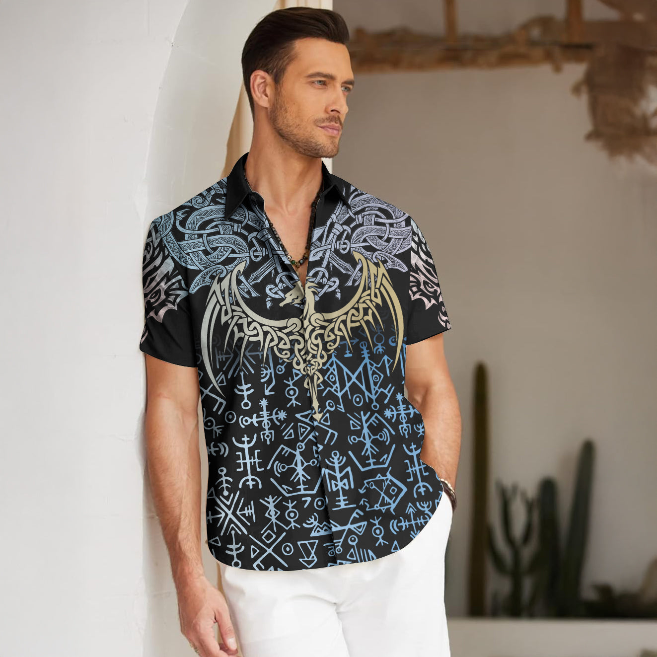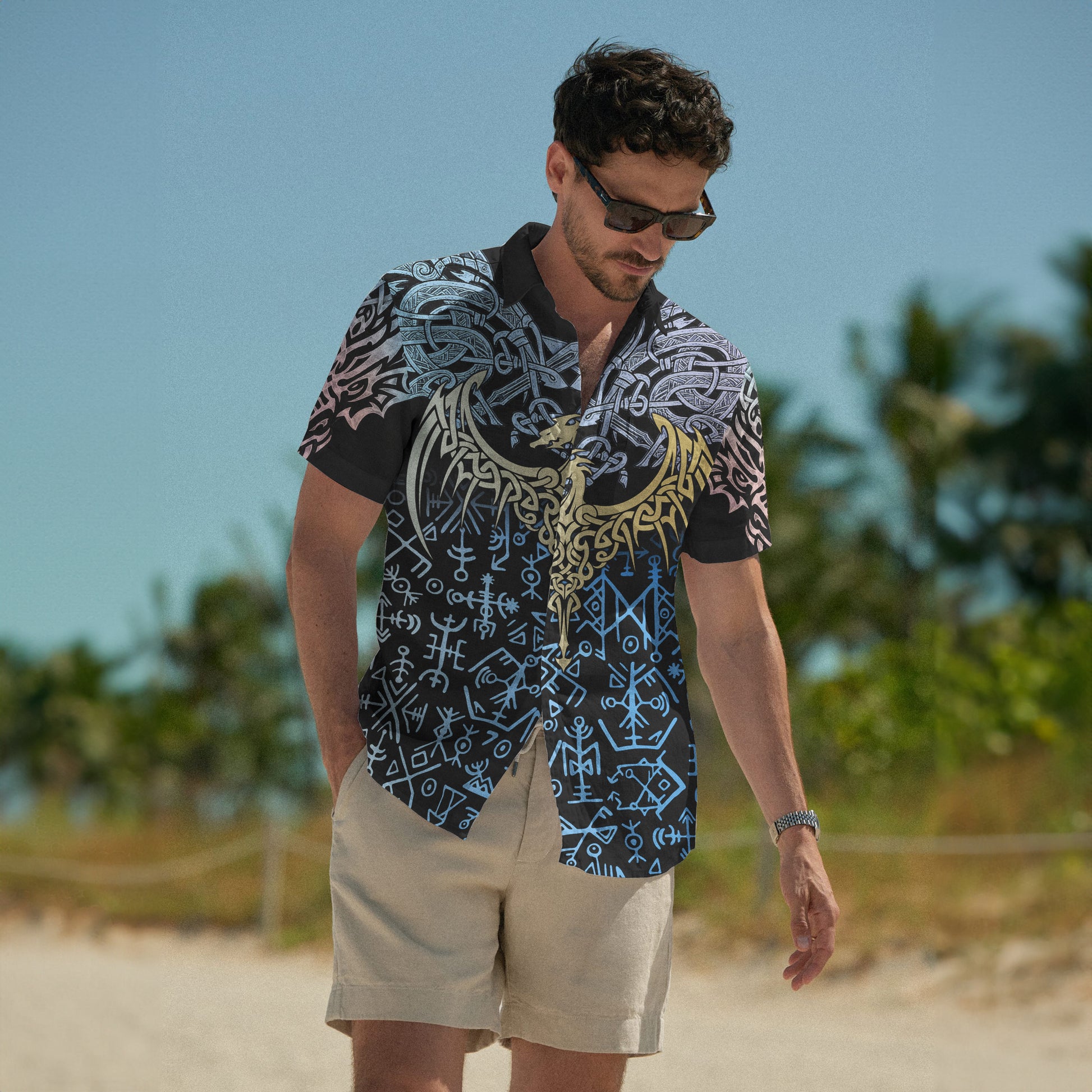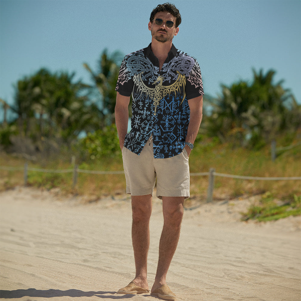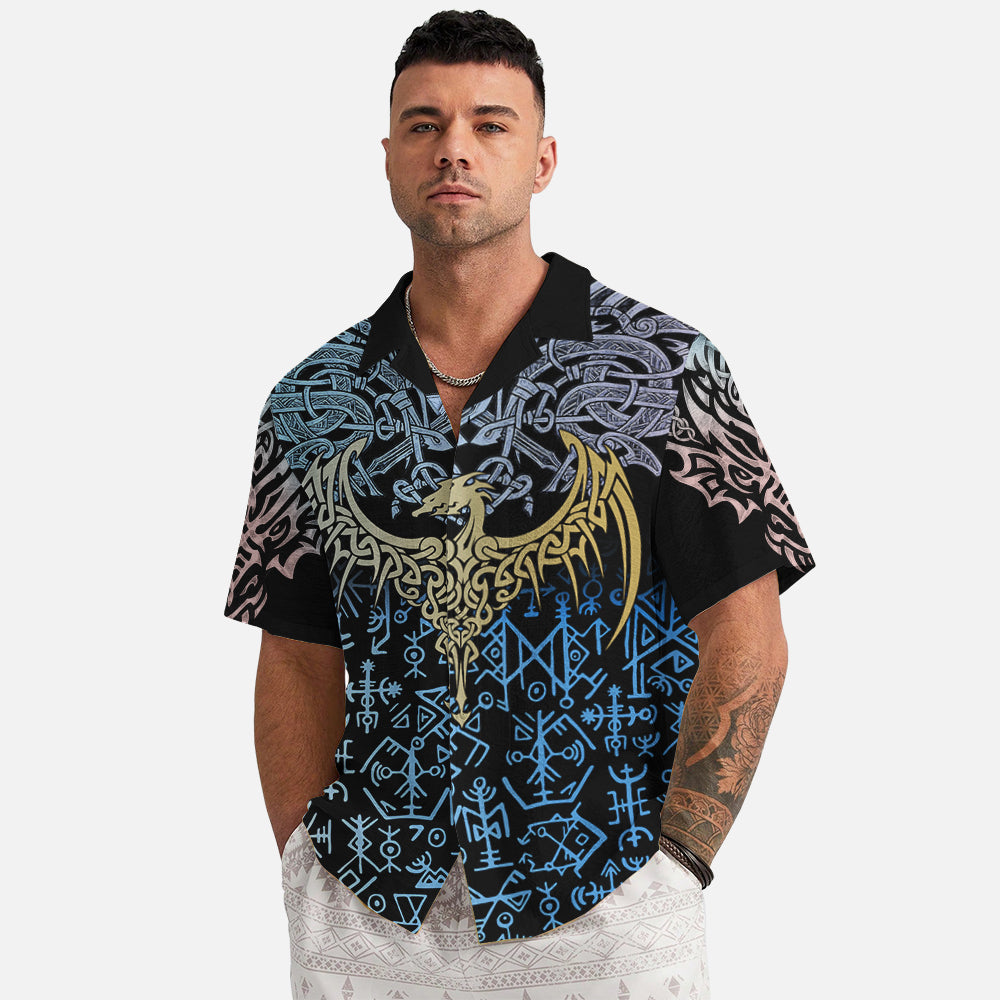 With a design inspired by Norse mythology, Blue Rune Dragon – Hawaii Shirt embodies the Viking spirit. Own it to confidently showcase your Viking style.