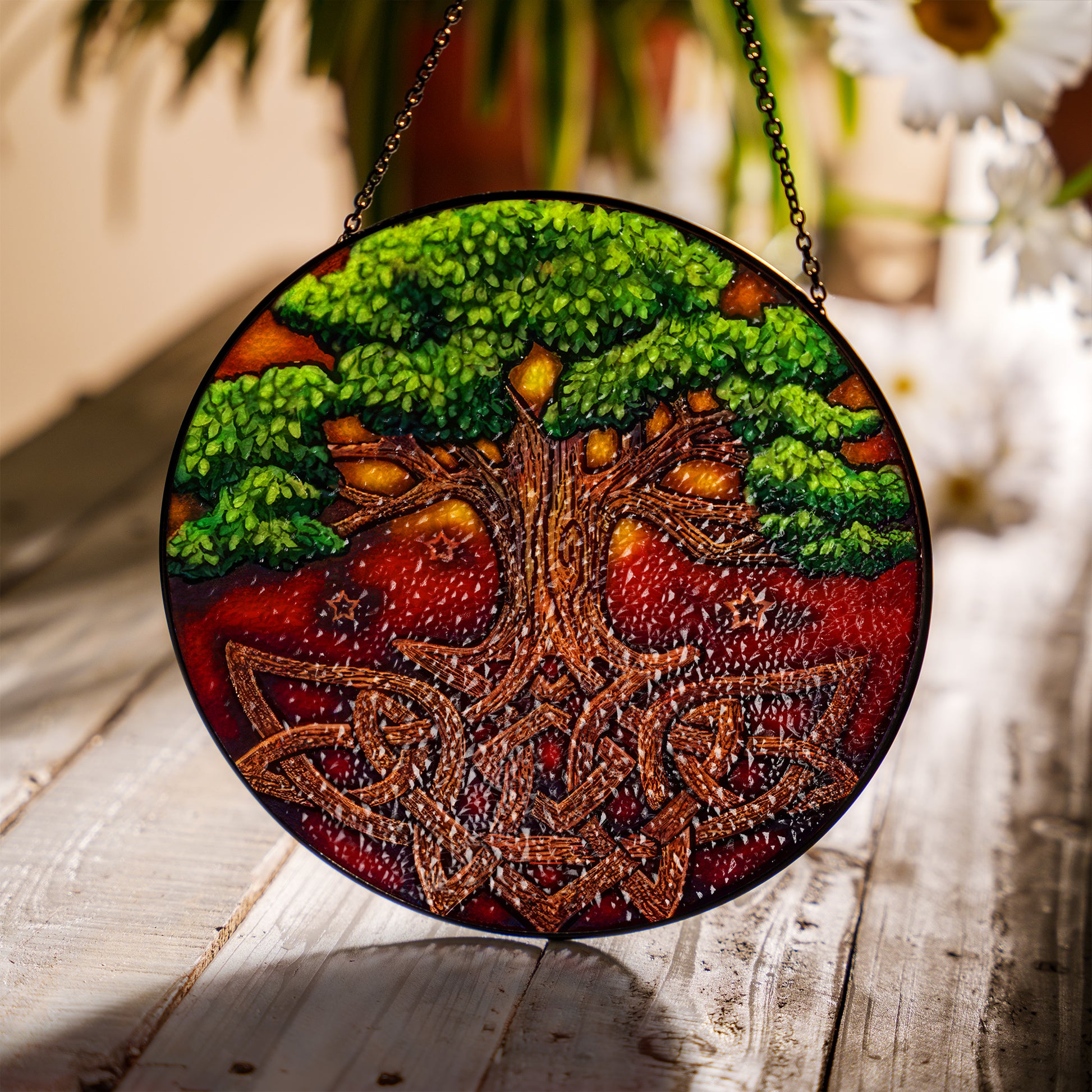 Celtic Yggdrasil - Viking Stained Glass Hanging Ornament