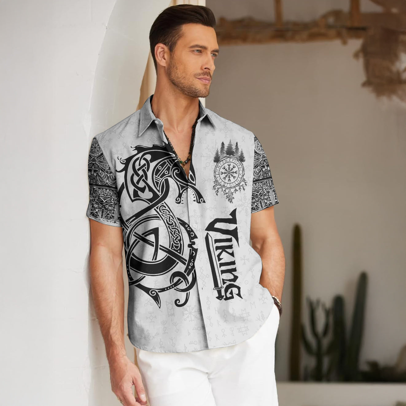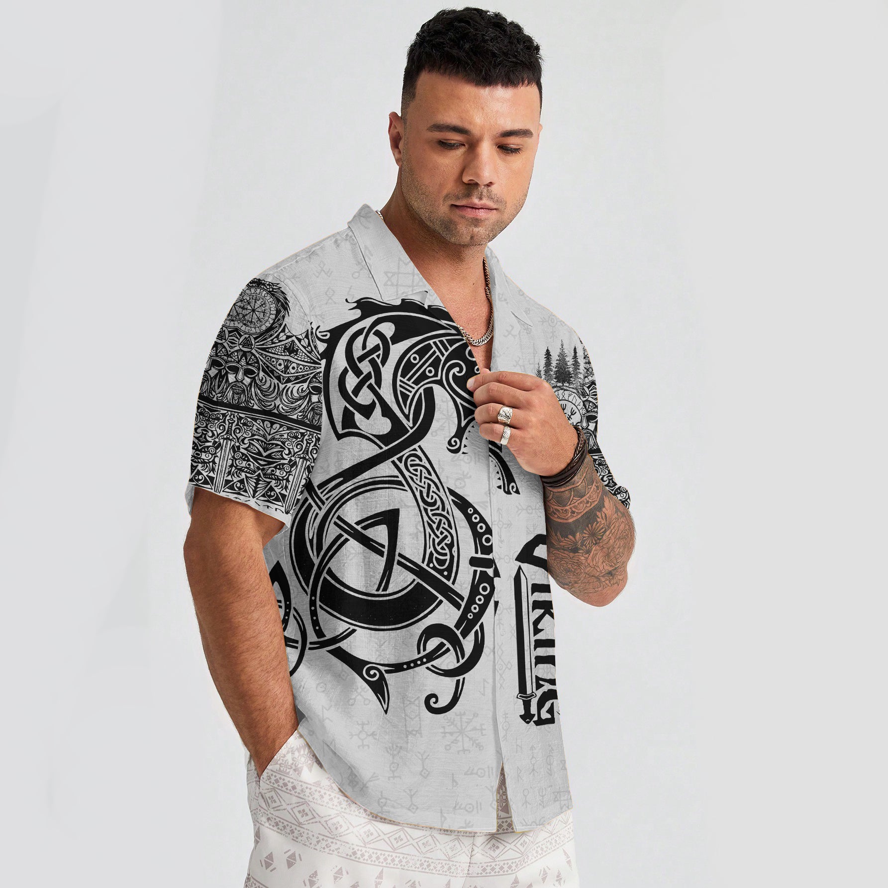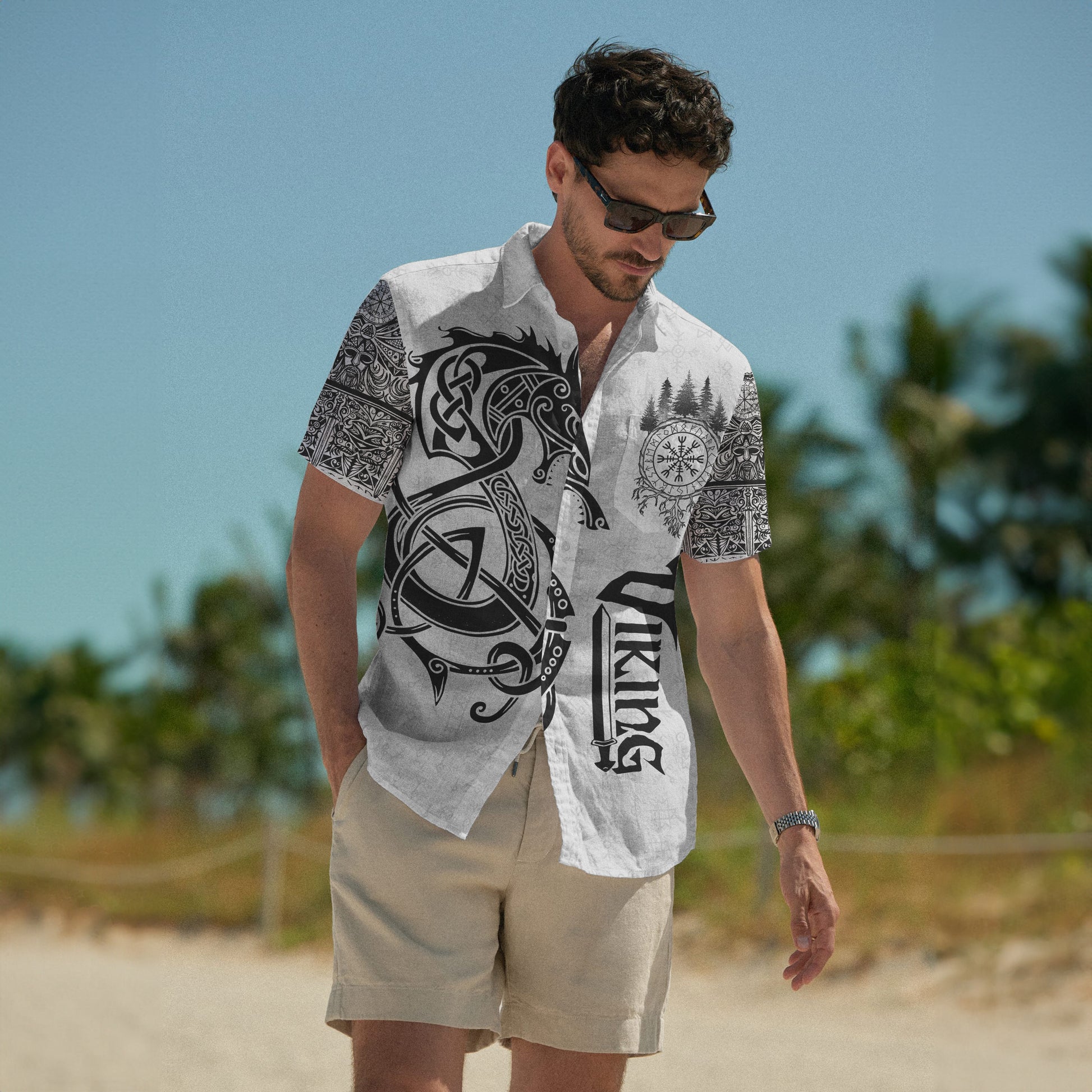 With a design inspired by Norse mythology, Dragon Shield Viking Hawaiian Shirt embodies the Viking spirit. Own it to confidently showcase your Viking style.