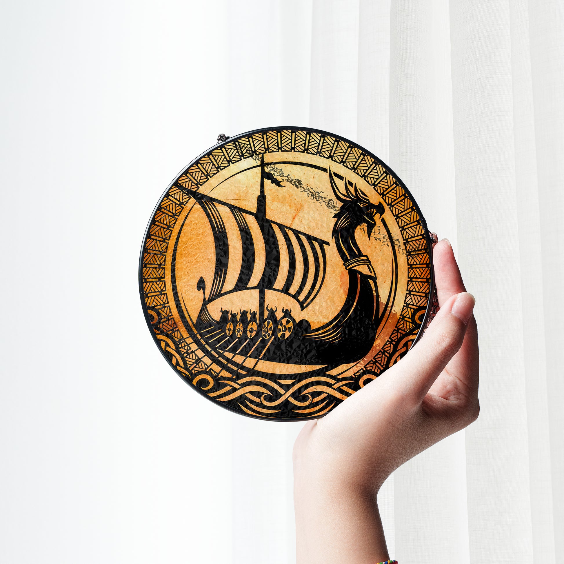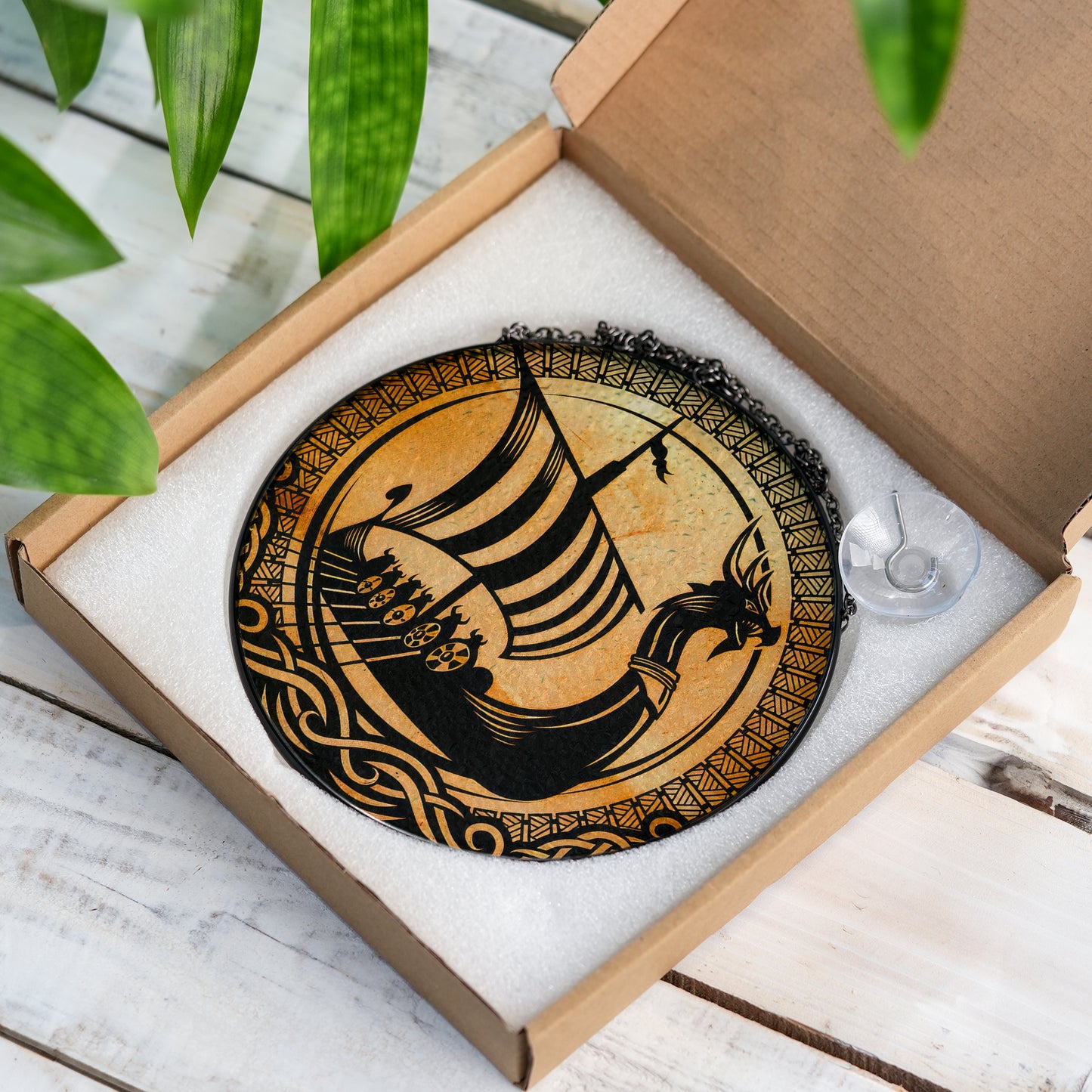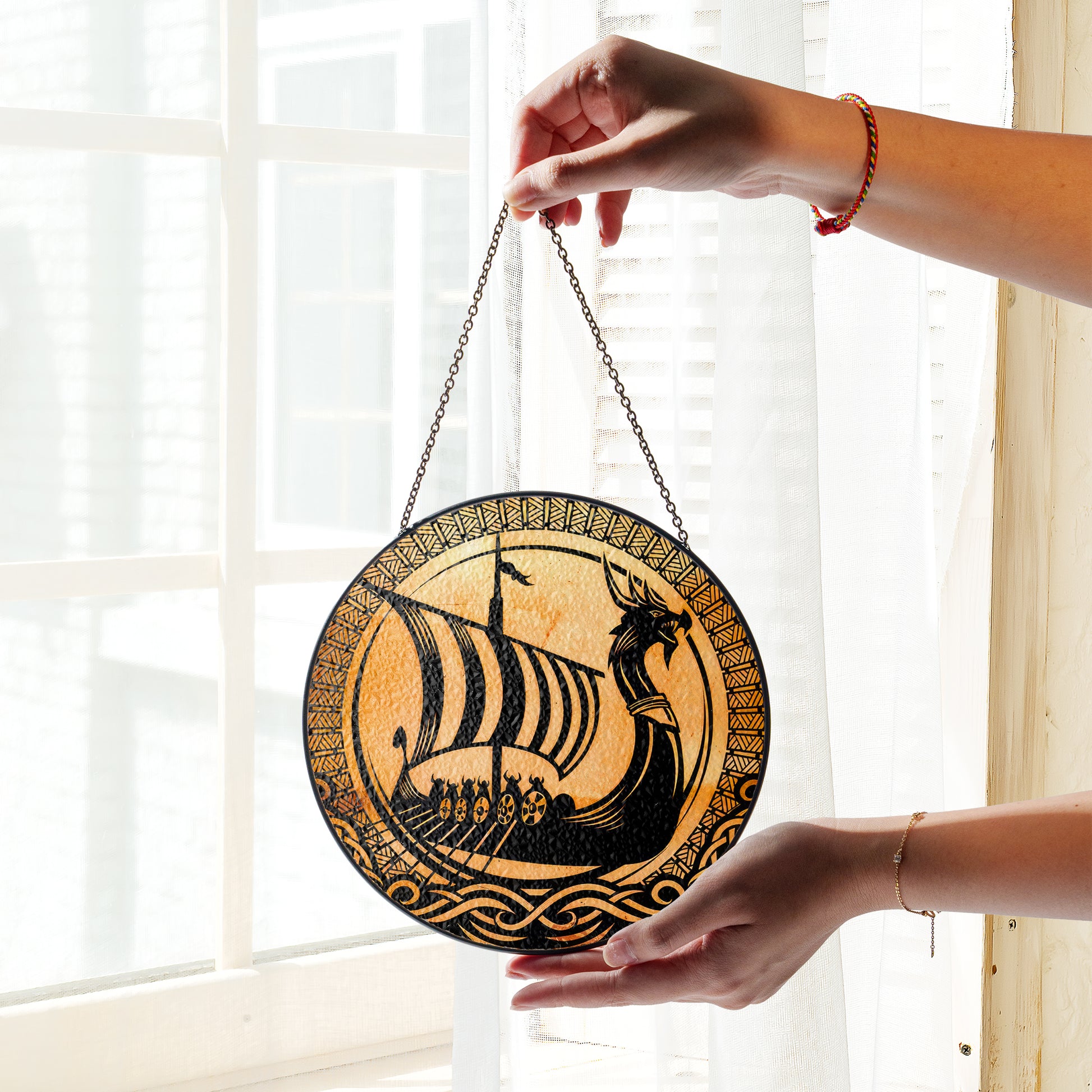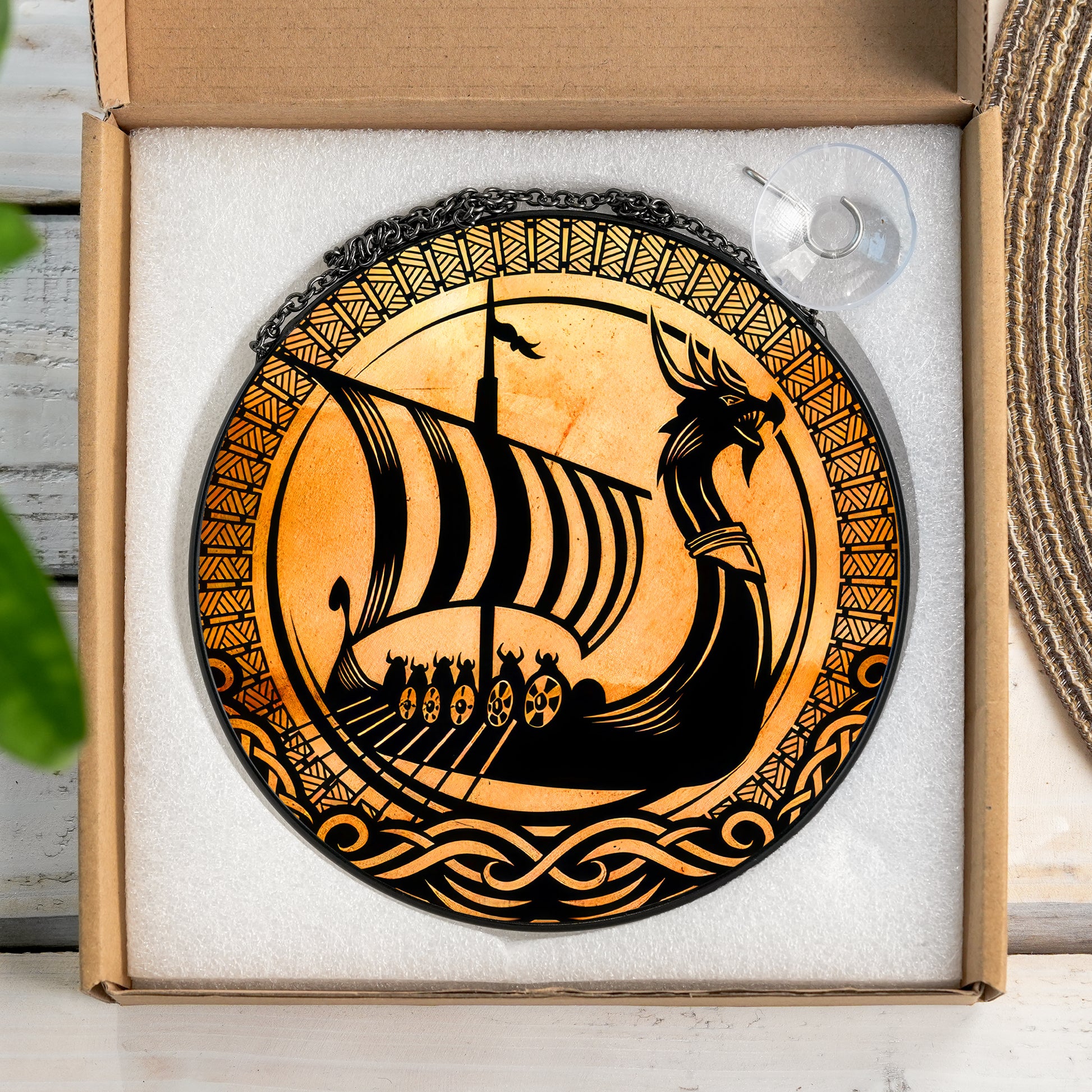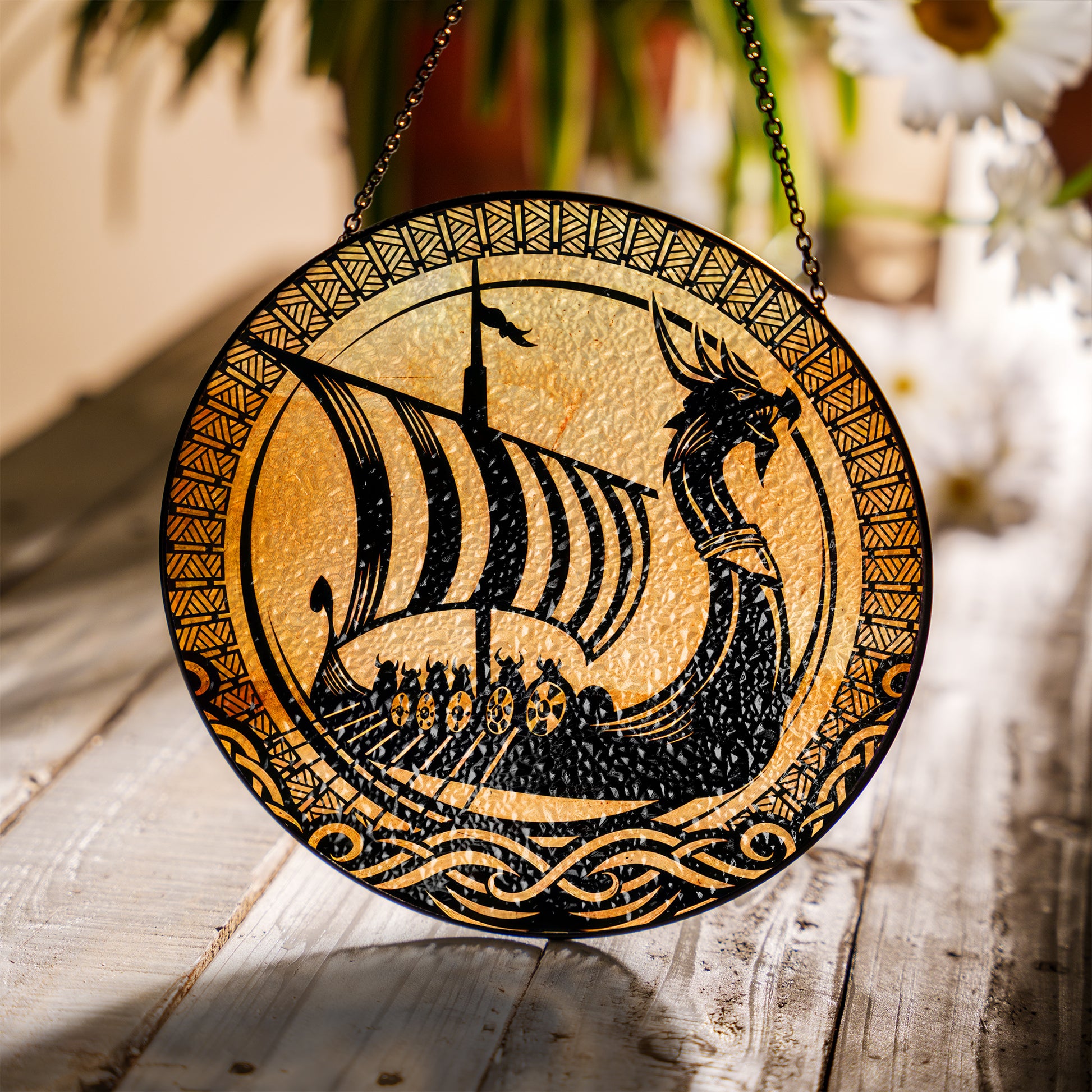 Drakkar Voyage - Viking Stained Glass Hanging Ornament