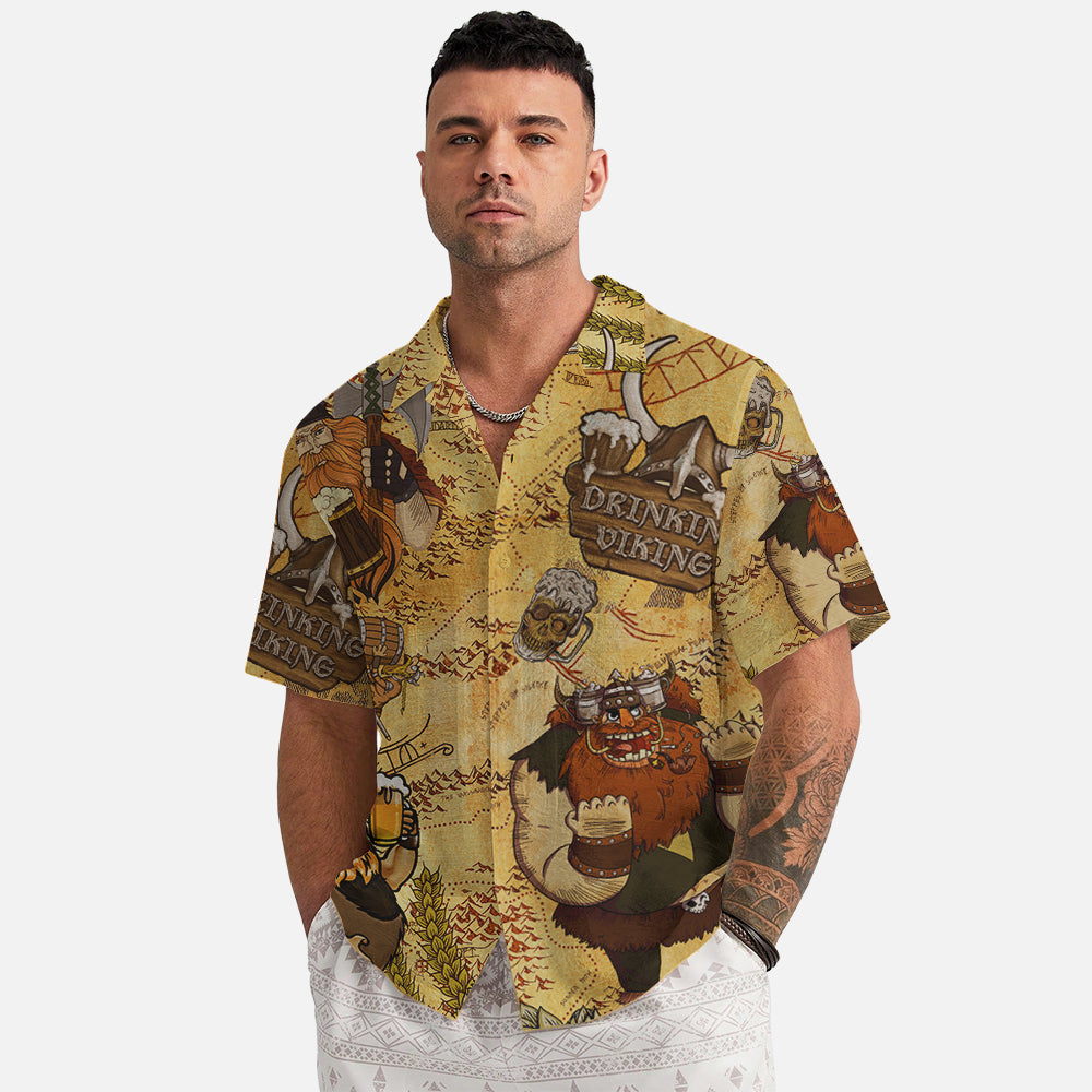With a design inspired by Norse mythology, Drinking Viking Party – Hawaiian Shirt embodies the Viking spirit. Own it to confidently showcase your Viking style.