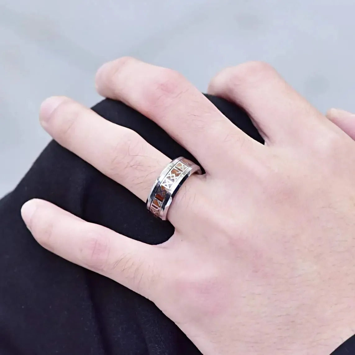 The Eternal Norse Rune Ring – a symbol of unyielding strength and the spirit of unbounded adventure. Crafted from high-grade stainless steel, this ring boasts superior durability, hypoallergenic properties, and scratch resistance. Adorned with ancient Nordic Rune engravings, it exudes traditional Viking flair. The highlight is the inlaid layer of precious Koa wood, lending it a unique touch of elegance. Suitable for both men and women, the Eternal Norse Rune Ring can serve as a meaningful gift or a token of commitment in matrimony.
