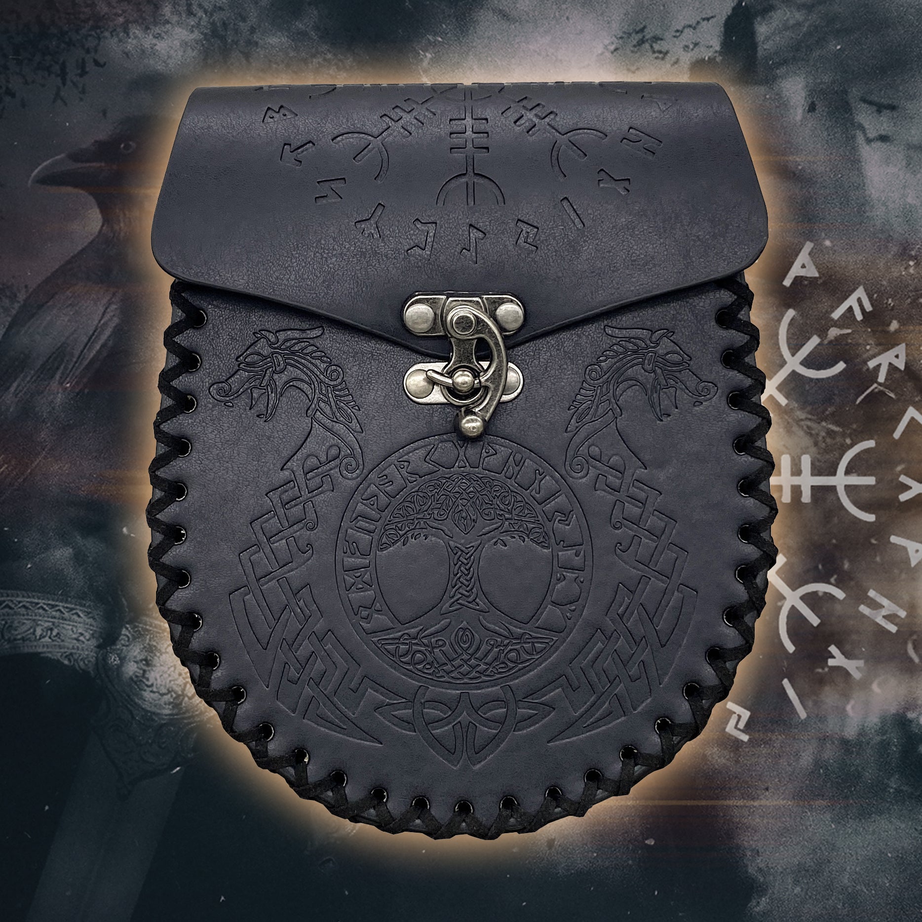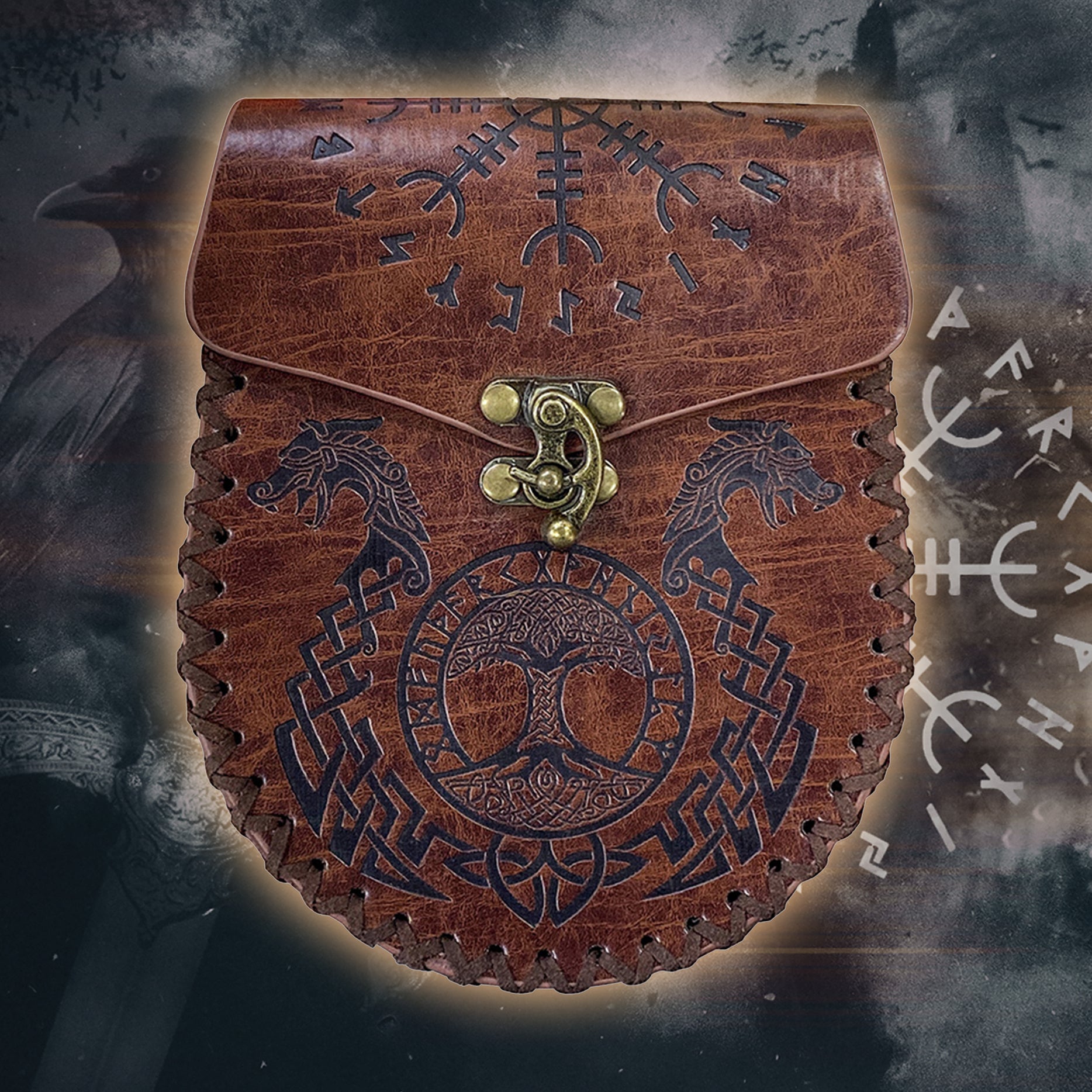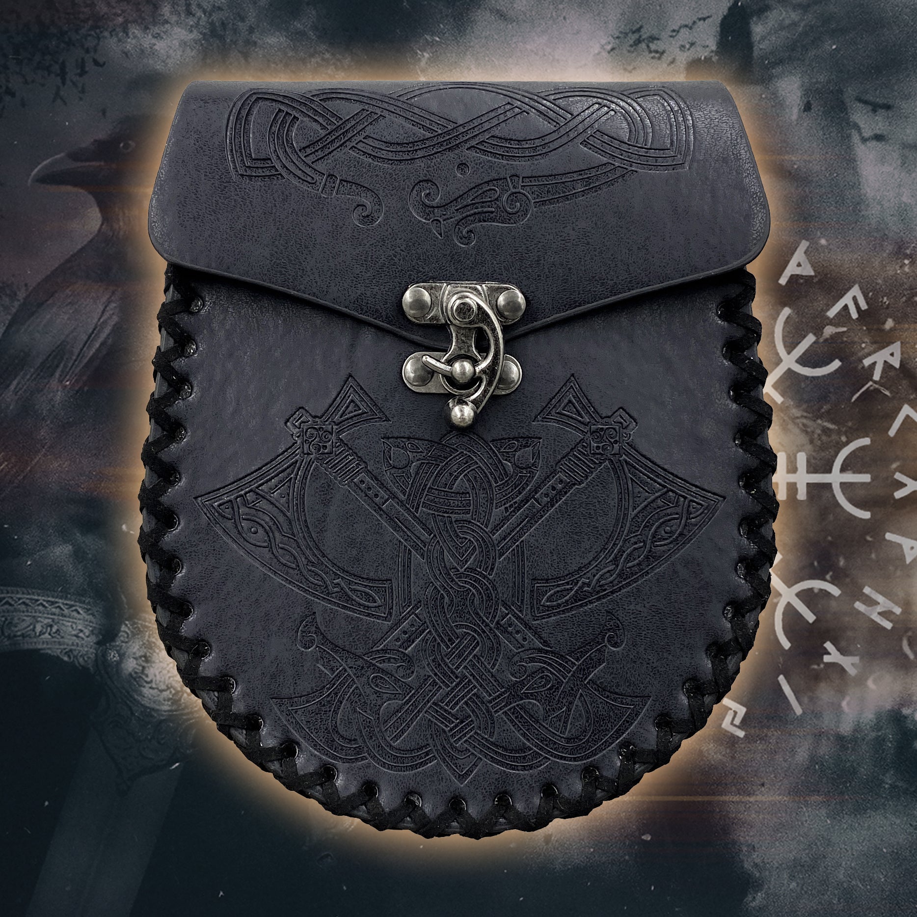 Crafted from the finest faux leather, each pouch is meticulously hand-cut and assembled to ensure durability and quality that stands the test of time. This medieval-inspired accessory is not just a bag, but a portal to the era of Vikings and warriors.