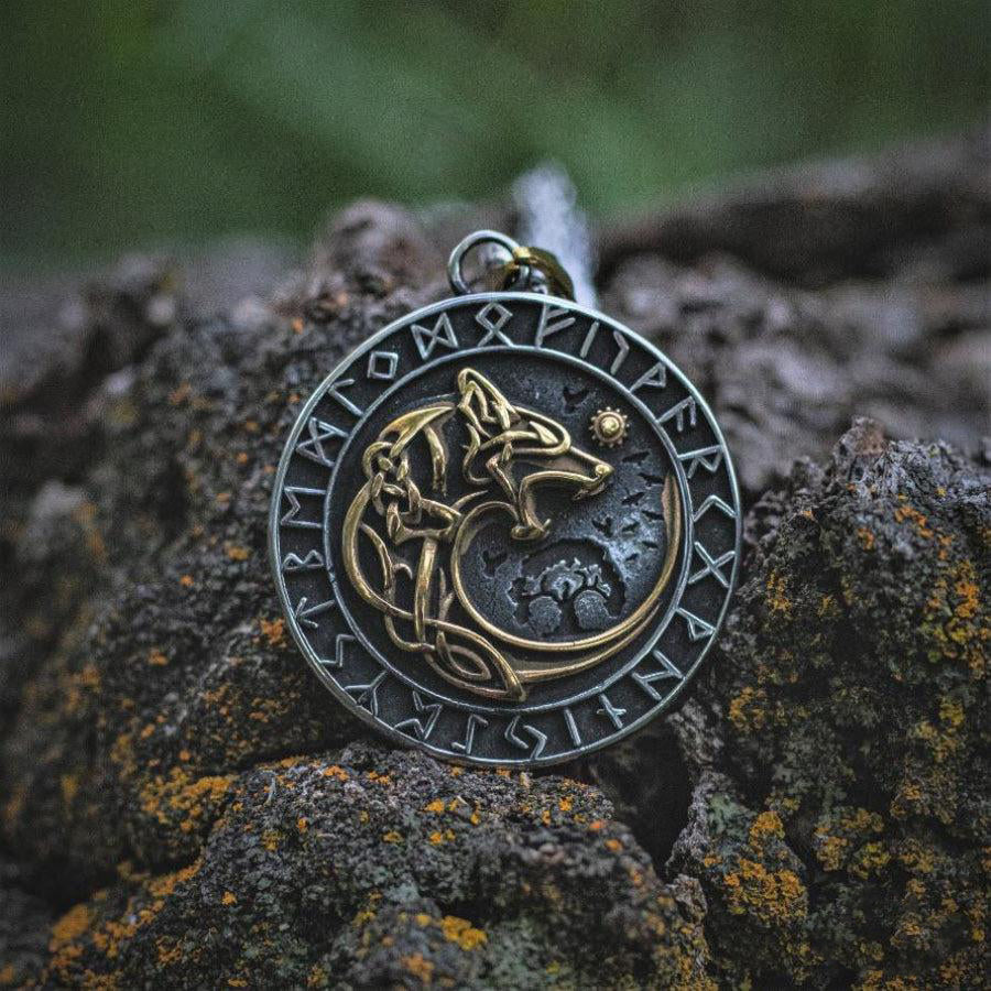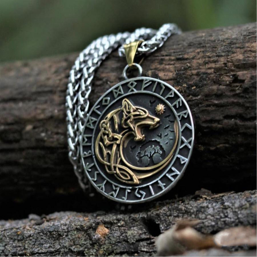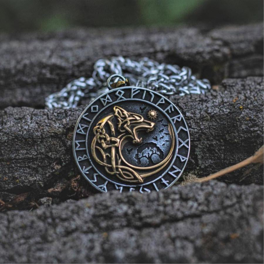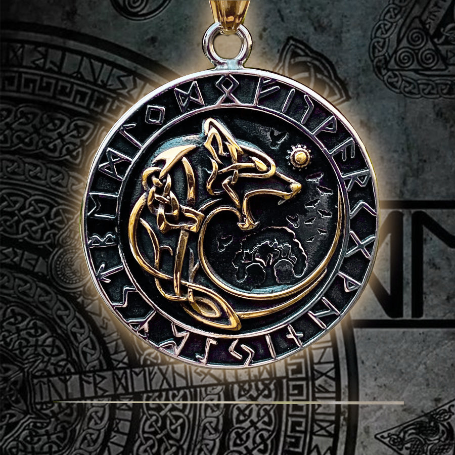 Embrace the untamed strength and wild spirit of the Viking warriors with the Fenrir Pendant. Inspired by Fenrir, the fierce wolf of Norse legend, this Viking necklace is crafted in premium 316L stainless steel with a stunning dual-tone finish. The pendant features Fenrir encased within a circle of ancient Elder Futhark runes, symbolizing protection and power. Wear this exceptional piece of Viking jewelry to channel your inner warrior and embark on a journey of power and self-discovery.