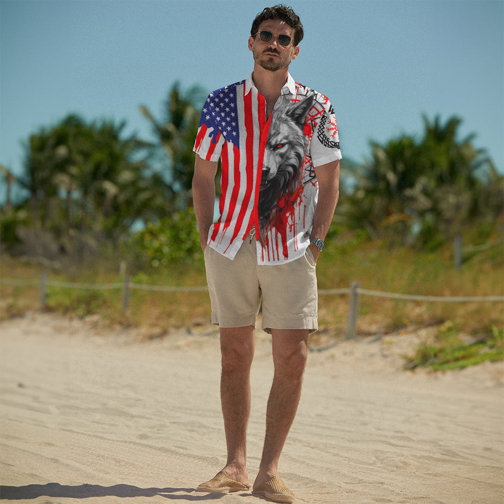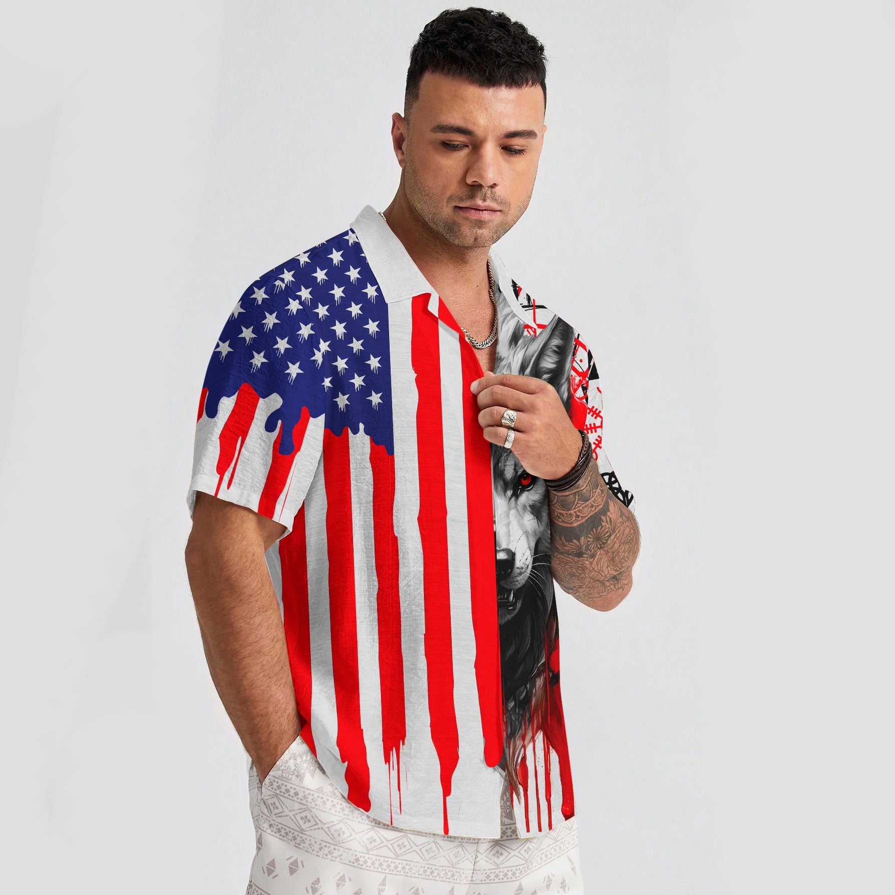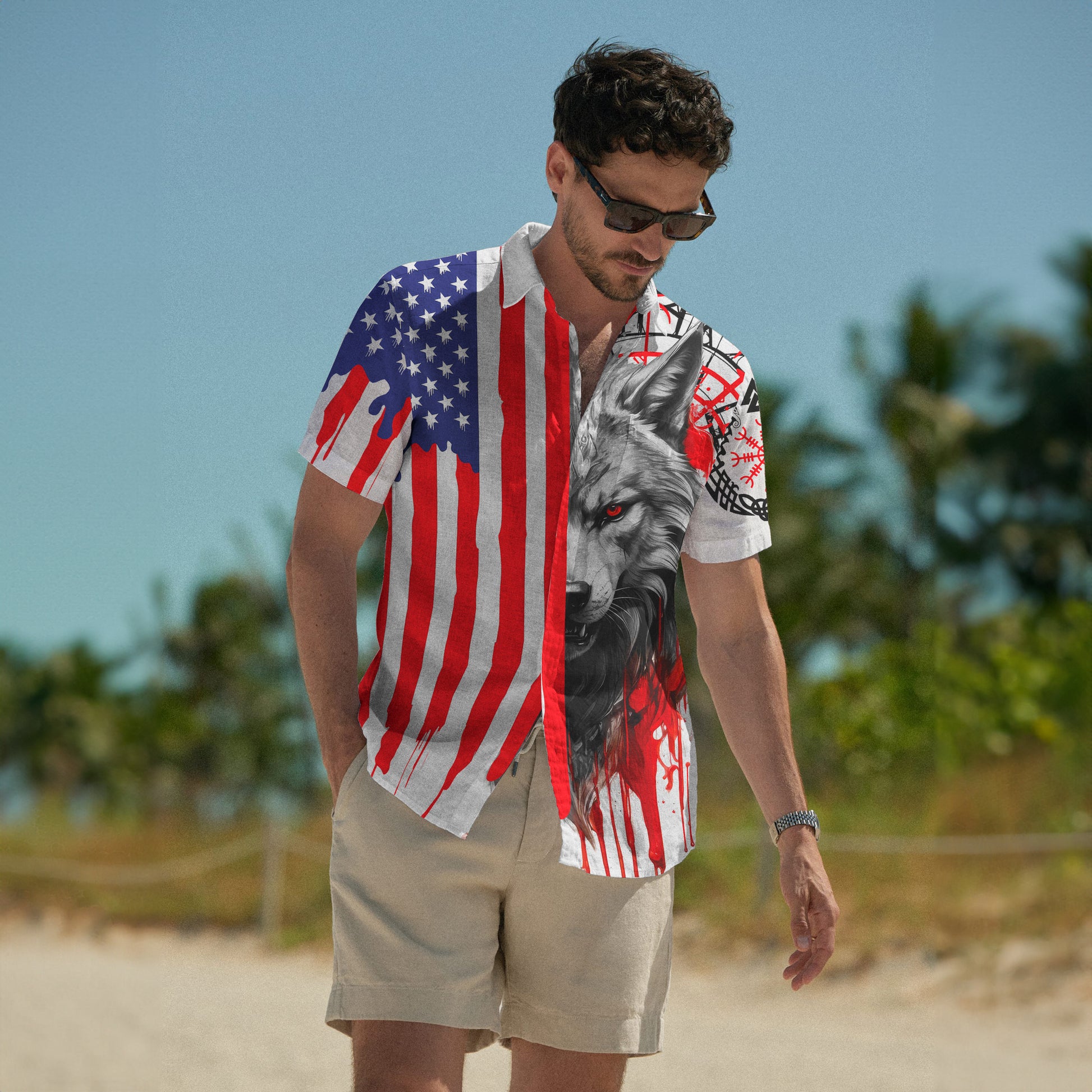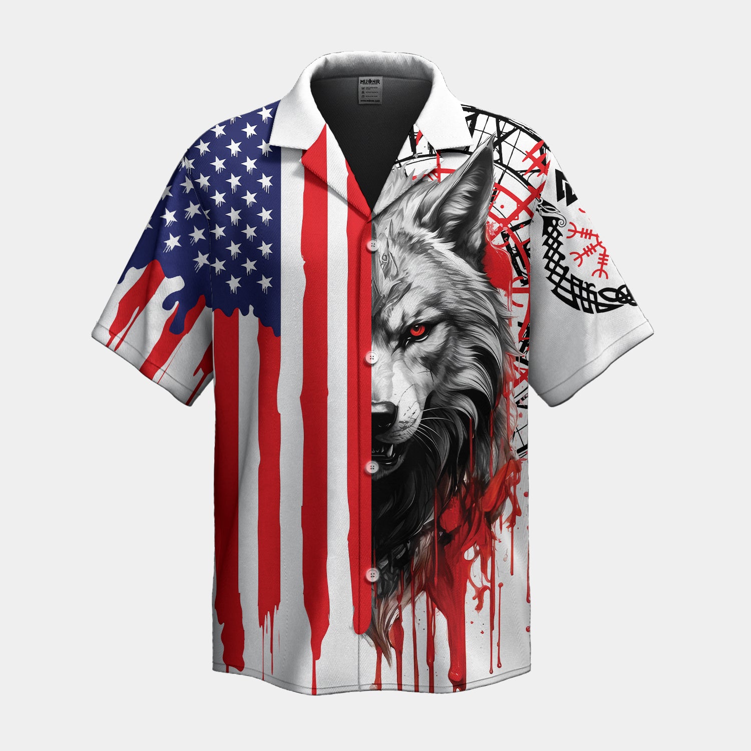 With a design inspired by Norse mythology, Fenrir's Fury Patriotic Valor – Hawaii Shirt embodies the Viking spirit. Own it to confidently showcase your Viking style.