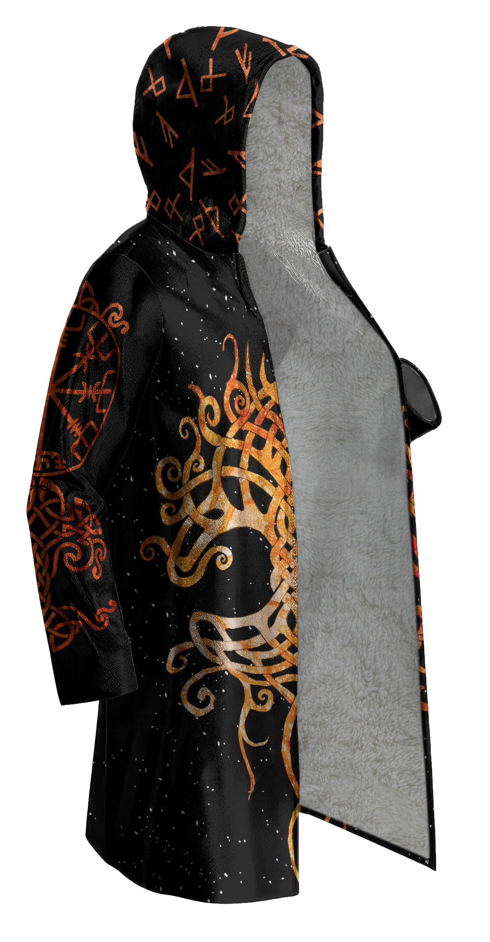 Each cloak is crafted with intricate Norse mythology artwork, featuring legendary symbols such as the Vegvisir, Valknut, and Odin’s ravens. These elements allow you to express your passion for Viking heritage while making a bold fashion statement.