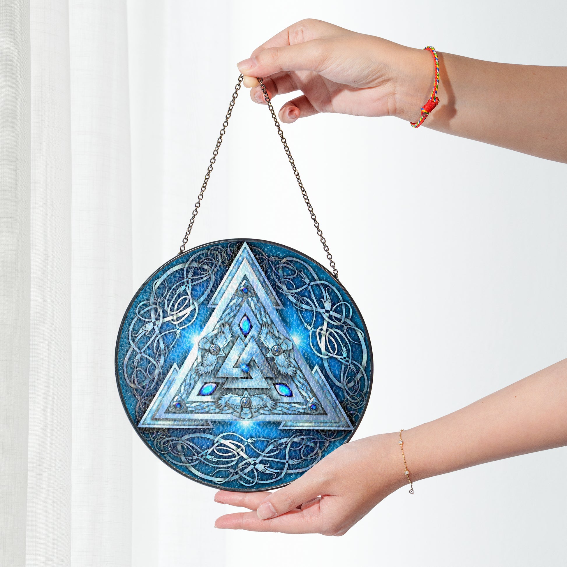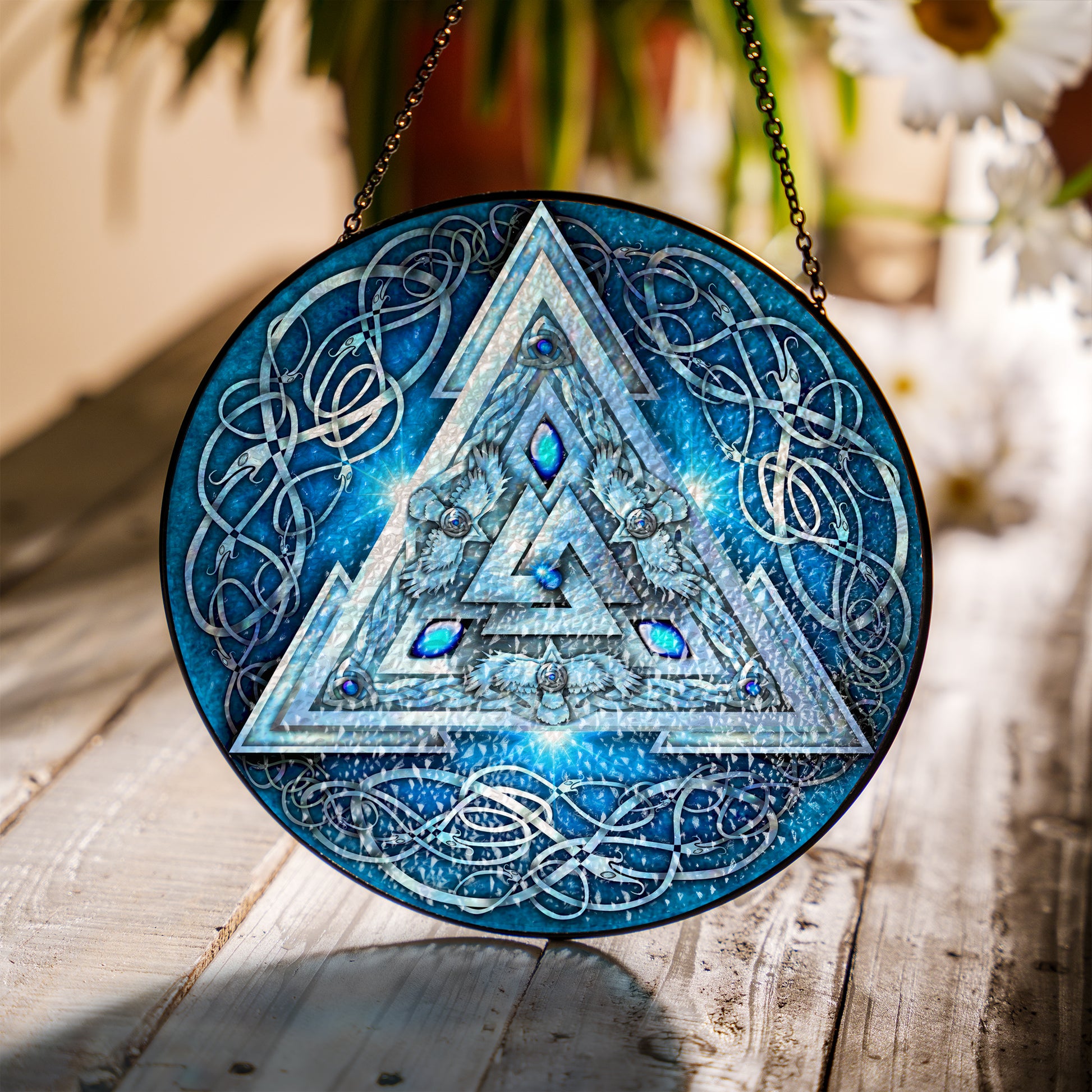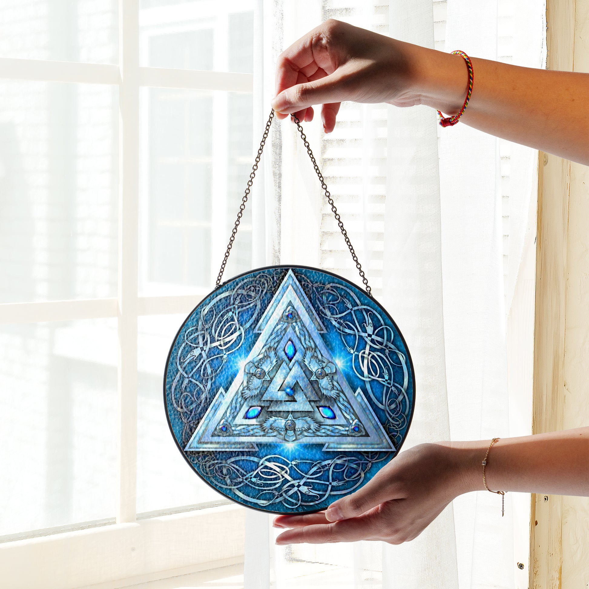 Frosted Valknut - Viking Stained Glass Hanging Ornament