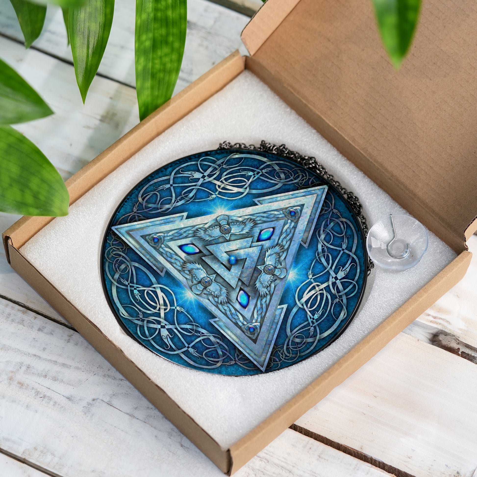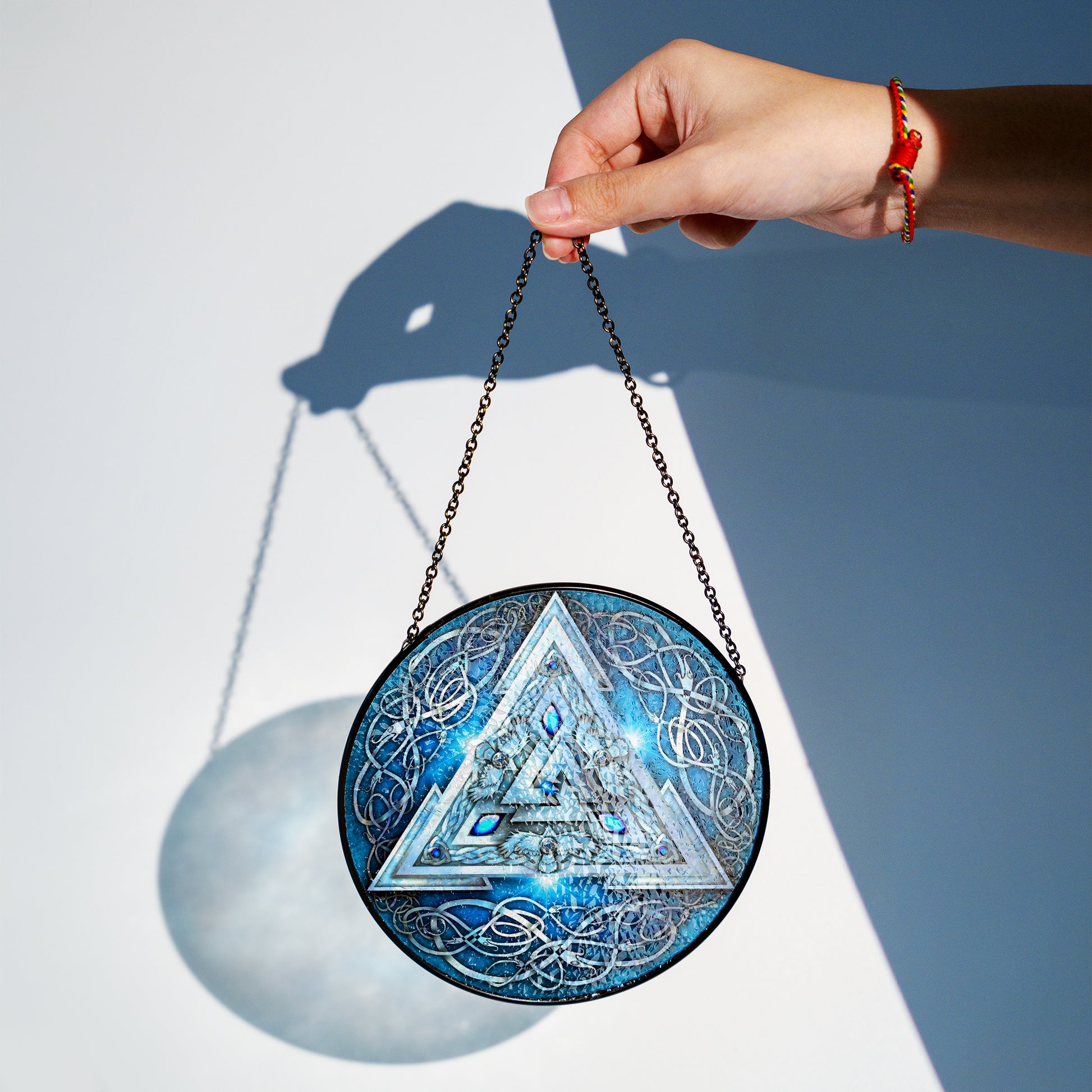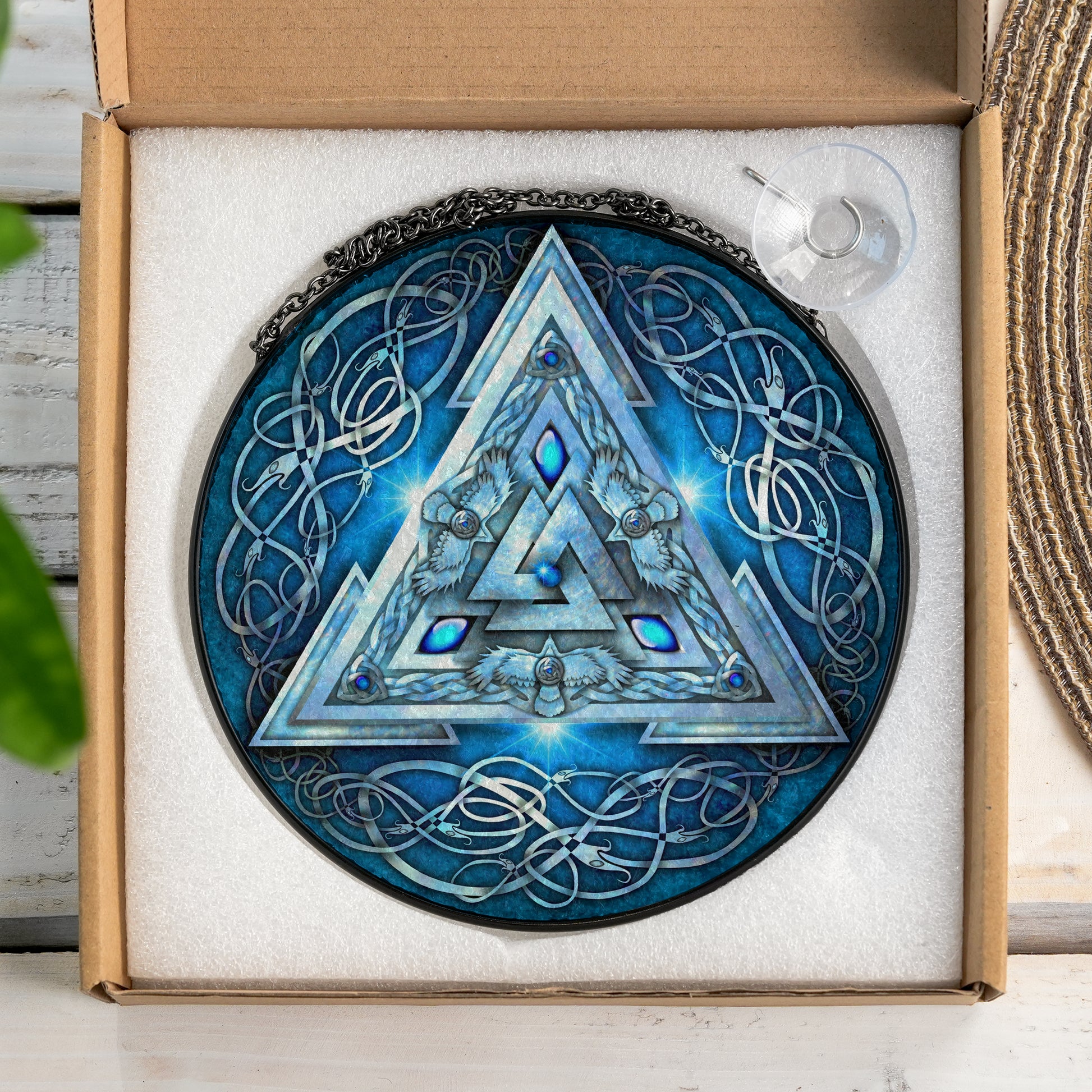 Frosted Valknut - Viking Stained Glass Hanging Ornament