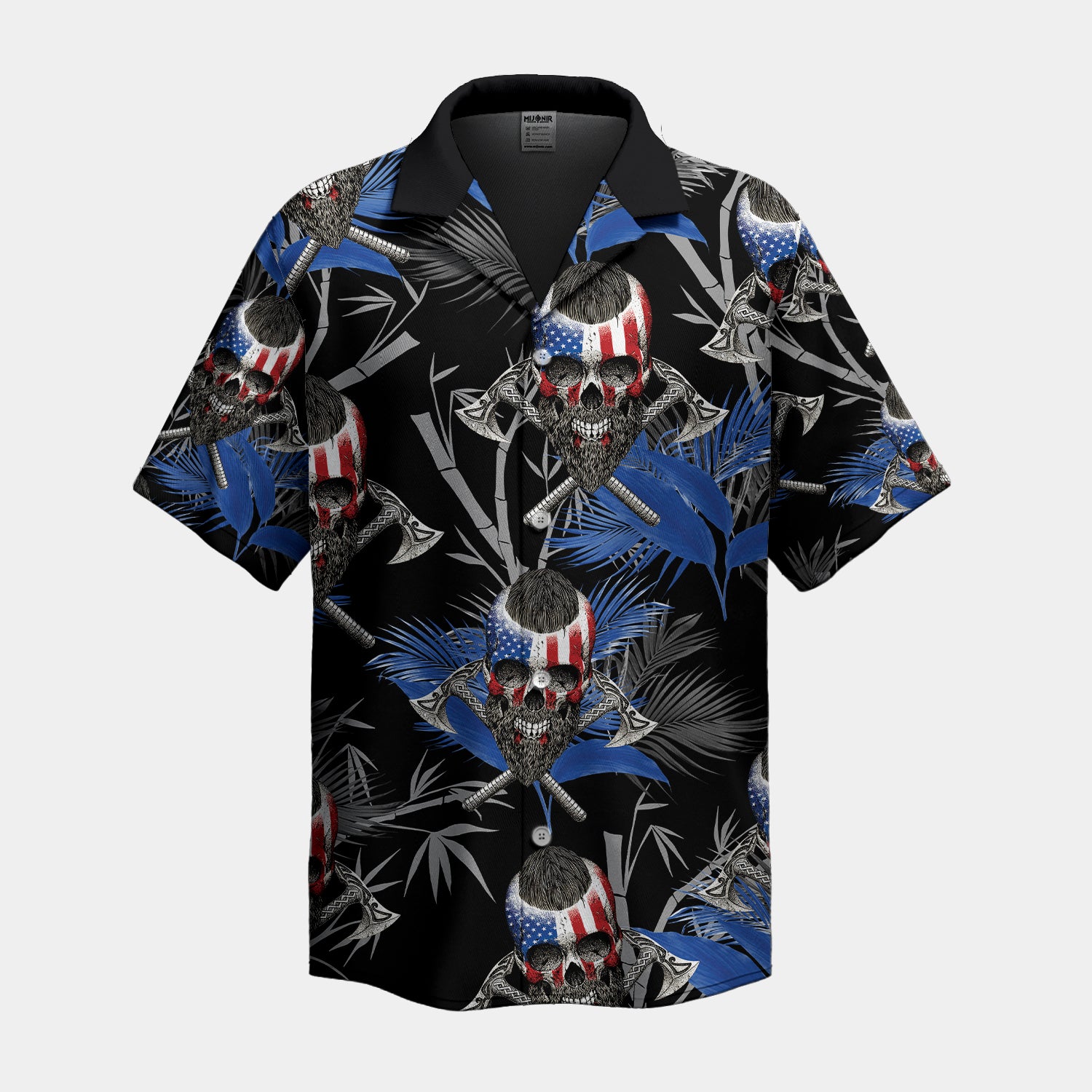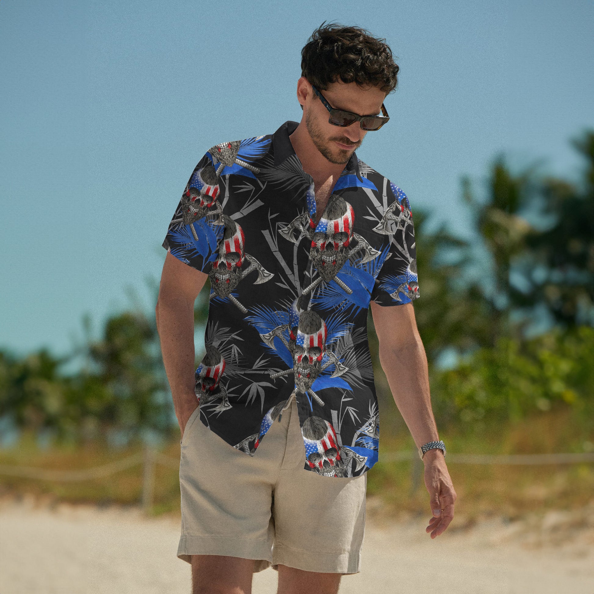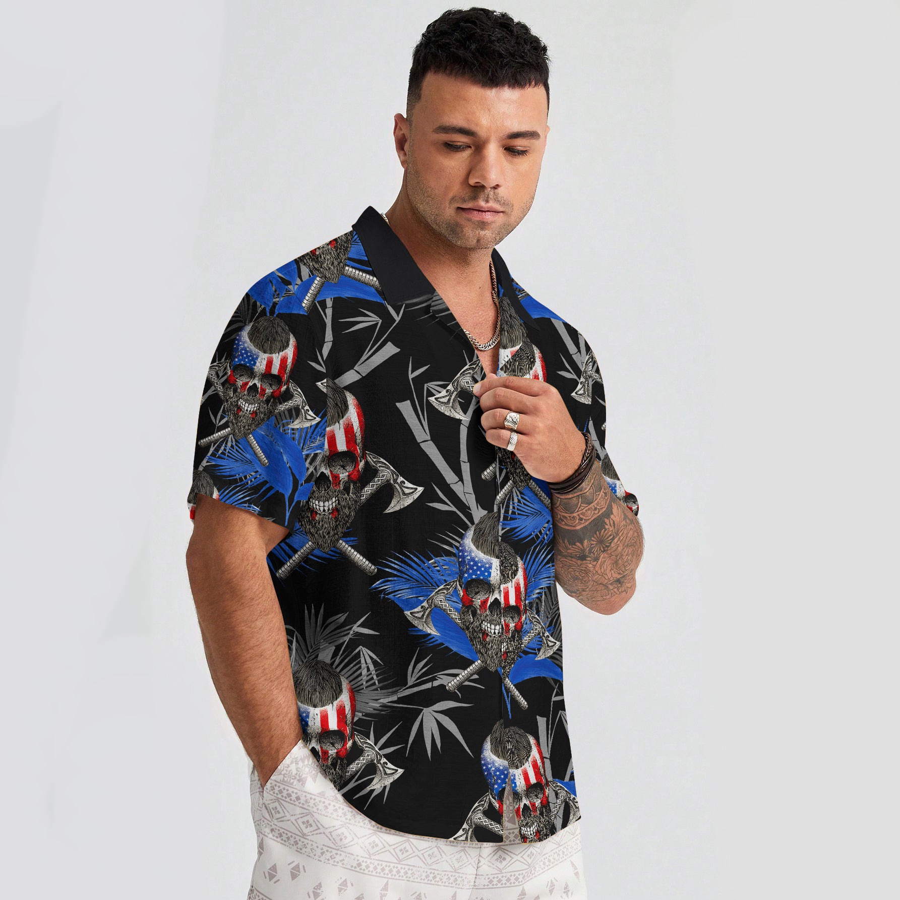 With a design inspired by Norse mythology, Patriotic Skulls – Hawaii Shirt embodies the Viking spirit. Own it to confidently showcase your Viking style.