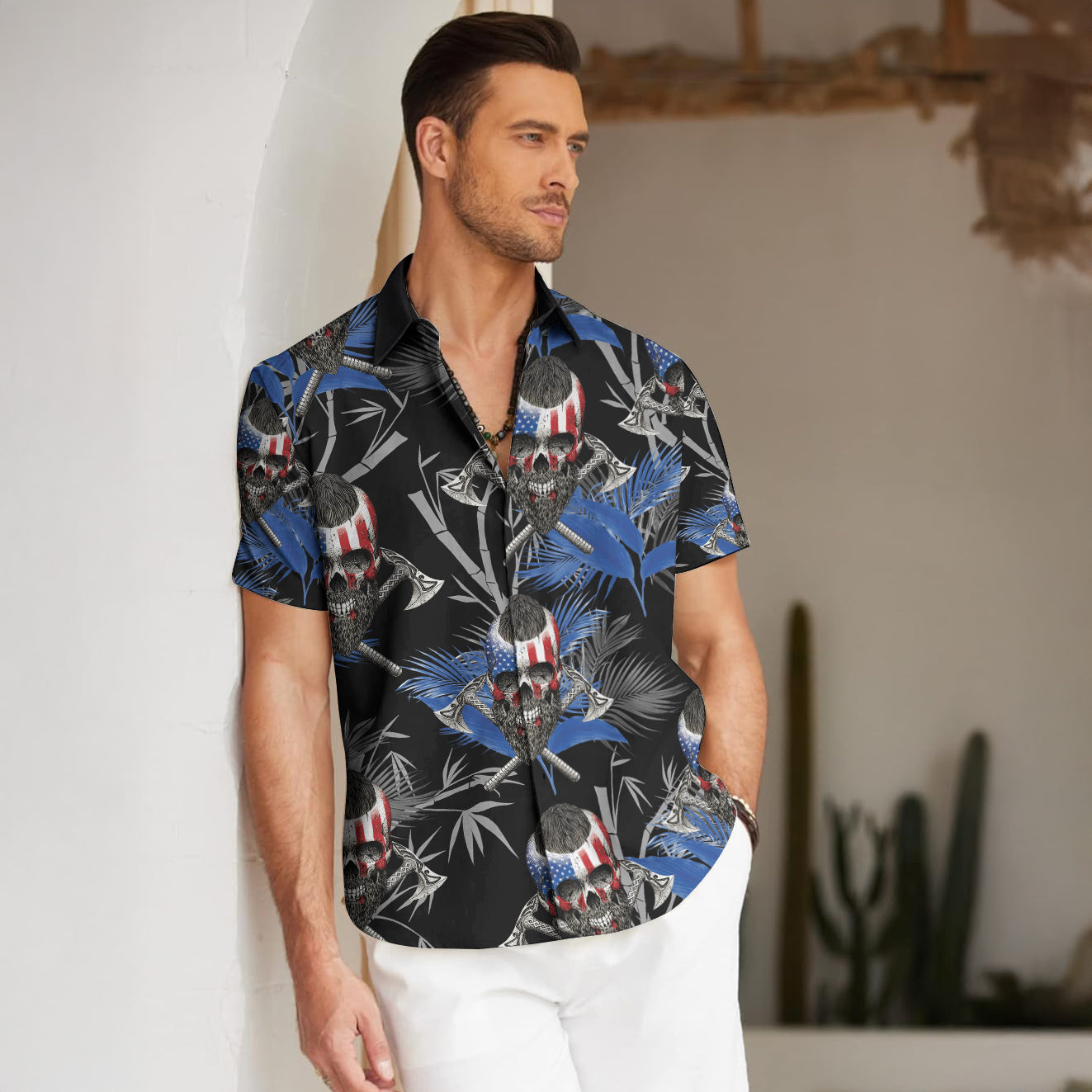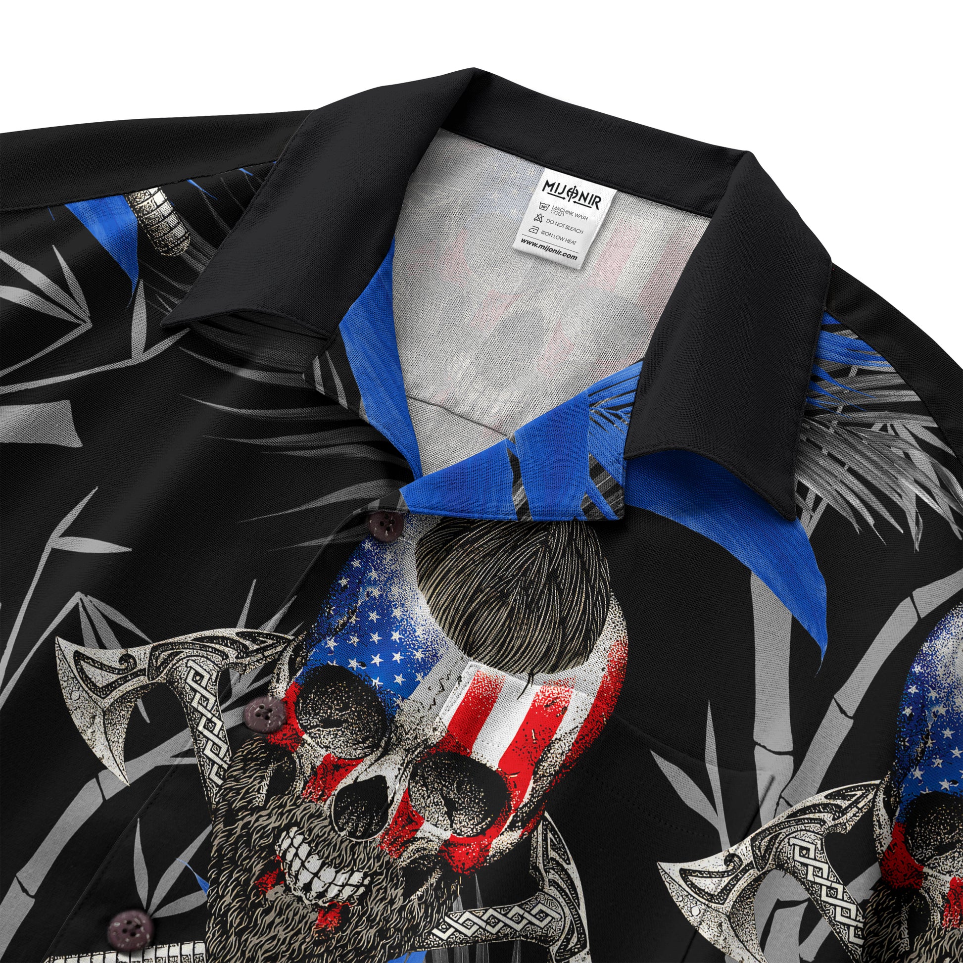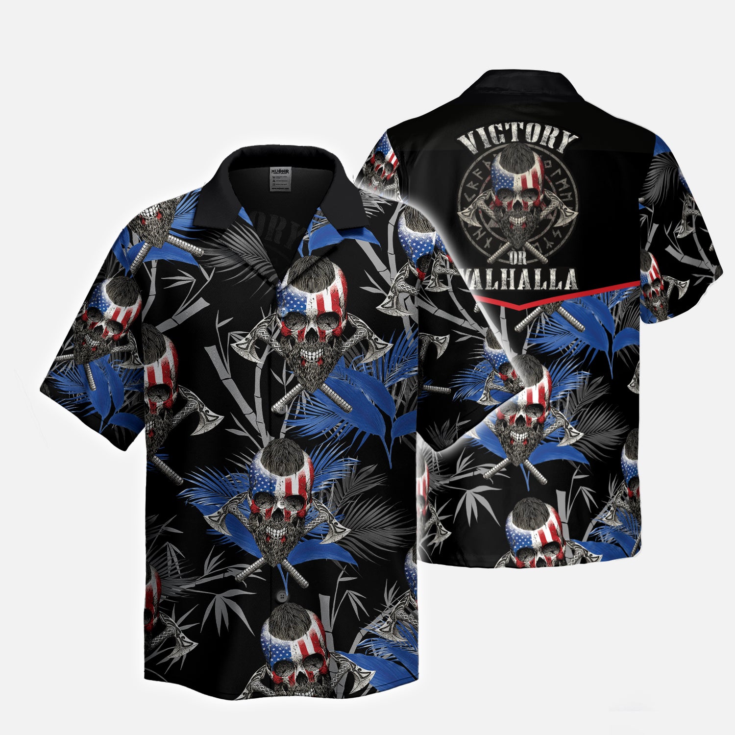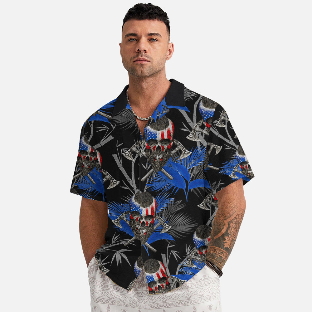 With a design inspired by Norse mythology, Patriotic Skulls – Hawaii Shirt embodies the Viking spirit. Own it to confidently showcase your Viking style.