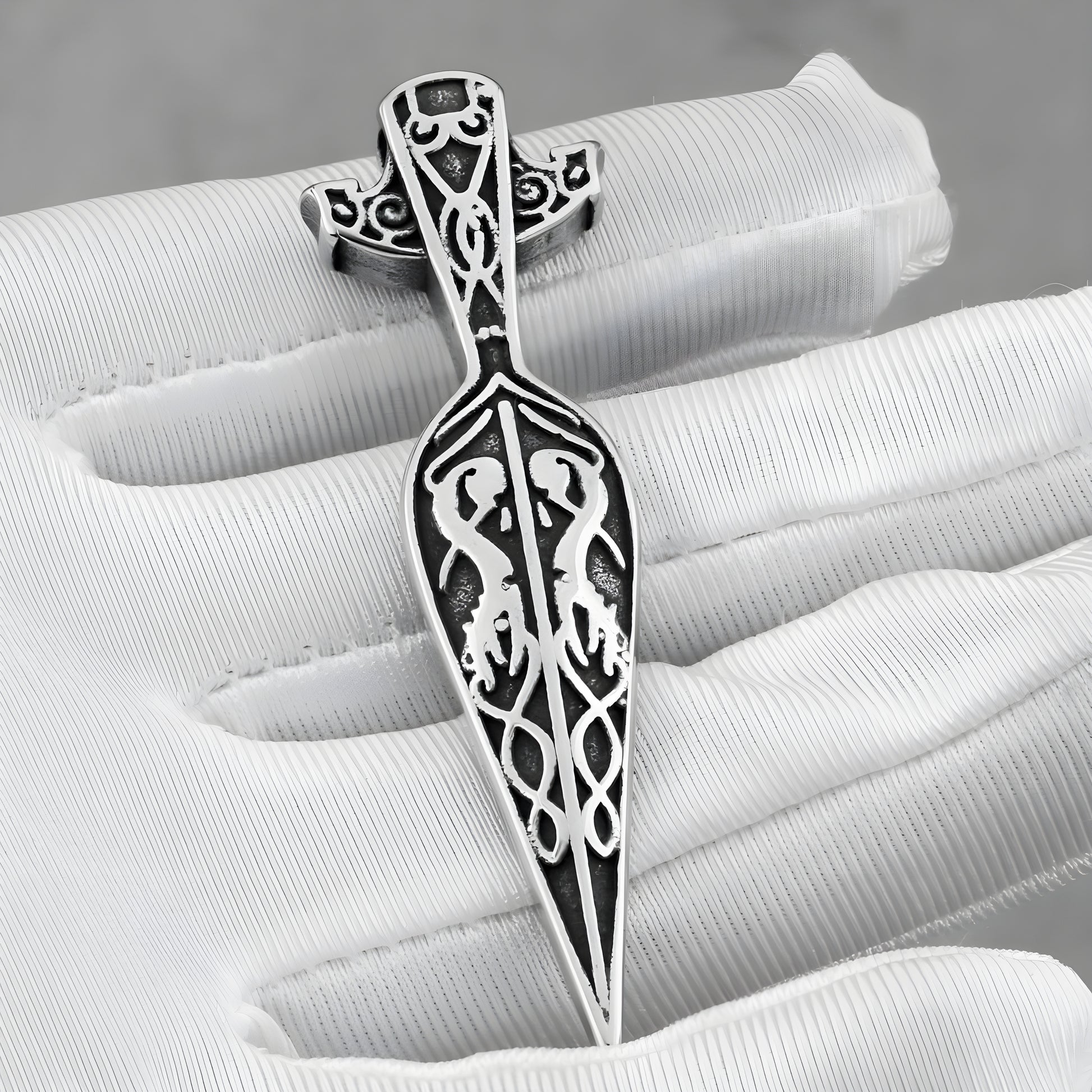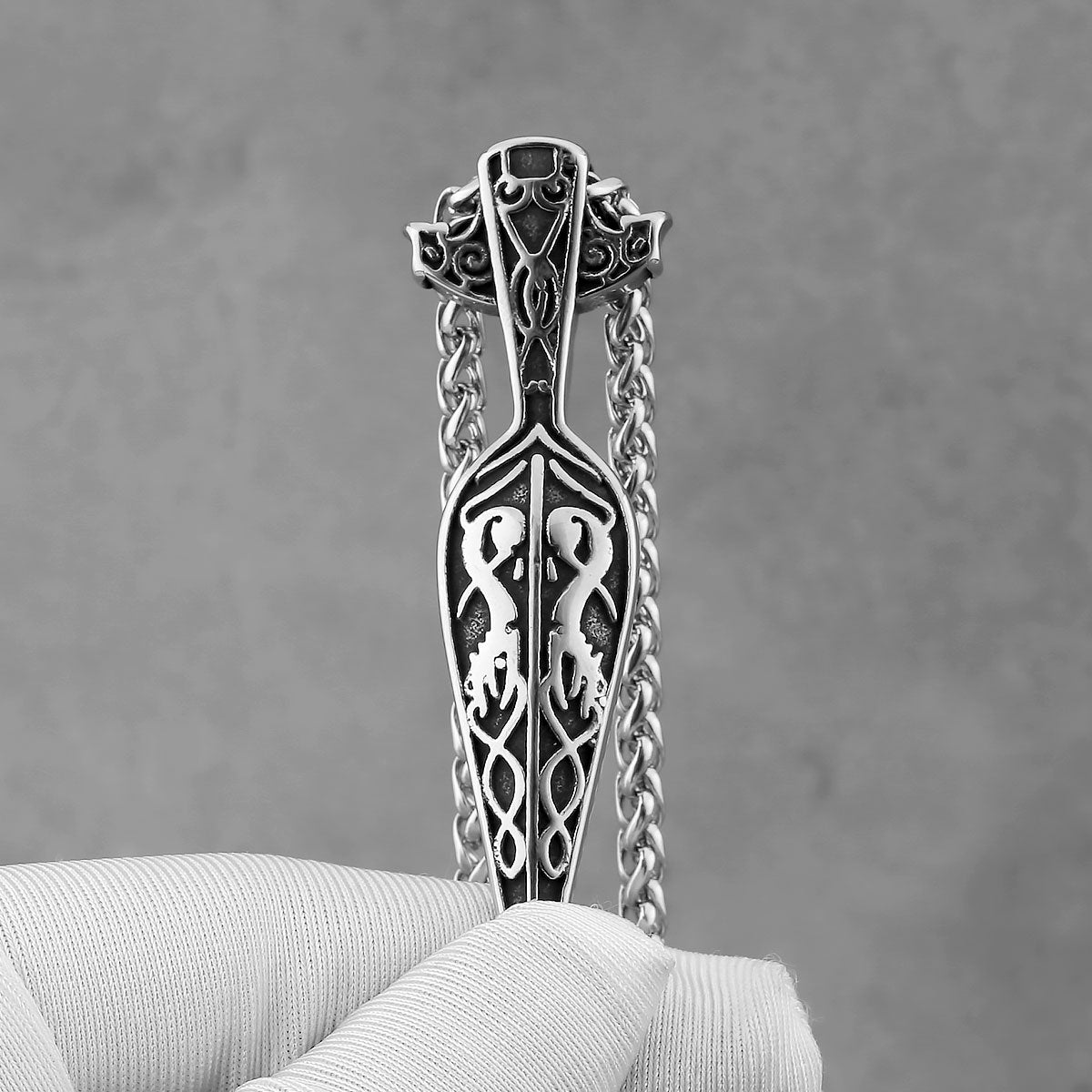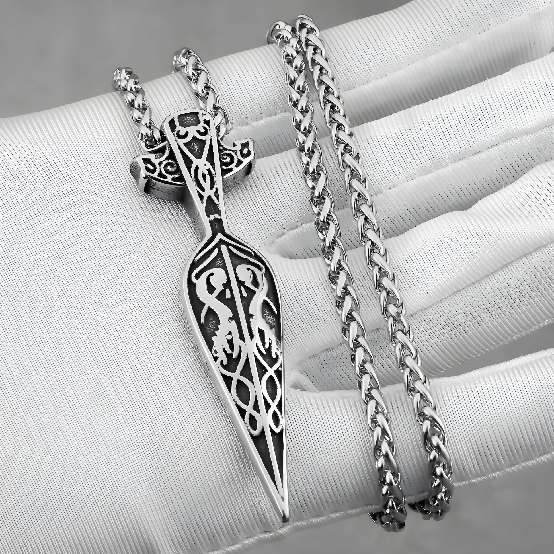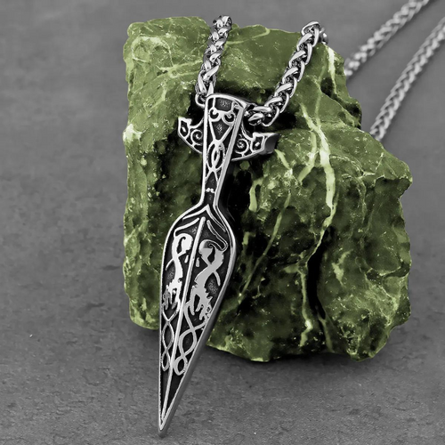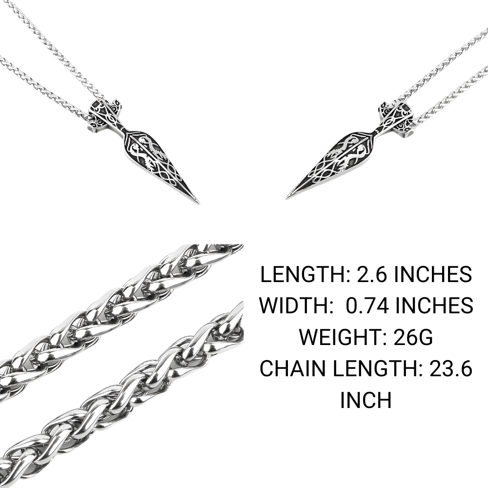 Unleash the power of ancient legends with our Gungnir Viking Necklace – a bold and timeless tribute to Odin's mighty Spear, intricately designed with captivating Celtic knots. Crafted with unwavering attention to detail, this solid stainless steel pendant stands at an impressive 2.75 x 0.79 inches, exuding strength and resilience reminiscent of Viking heritage.