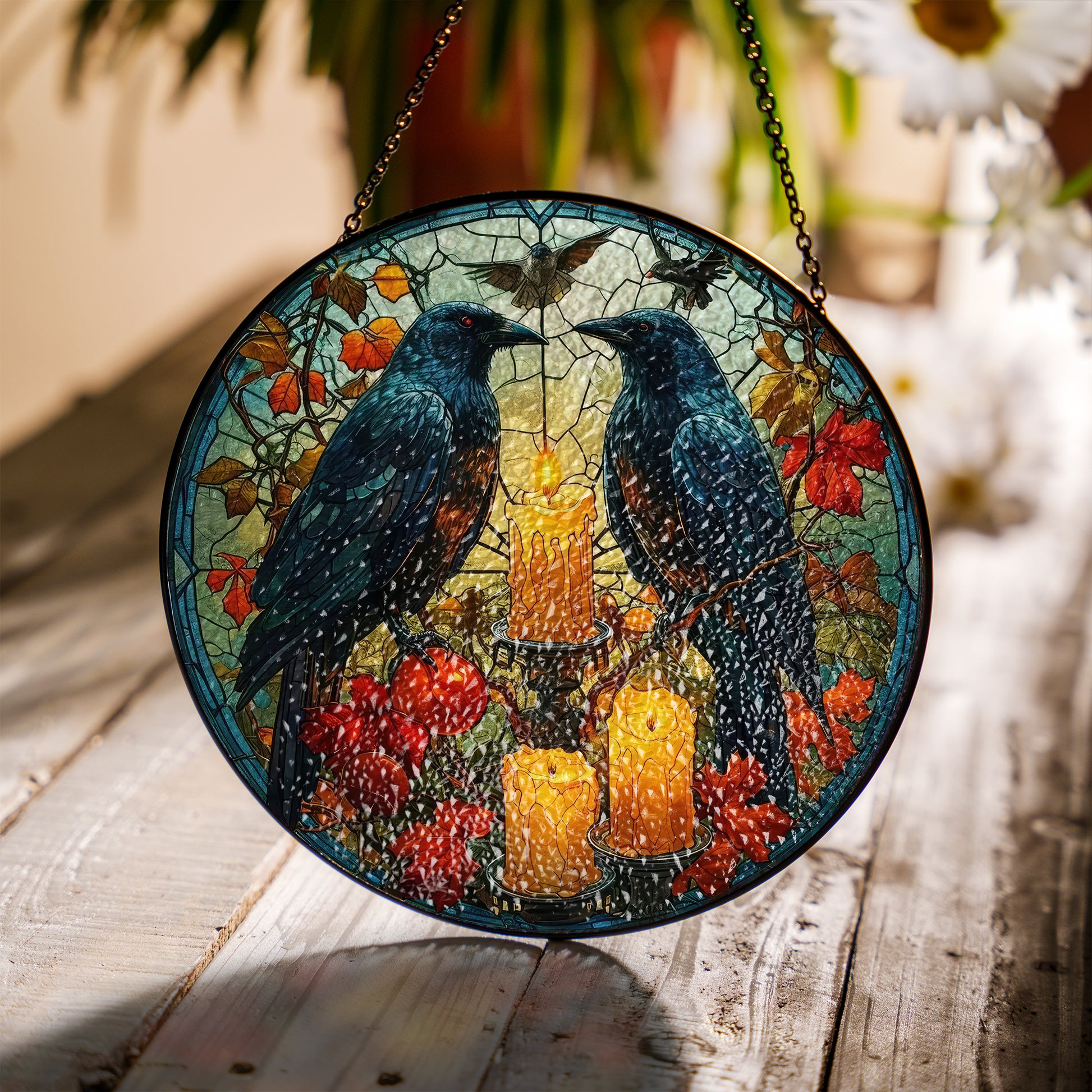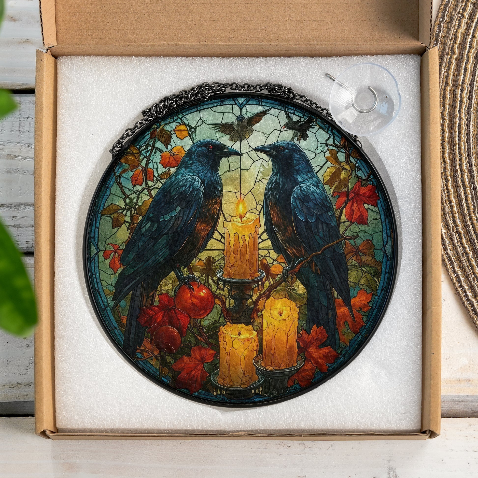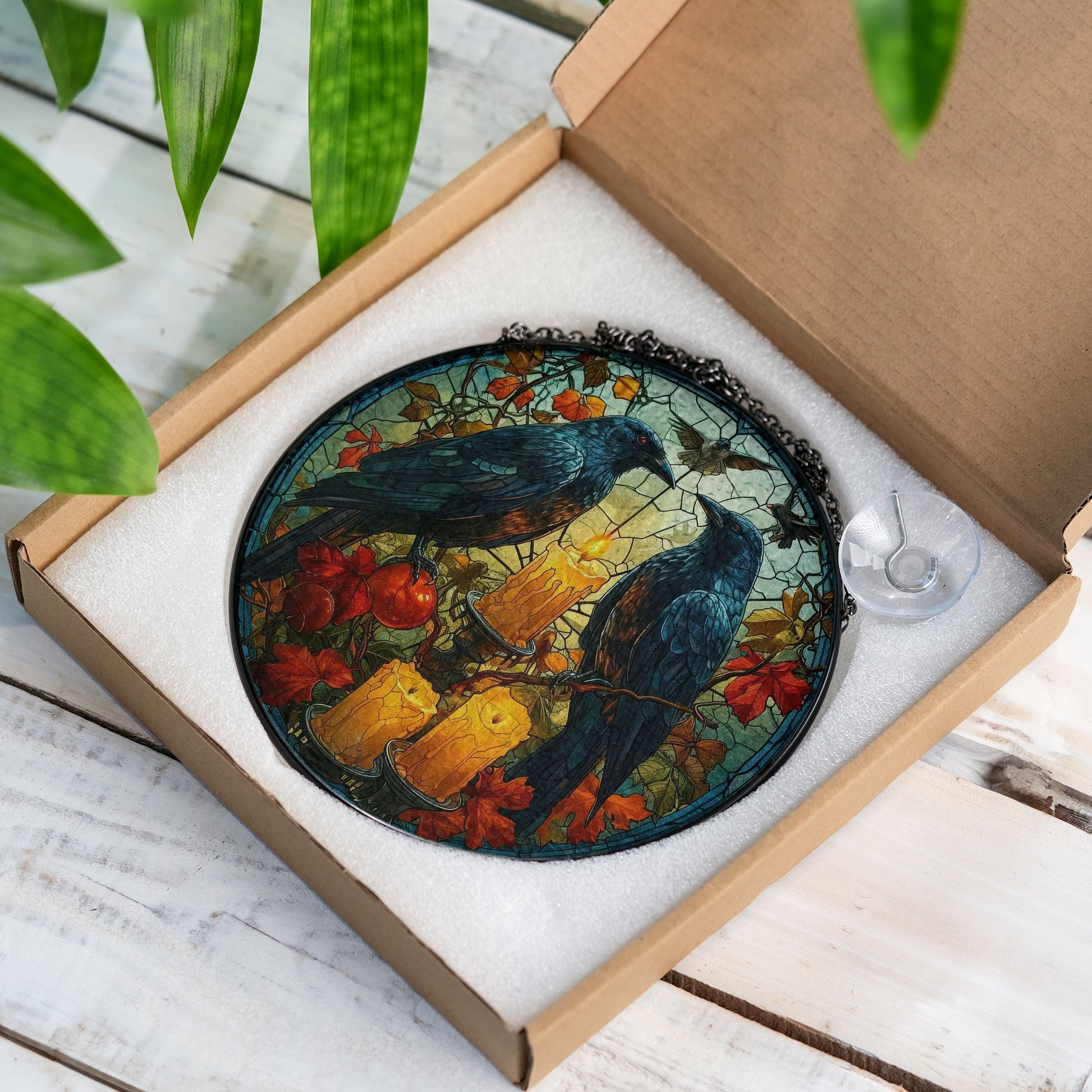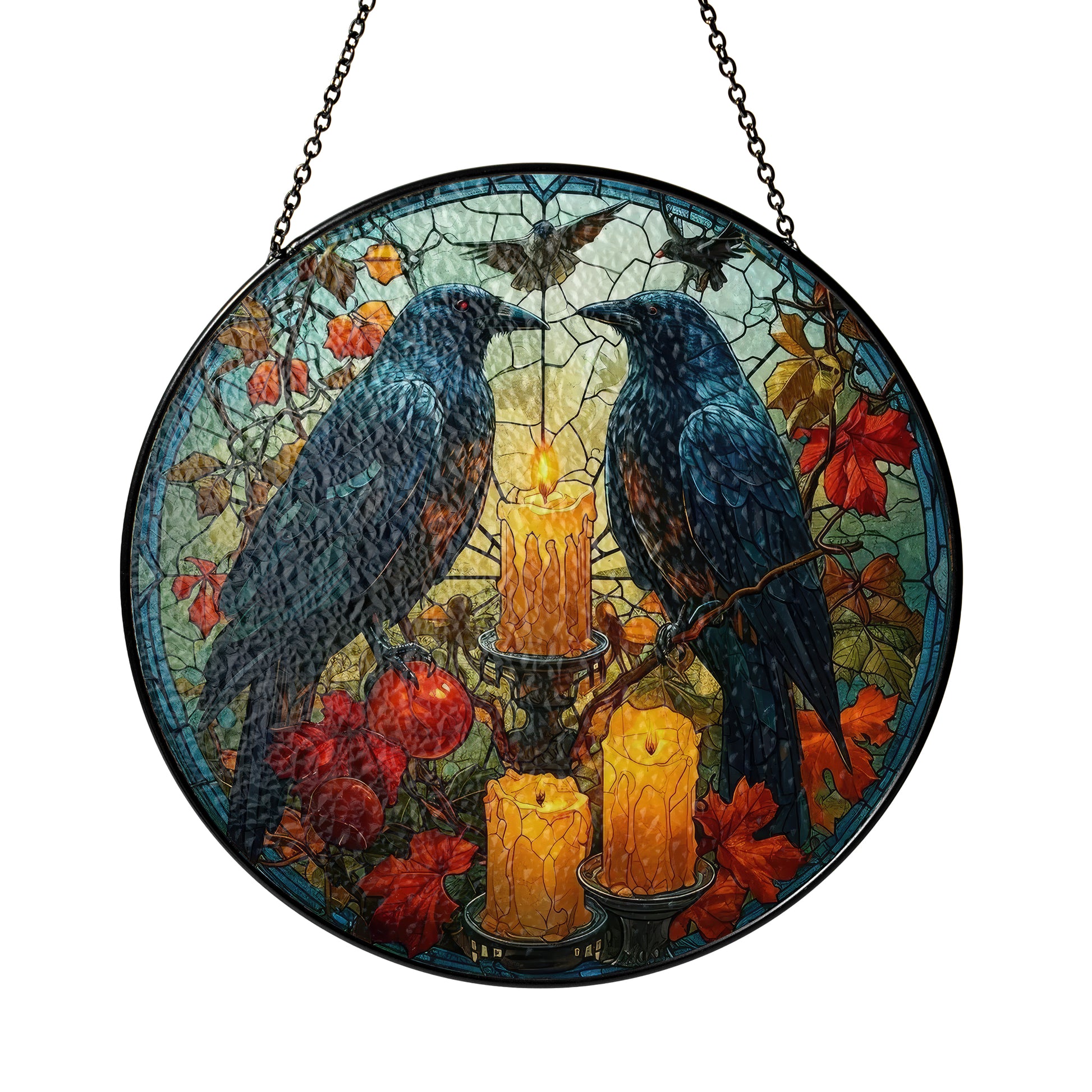 Huginn and Muninn Raven - Viking Stained Glass Hanging Ornament