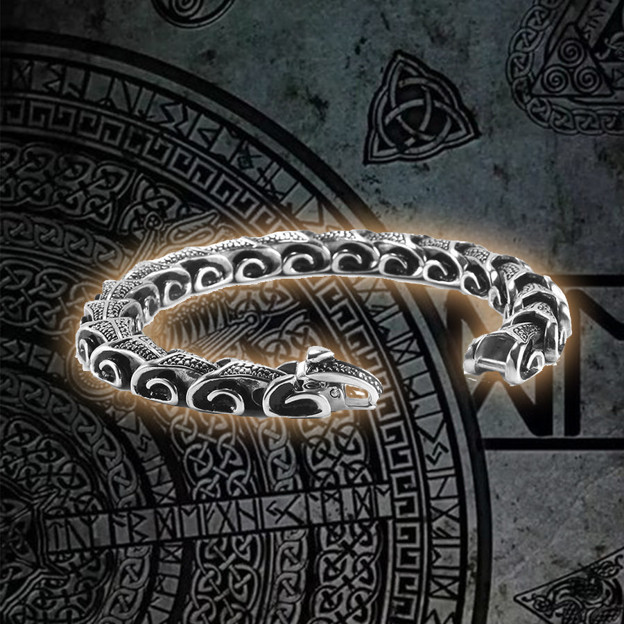 In Norse mythology, Jormungandr, the World Serpent, coils around the earth as an eternal symbol of strength and resilience. Our Jormungandr bracelet, a unique piece of Viking jewelry crafted from durable stainless steel, captures the legendary creature's might. Available in three sizes for a perfect fit, this bold Viking bracelet makes a striking statement, reflecting your own unyielding spirit.