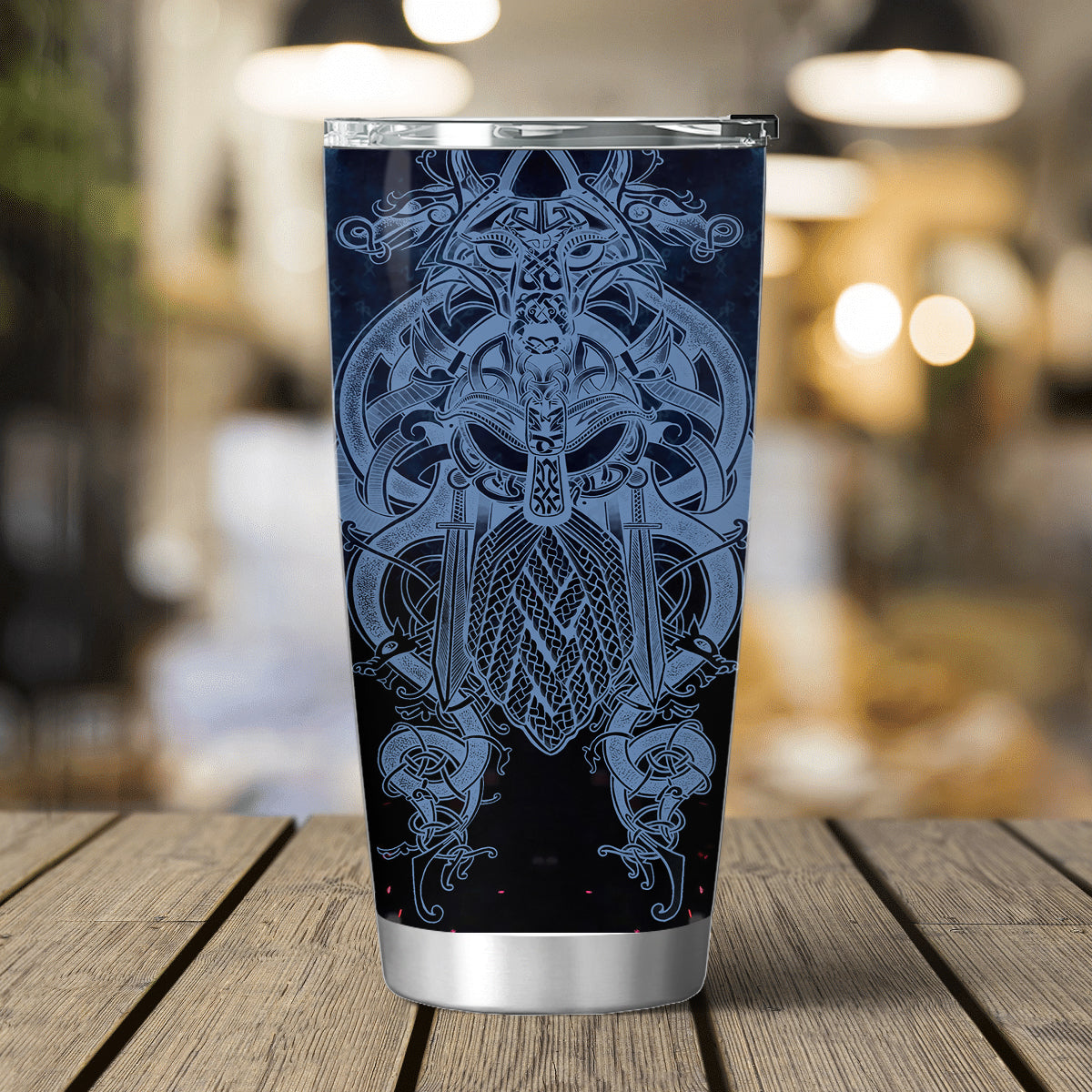 Crafted from high-quality stainless steel, this tumbler is perfect for keeping your drinks hot or cold for hours. The double-wall insulation ensures optimal temperature retention, while the secure lid prevents spills on the go. Whether you're enjoying a morning coffee or an evening mead, this tumbler is a perfect companion for any modern-day warrior.