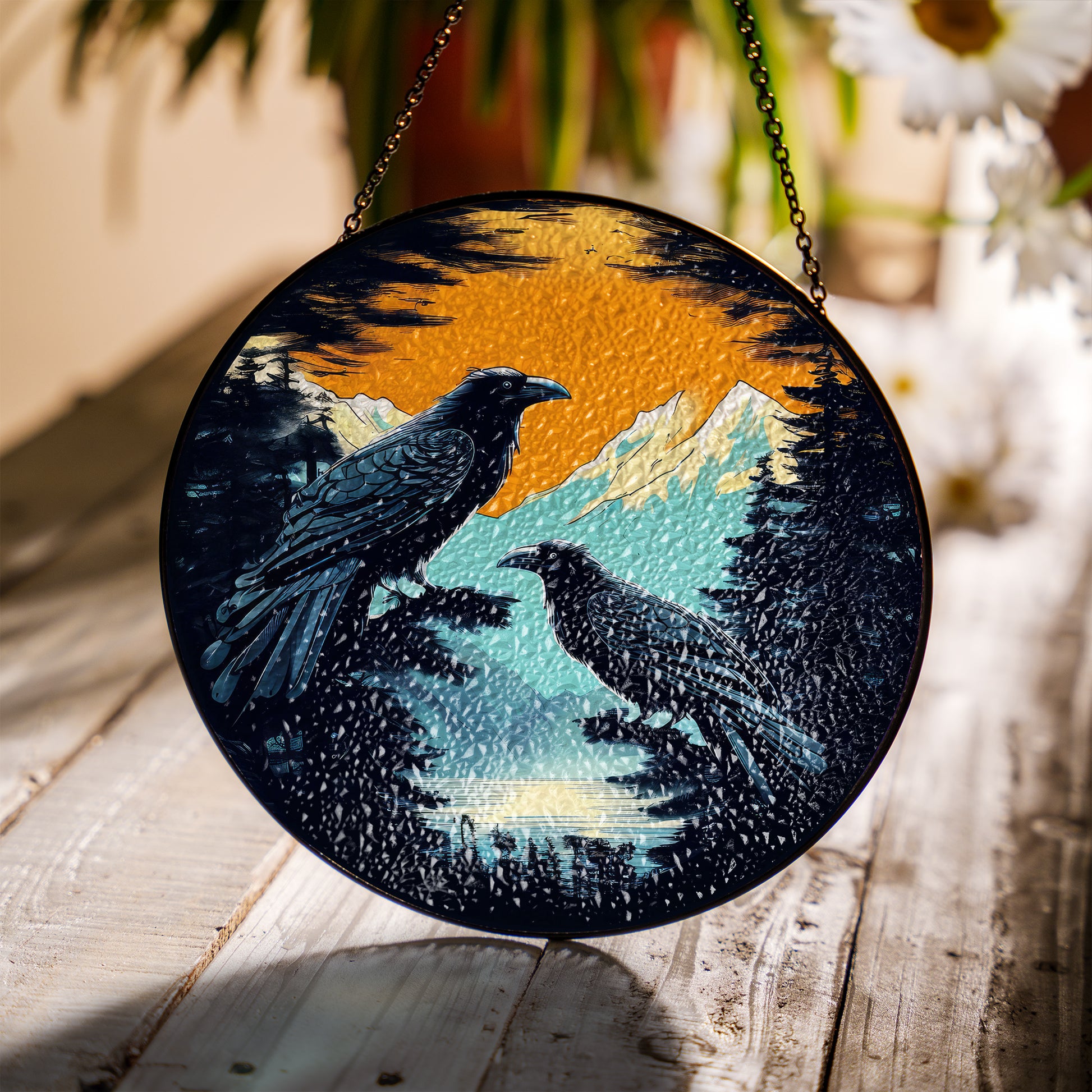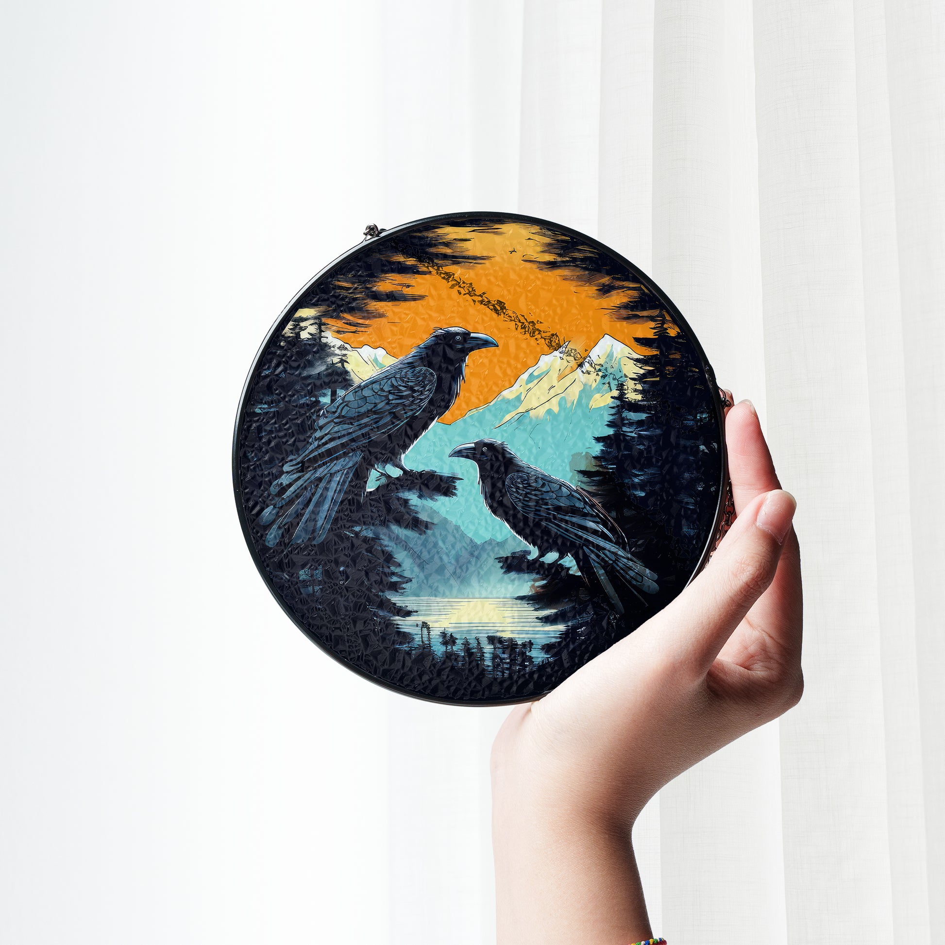 Mountain Ravens - Viking Stained Glass Hanging Ornament