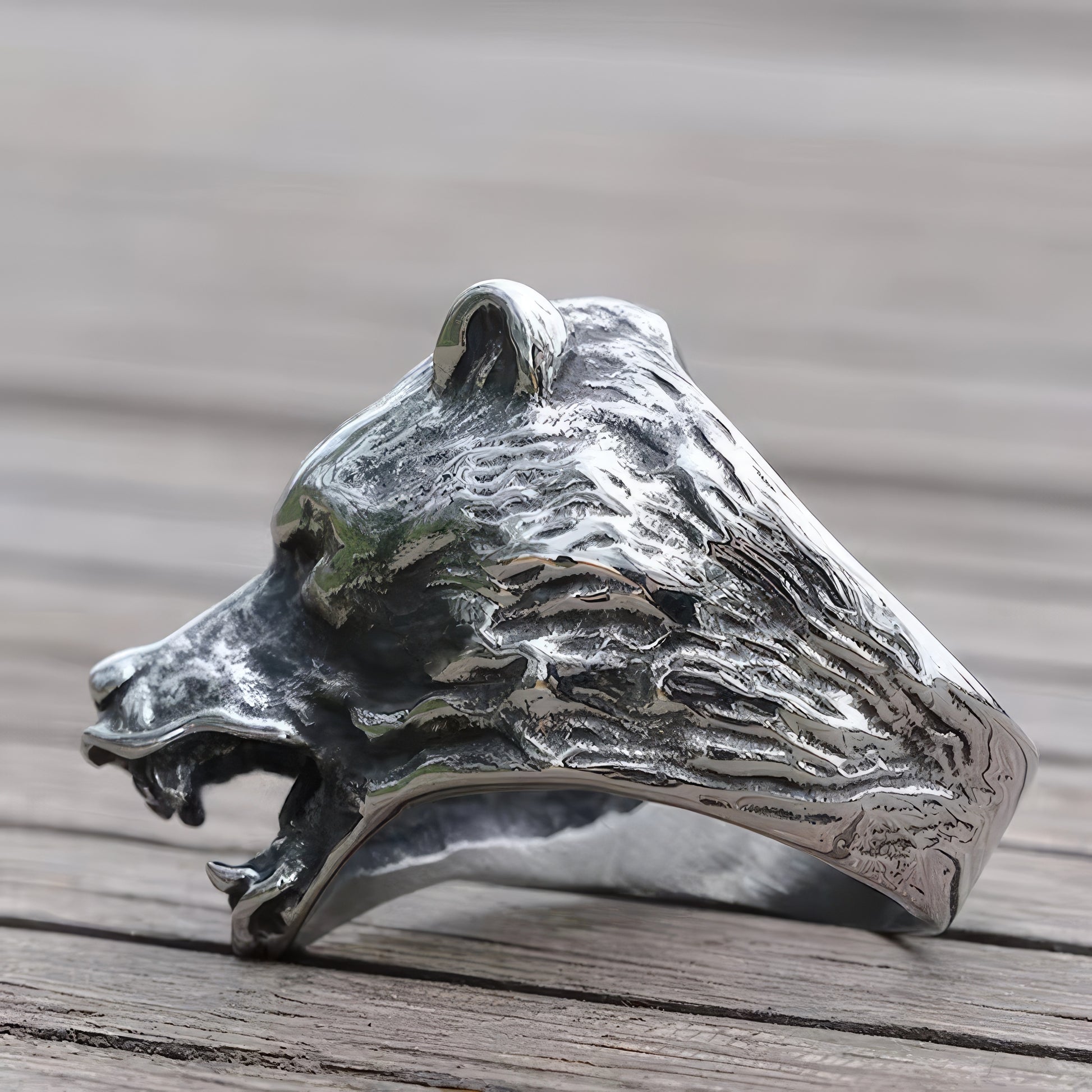 Ideal for men who love unique and powerful accessories, the Cool Viking Bear Head Ring serves as a statement piece, whether you're a biker, a punk enthusiast, or simply someone who enjoys standout jewelry. This ring also functions as a Nordic amulet, believed to bring protection and power to its wearer.