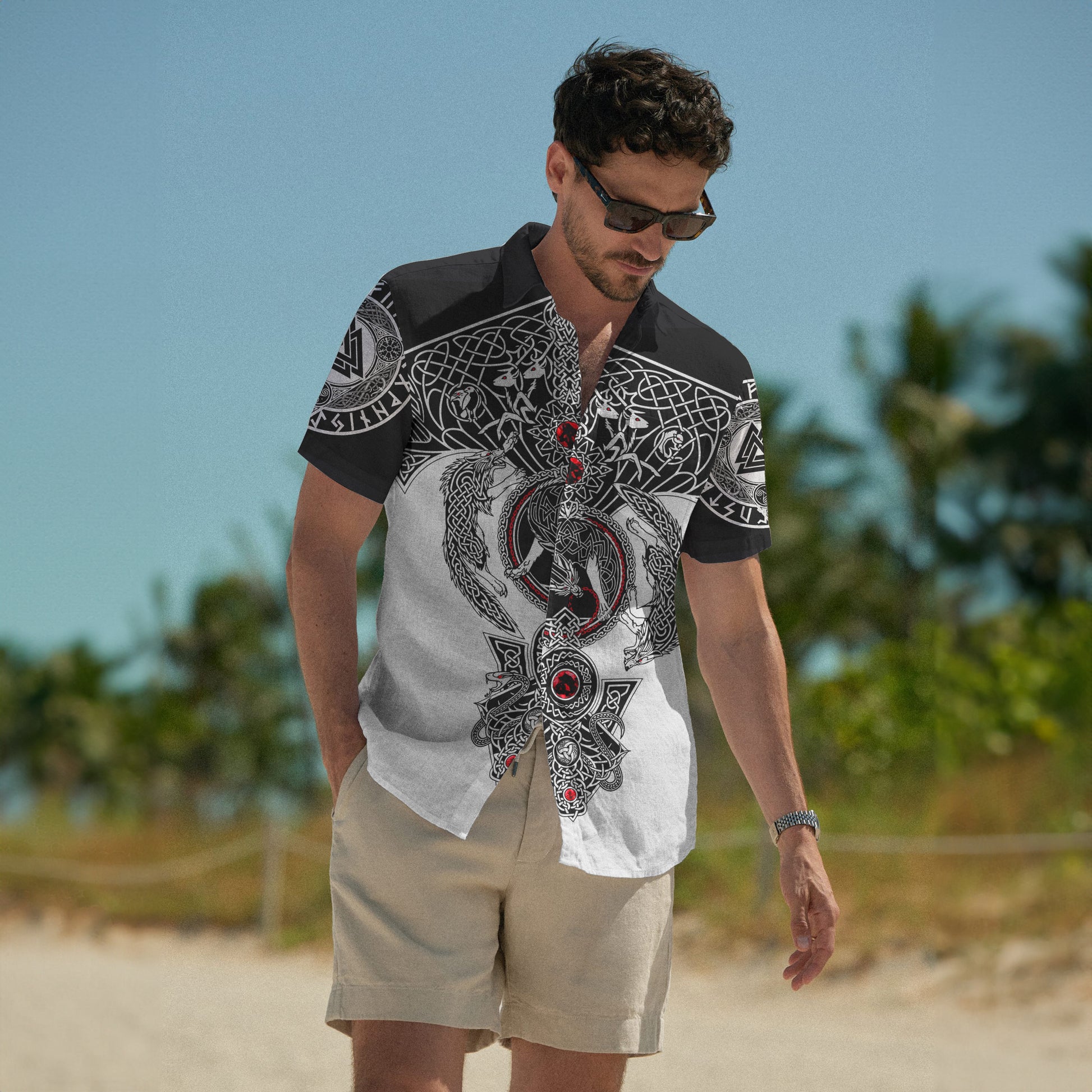 With a design inspired by Norse mythology, Nordic Wolves Compassn – Hawaii Shirt embodies the Viking spirit. Own it to confidently showcase your Viking style.
