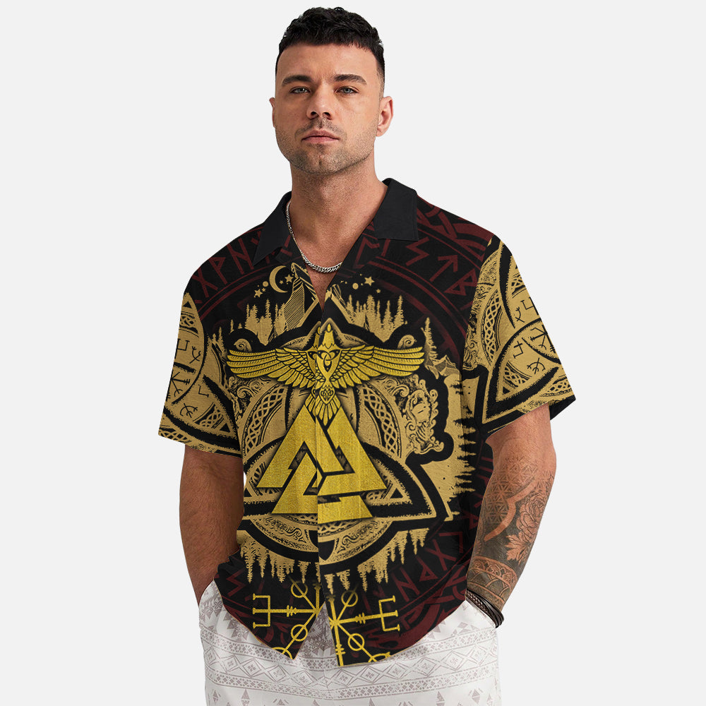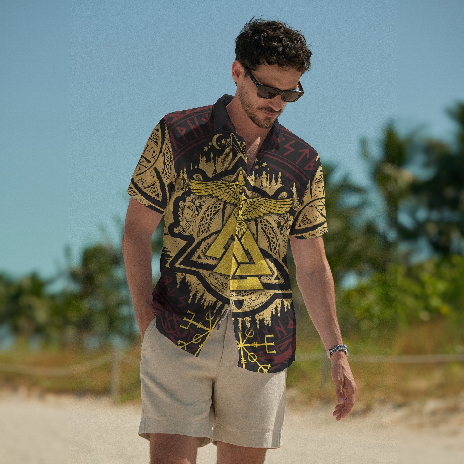 With a design inspired by Norse mythology, Norse Mythic Emblem Hawaiian Shirt embodies the Viking spirit. Own it to confidently showcase your Viking style.