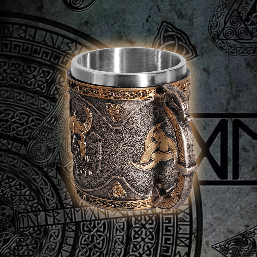 Immerse yourself in the rich history and legends of Norse mythology with our Norse Mythology Beer Stein. This exceptional mug features intricate designs of Odin and Thor, capturing the essence of Nordic Viking traditions. Made with a durable stainless steel liner and a beautifully crafted exterior, this stein is perfect for enjoying your favorite beers, ales, or even coffee.