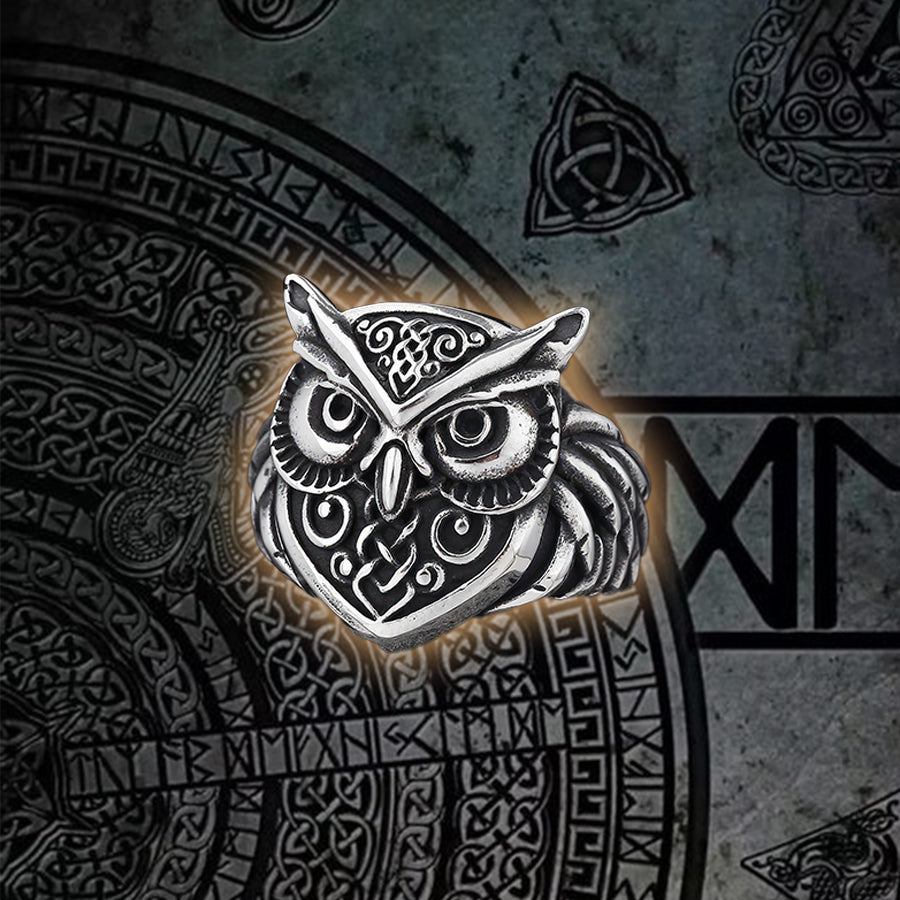 "Unleash the Mystery of the Norse Runes with this Unique Owl Ring!