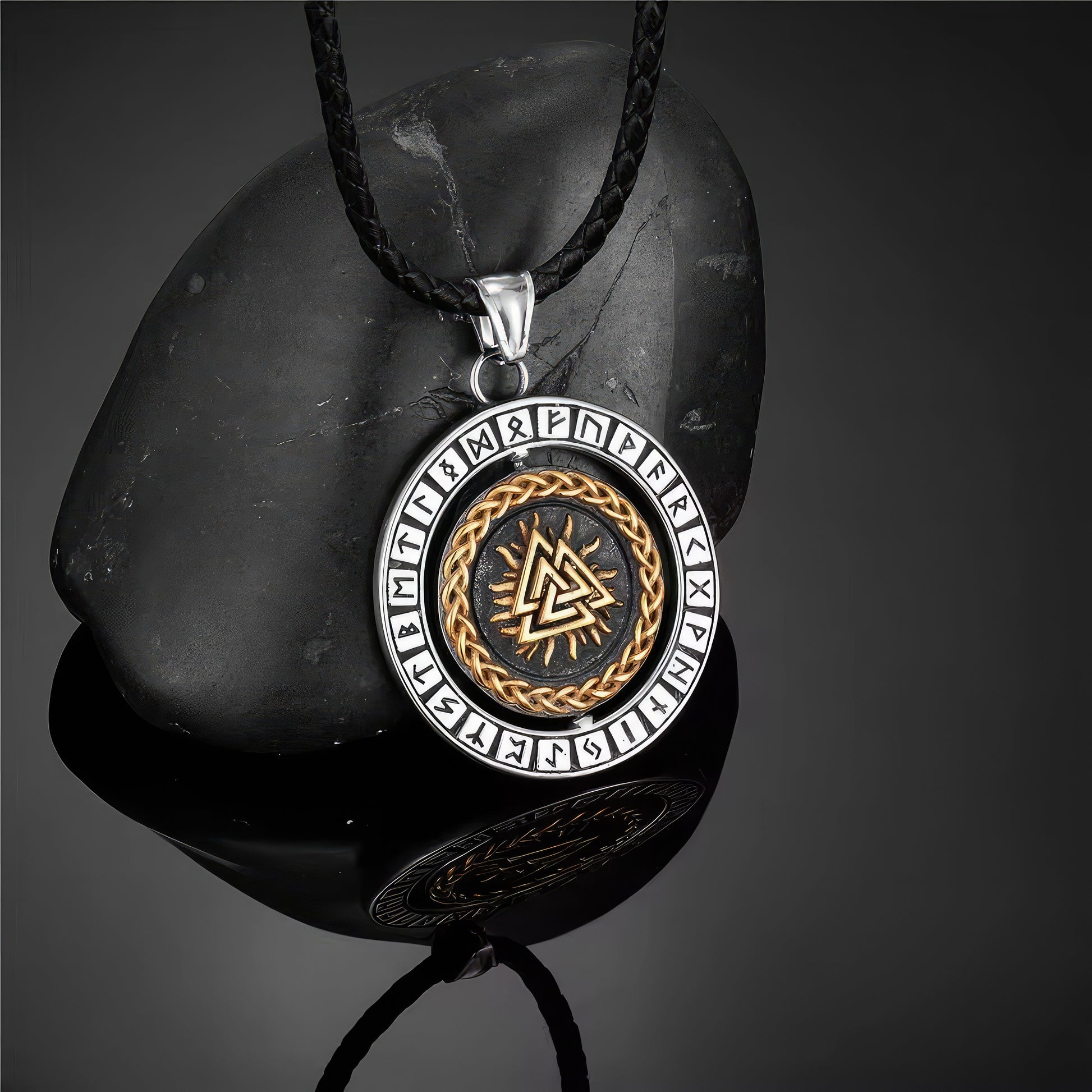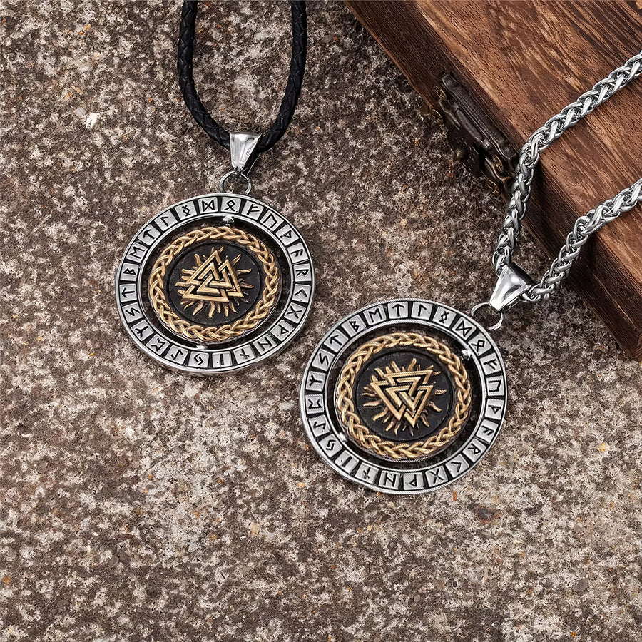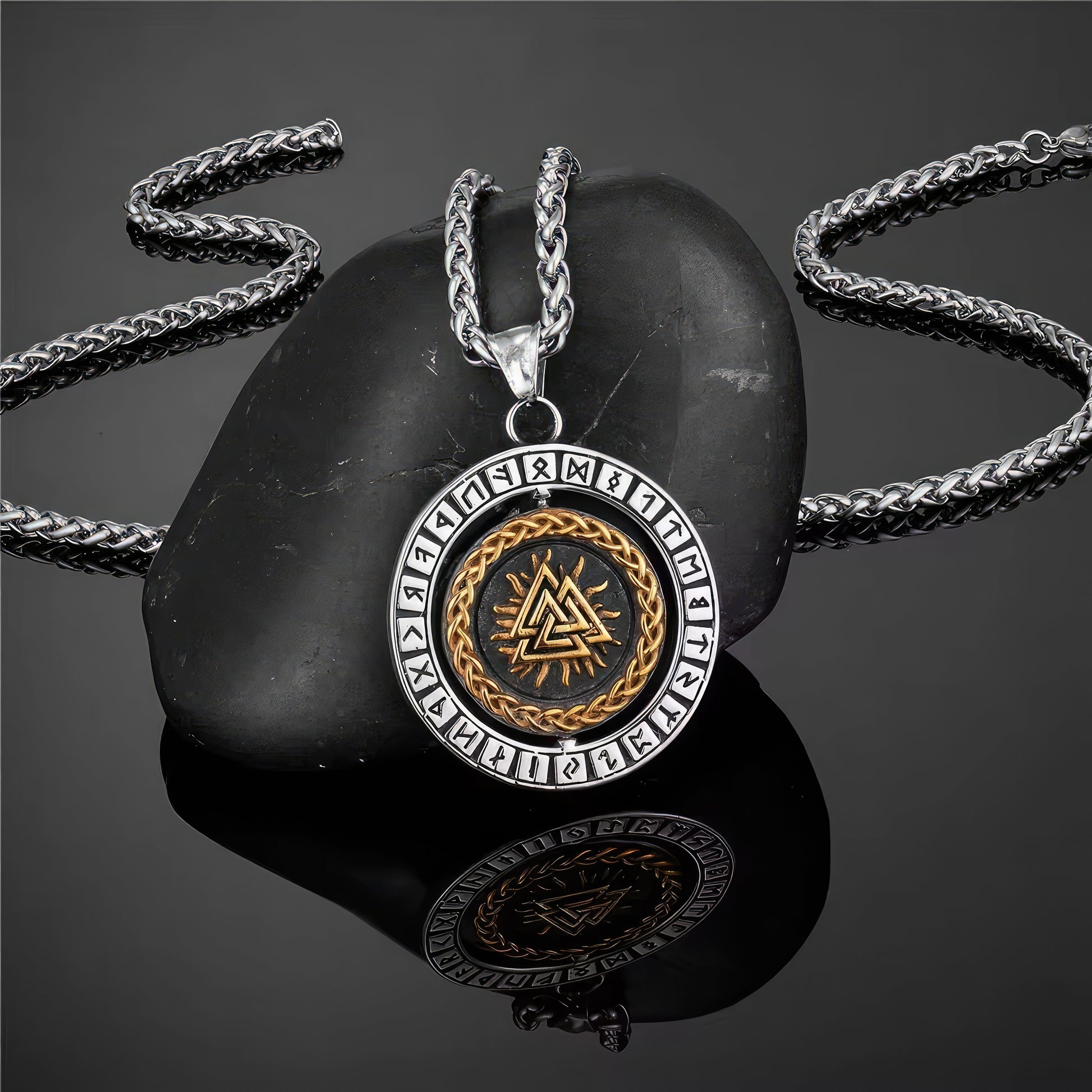 Discover the magic and mysticism of Norse mythology with the Norse Runes Rotation Necklace. This exquisite piece of jewelry features a rotating pendant adorned with the ancient Viking runes, Vegvisir, and Valknut symbols. Each element is meticulously crafted to represent guidance, protection, and the interconnectedness of life and death, making it not just a stylish accessory but also a meaningful amulet.