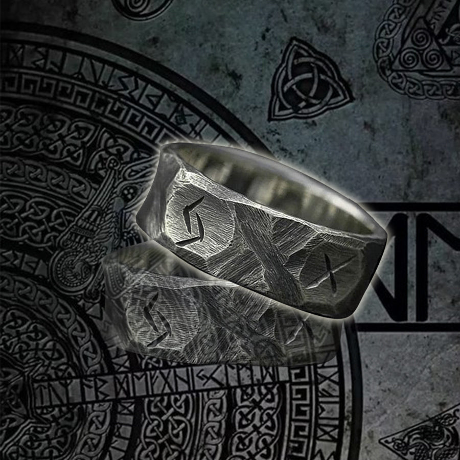 🔹 Design: Featuring authentic Norse runes and a rough-hewn texture, this ring is designed to evoke the raw power and mystique of ancient Viking warriors.