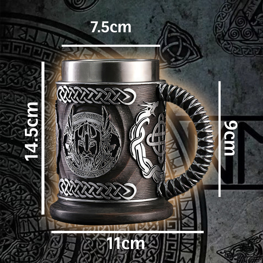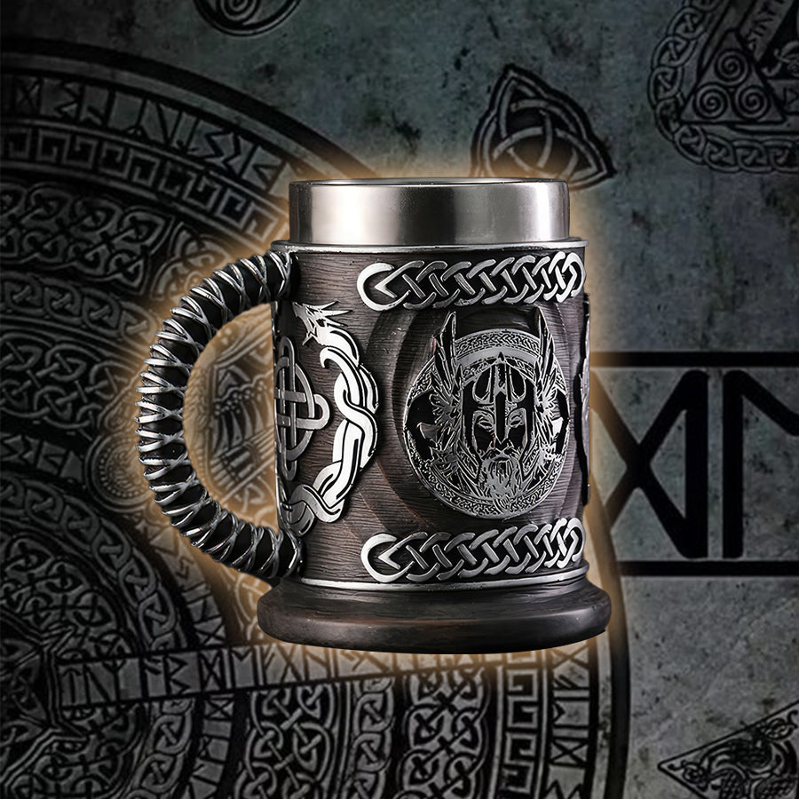 Crafted with intricate details depicting Odin, the all-father of Norse mythology, this mug is not just a drinkware item but a conversation starter. The robust design ensures durability while the stainless steel liner keeps your beverages at the ideal temperature. Whether for a pub, bar, or a themed party, this mug is an excellent gift for anyone who admires Viking lore and mythology.