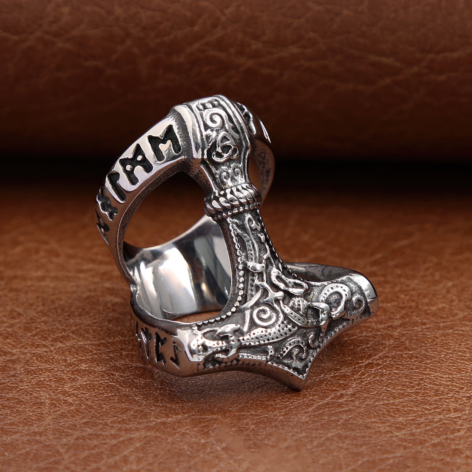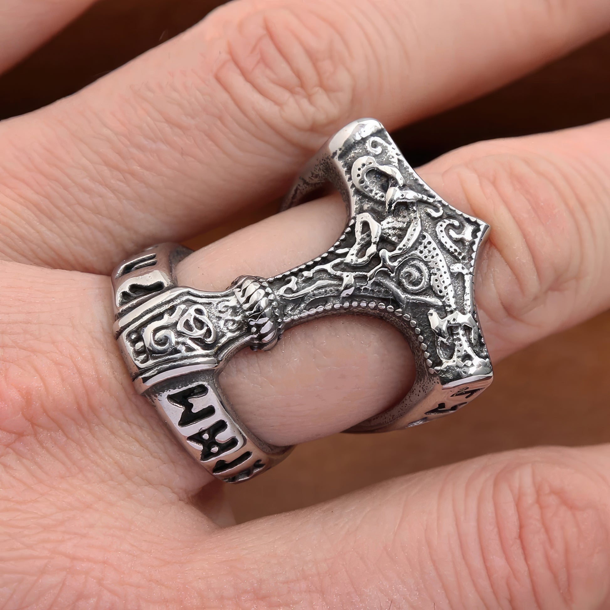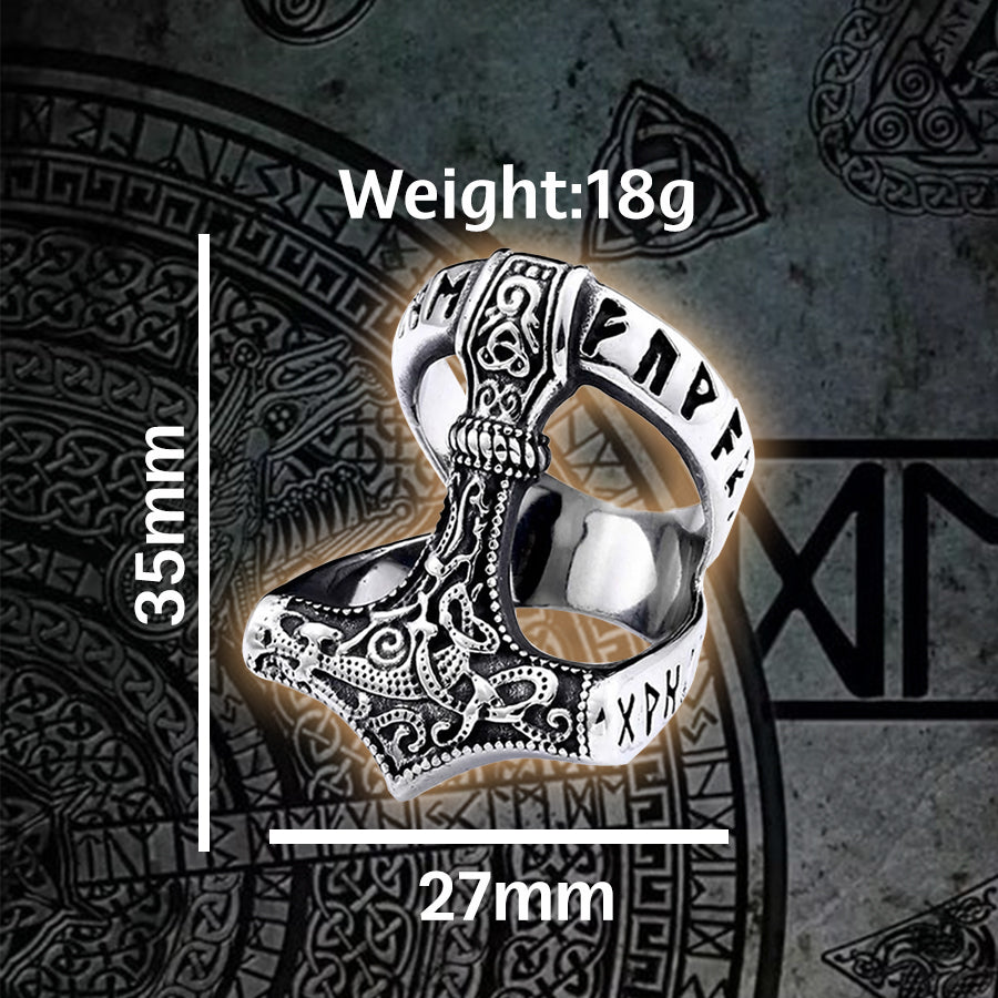 Whether you're looking for a unique piece to add to your jewelry collection or a meaningful gift for a special man in your life, this Odin's Hammer Viking Ring is an ideal choice. Its timeless design and high-quality craftsmanship ensure it will be a treasured piece for years to come. Suitable for everyday wear or special occasions, this ring is a must-have for anyone who admires Viking culture and mythology.