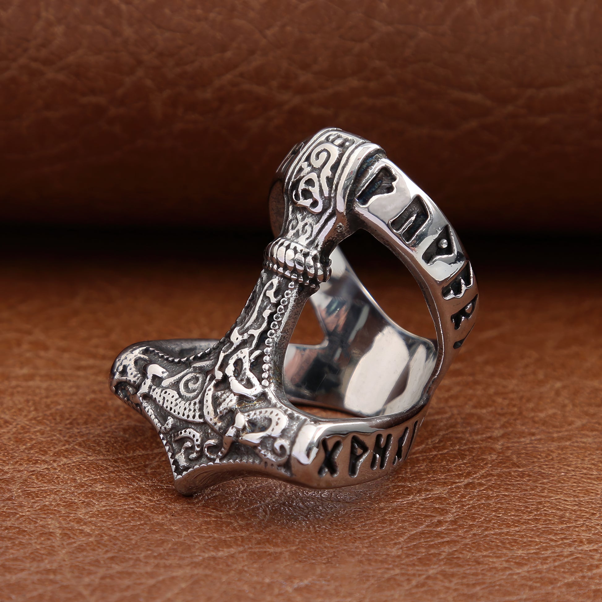 Embrace the power and mystique of the Norse gods with our Odin's Hammer Viking Ring. Crafted from durable stainless steel, this ring features intricate Nordic Odin rune designs, making it a striking piece of fashion jewelry and a powerful amulet. Perfect for the modern warrior, this ring symbolizes strength, protection, and the warrior spirit of the Vikings.