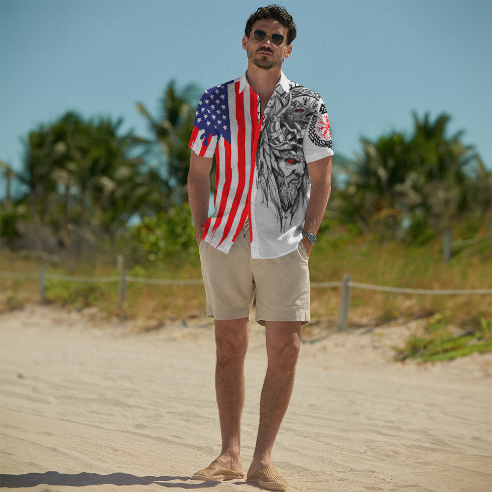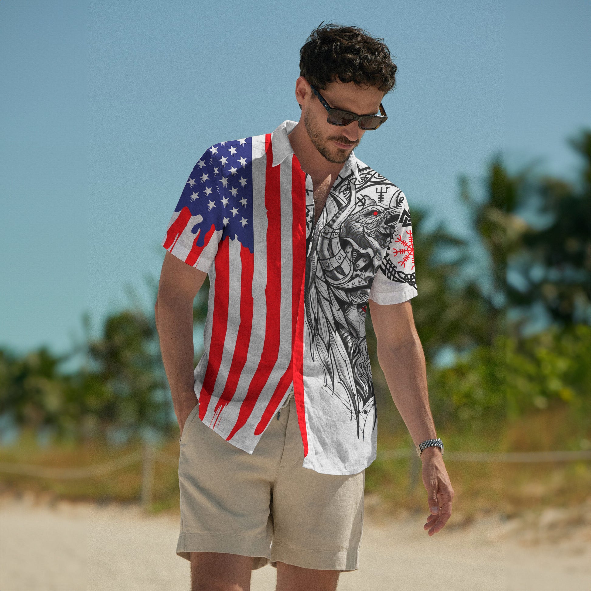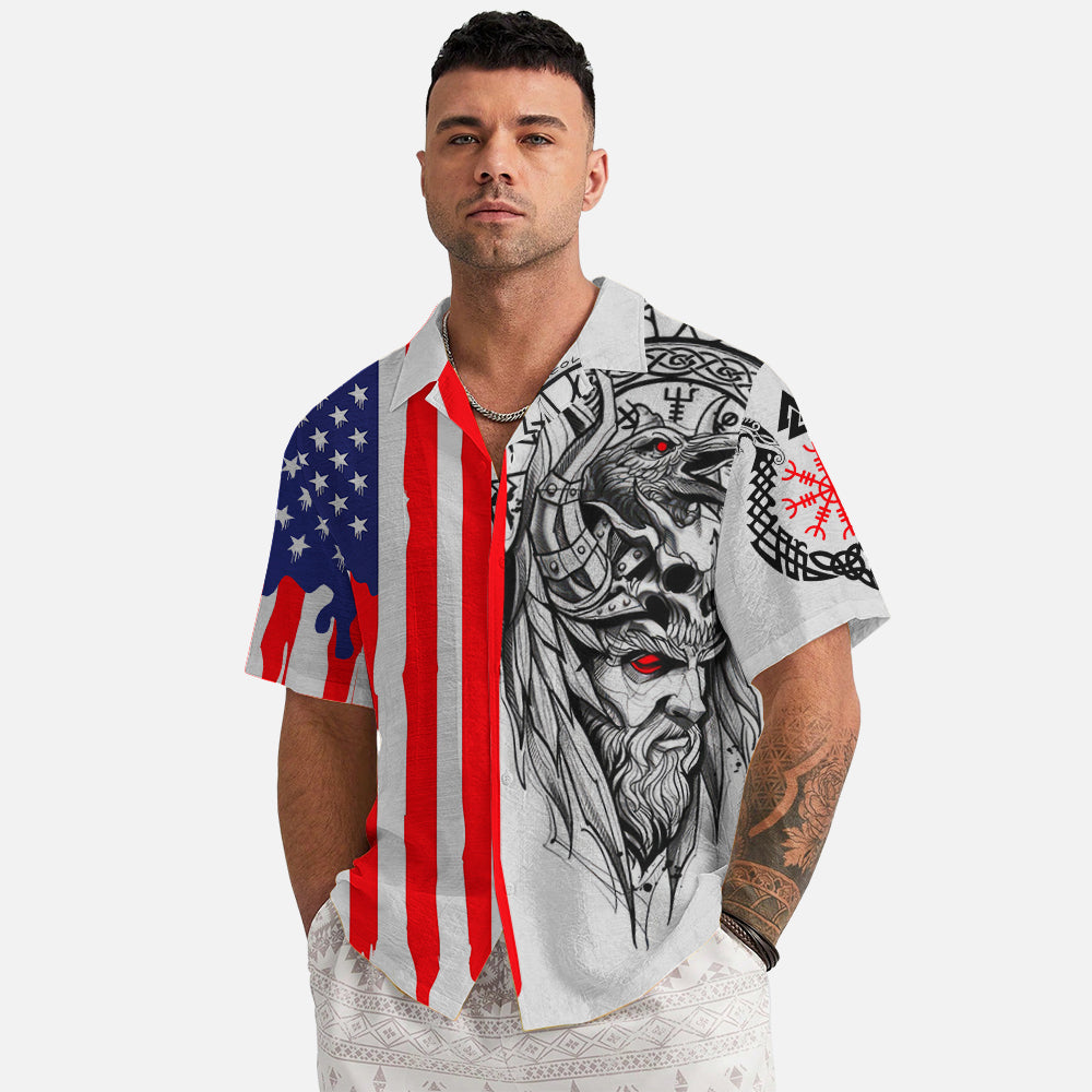 With a design inspired by Norse mythology, Odin's Patriotic Valor – Hawaii Shirt embodies the Viking spirit. Own it to confidently showcase your Viking style.
