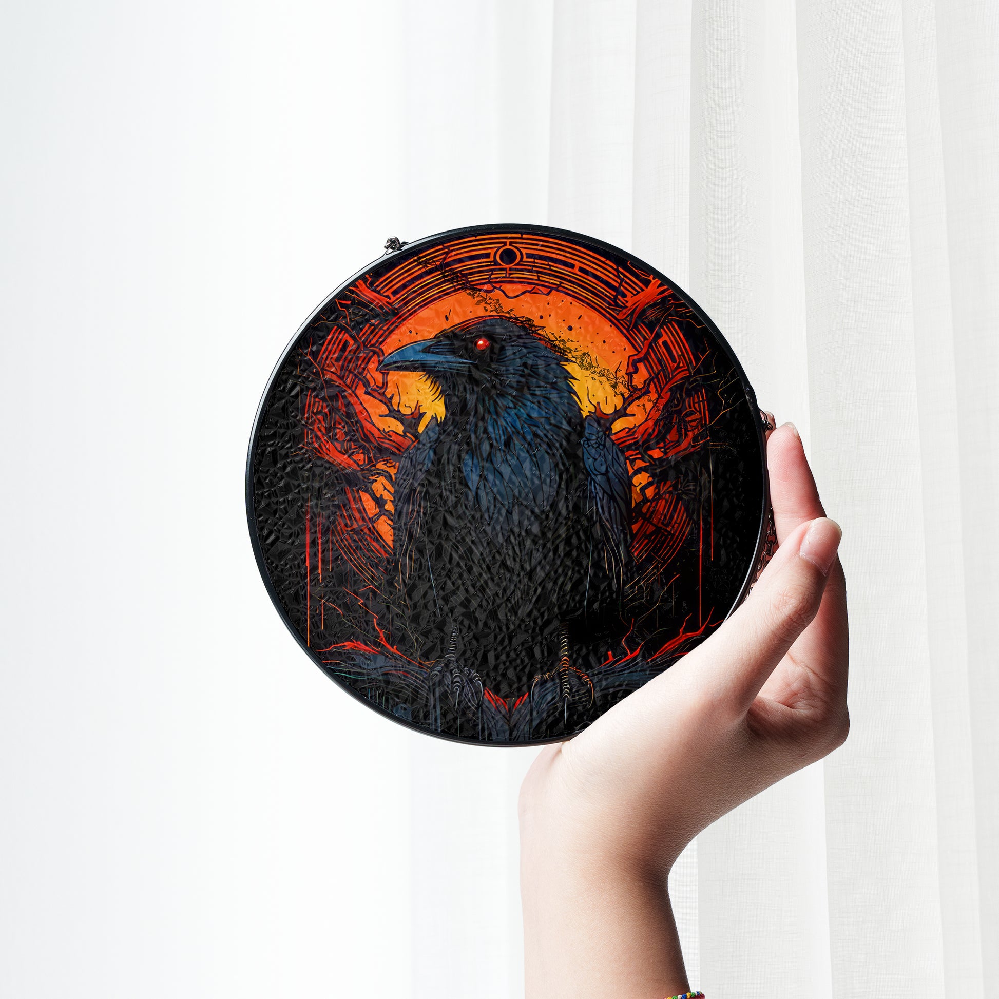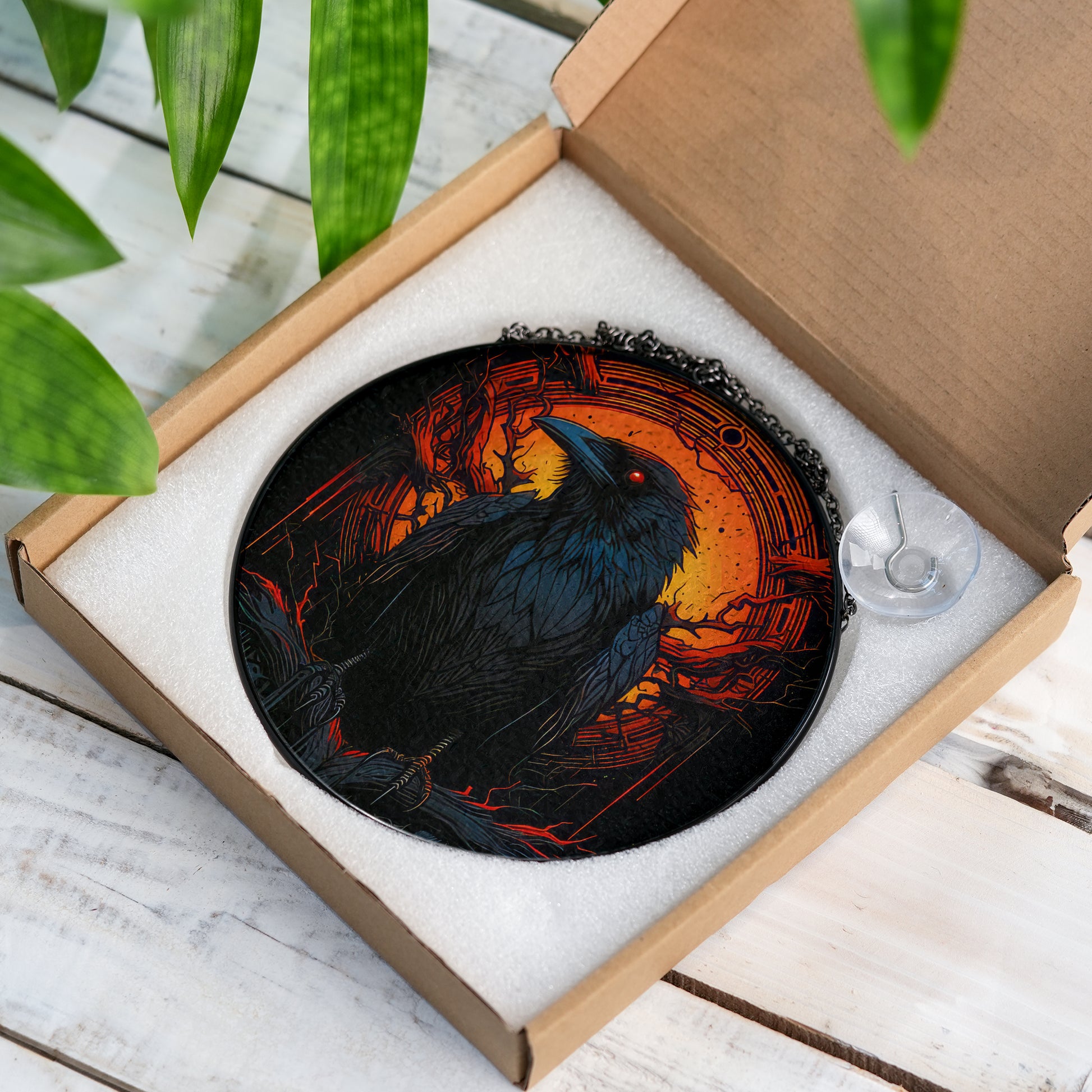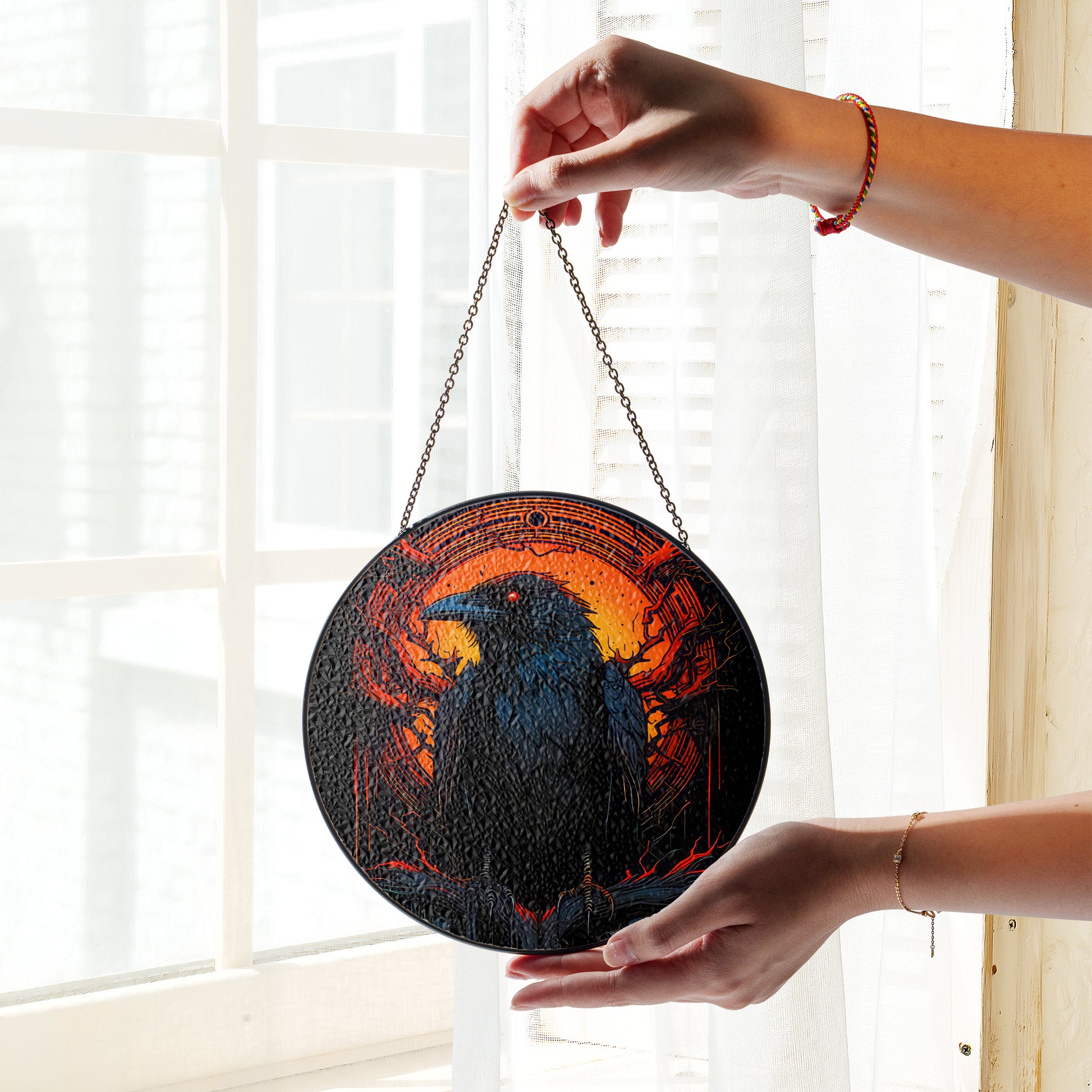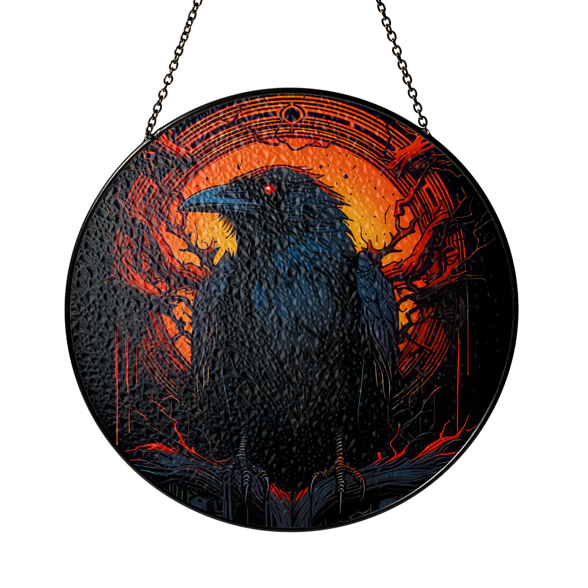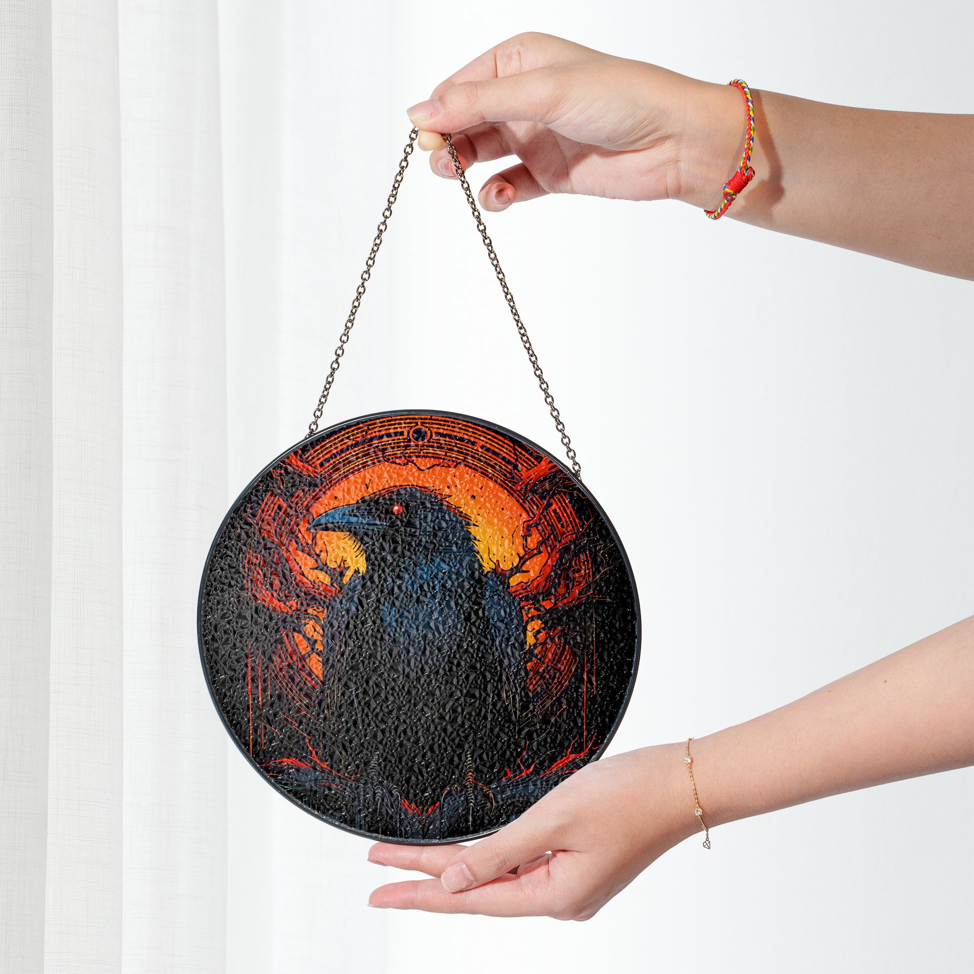 Raven of the Underworld - Viking Stained Glass Hanging Ornament