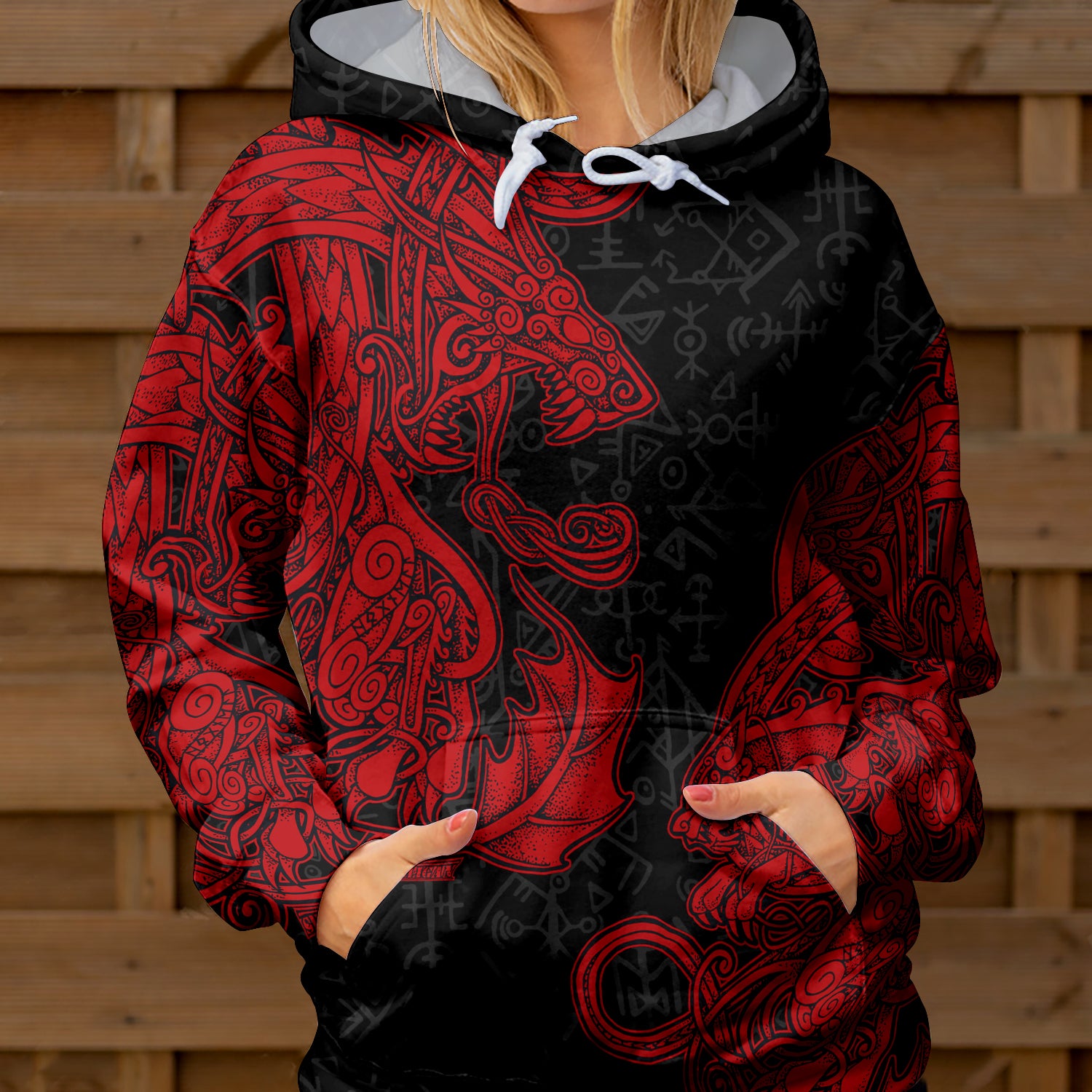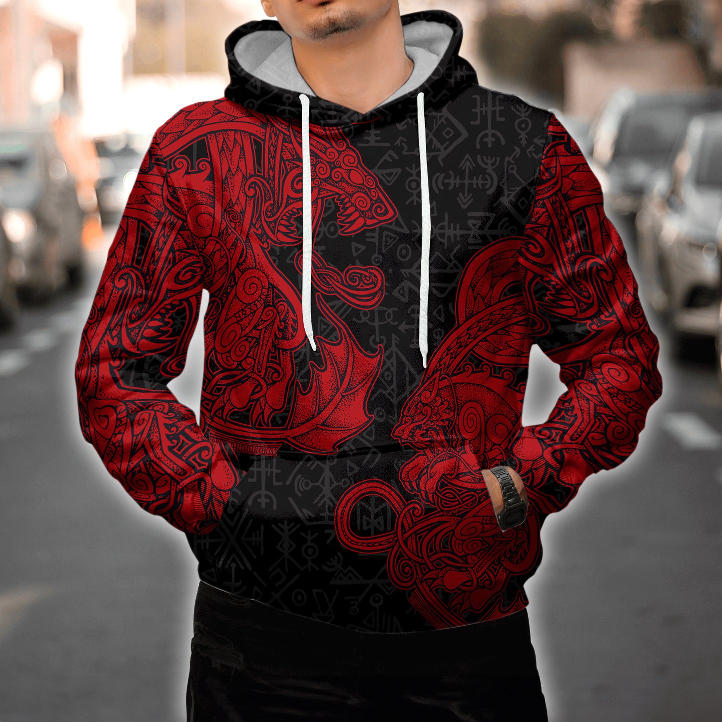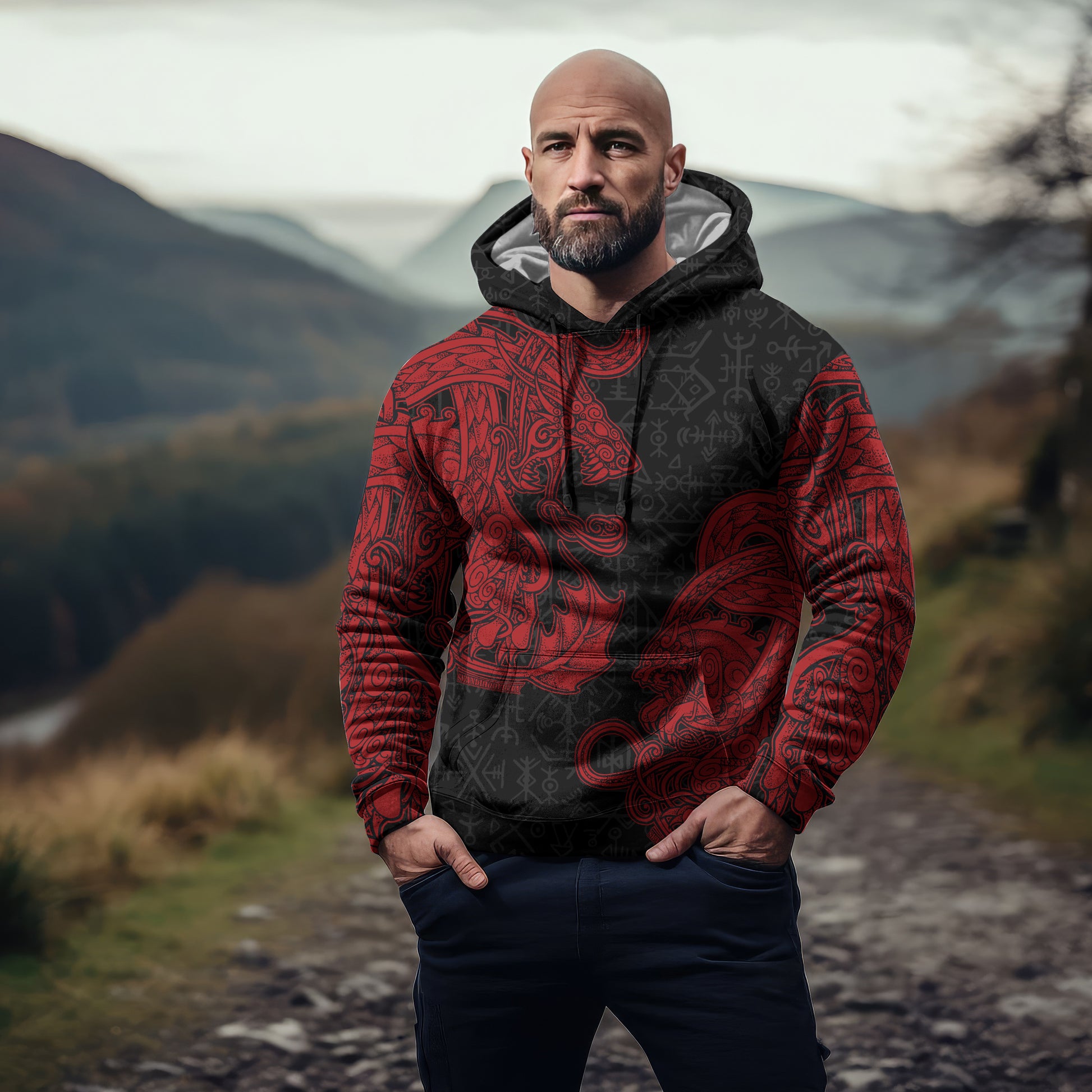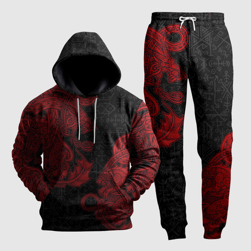 Red Norse Dragon Hoodie - Viking Hoodie Set