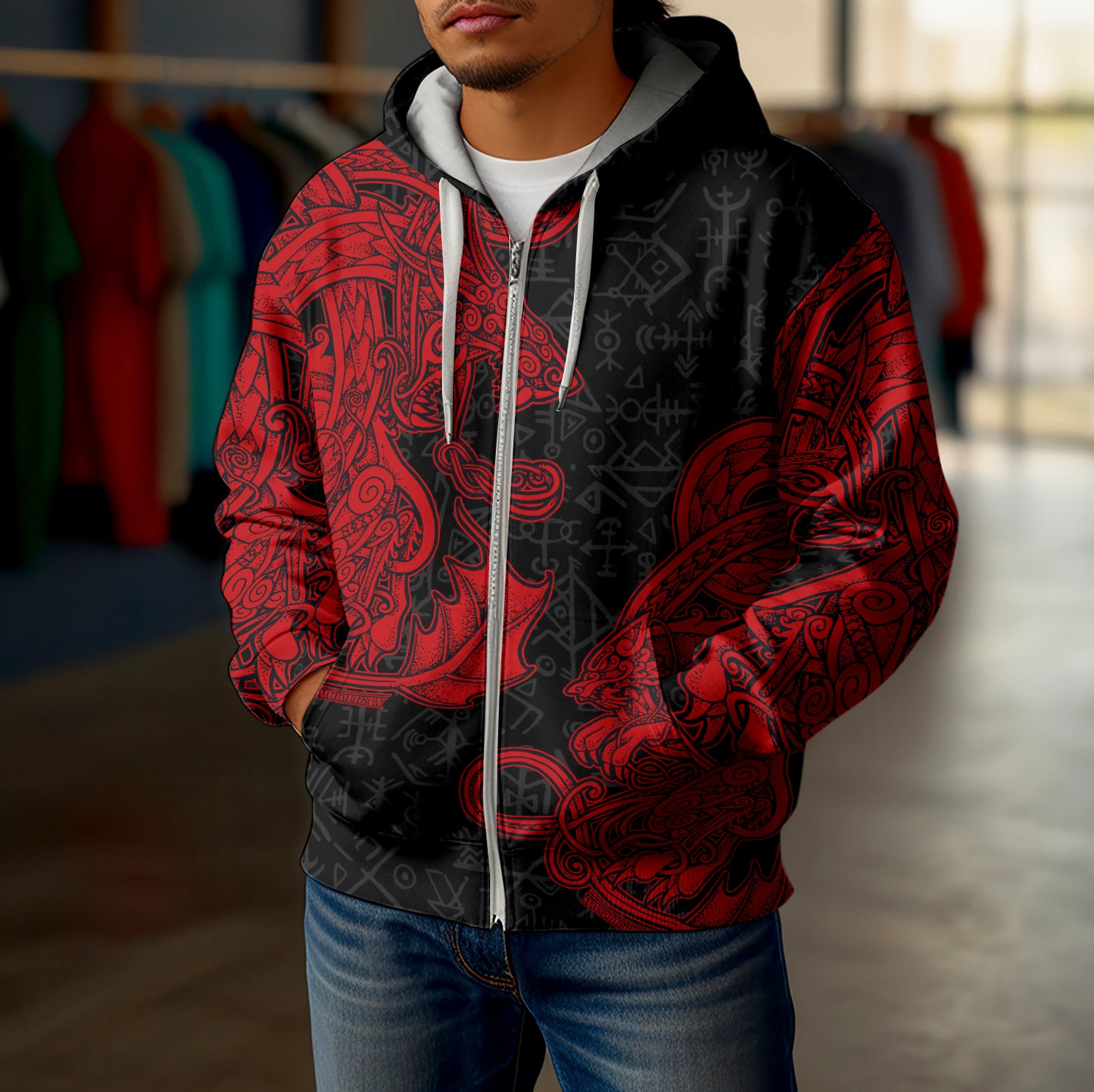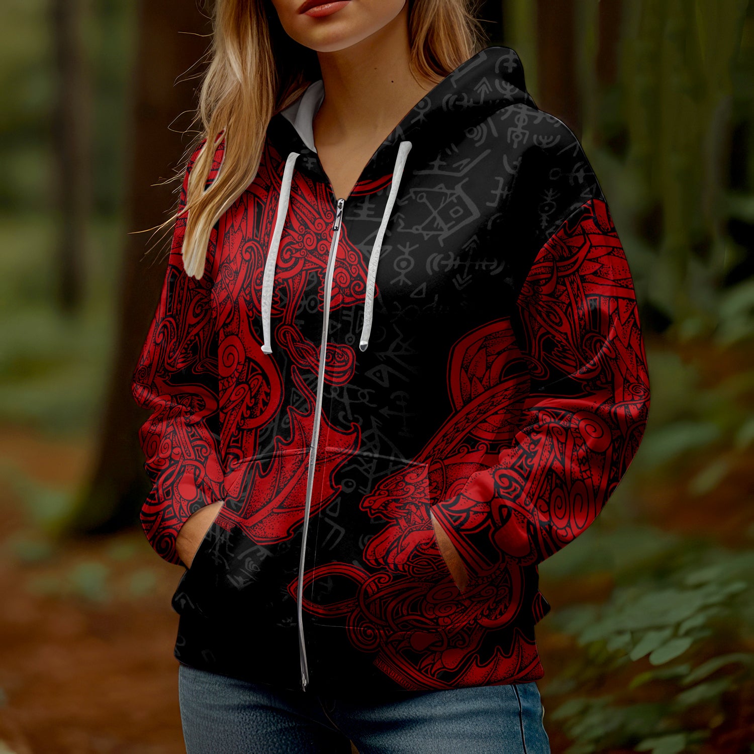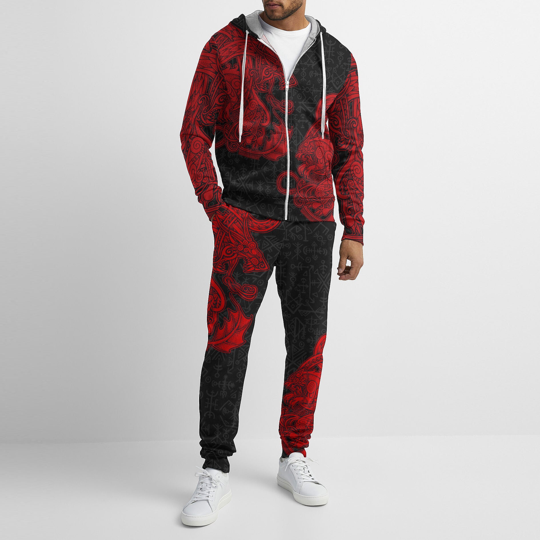 Red Norse Dragon Hoodie - Viking Hoodie Set