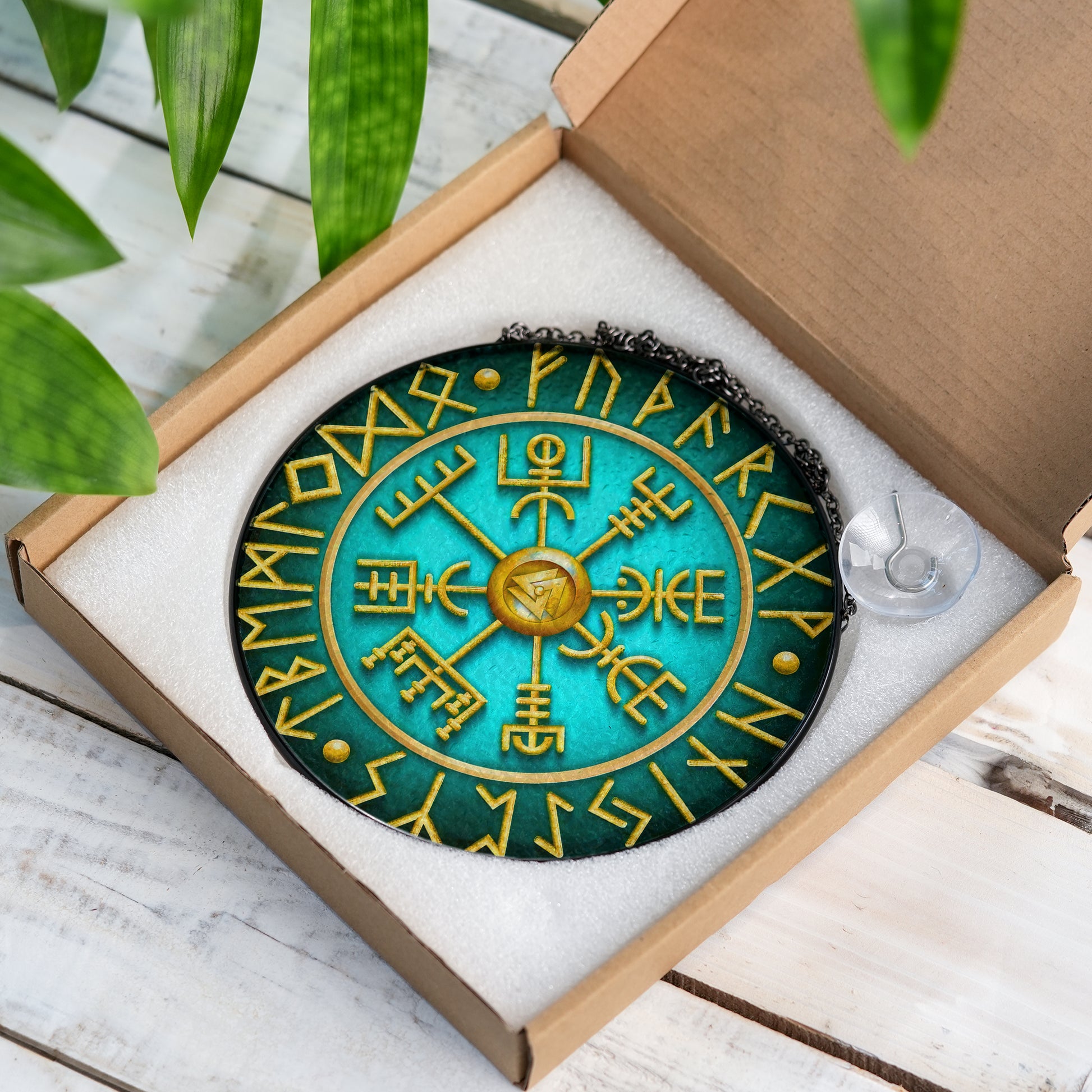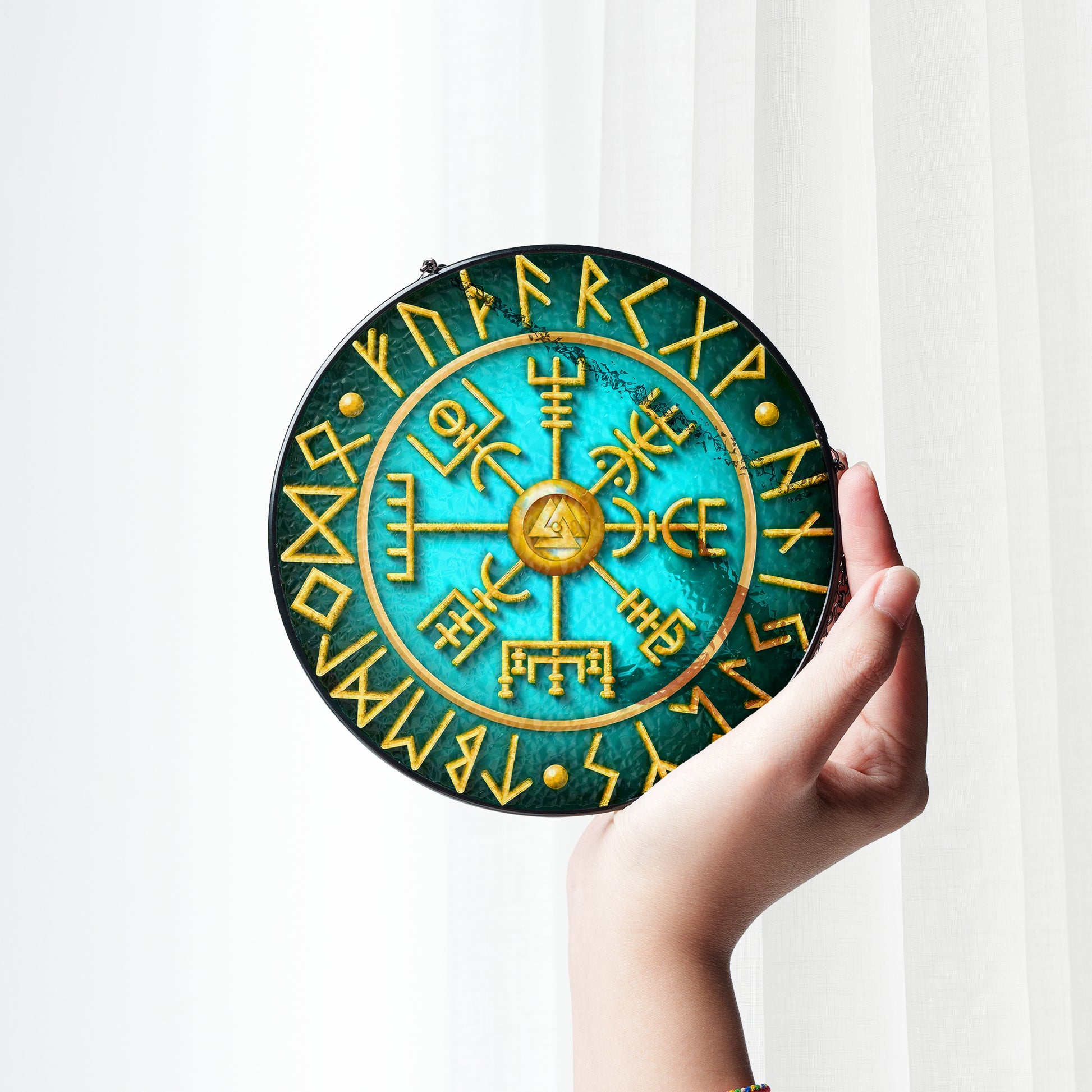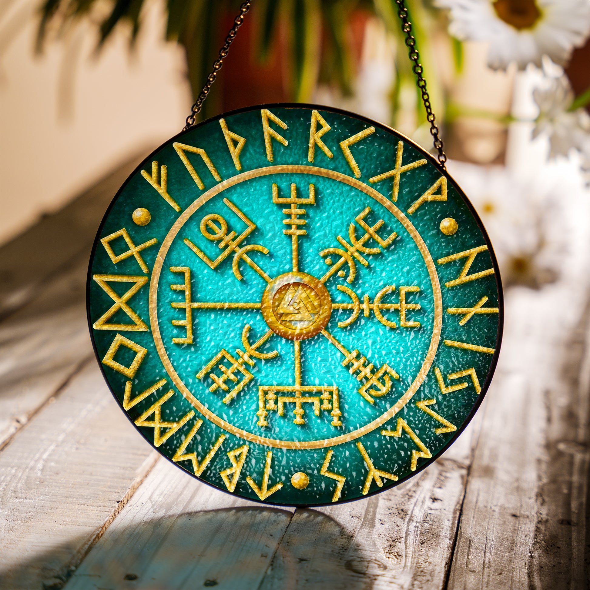 Runic Compass - Viking Stained Glass Hanging Ornament