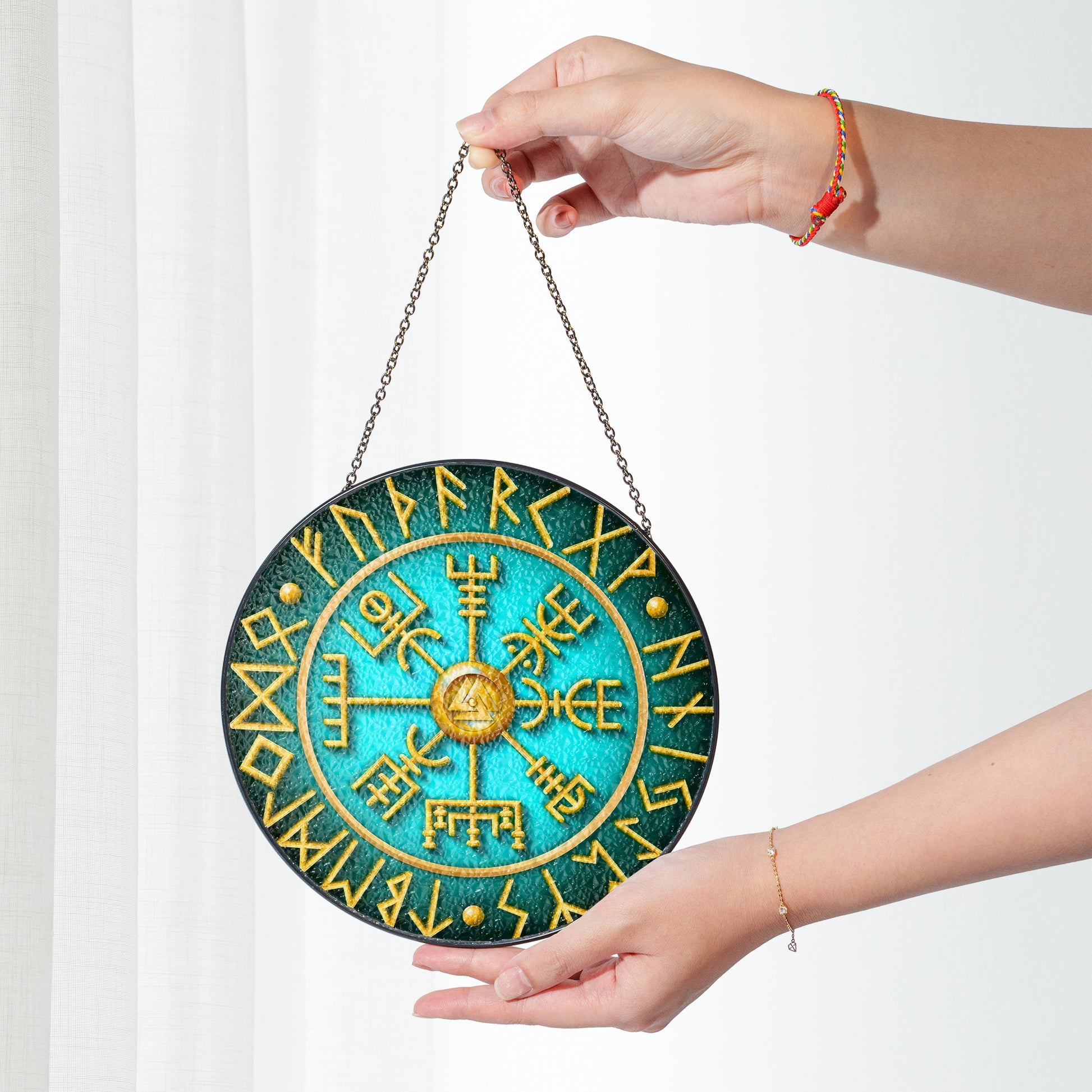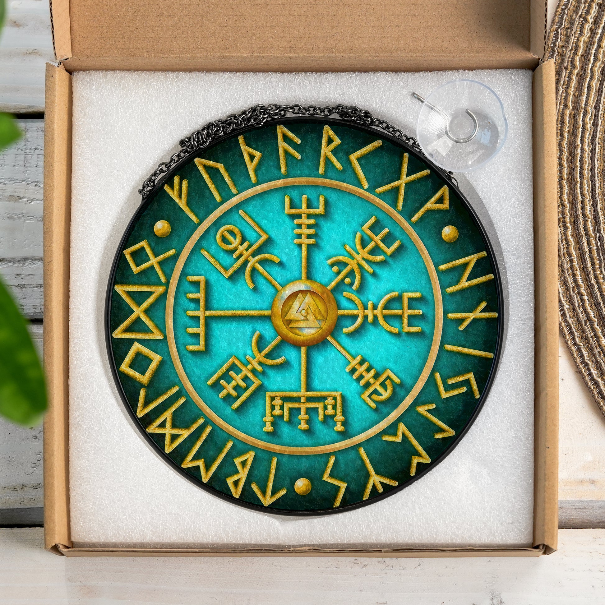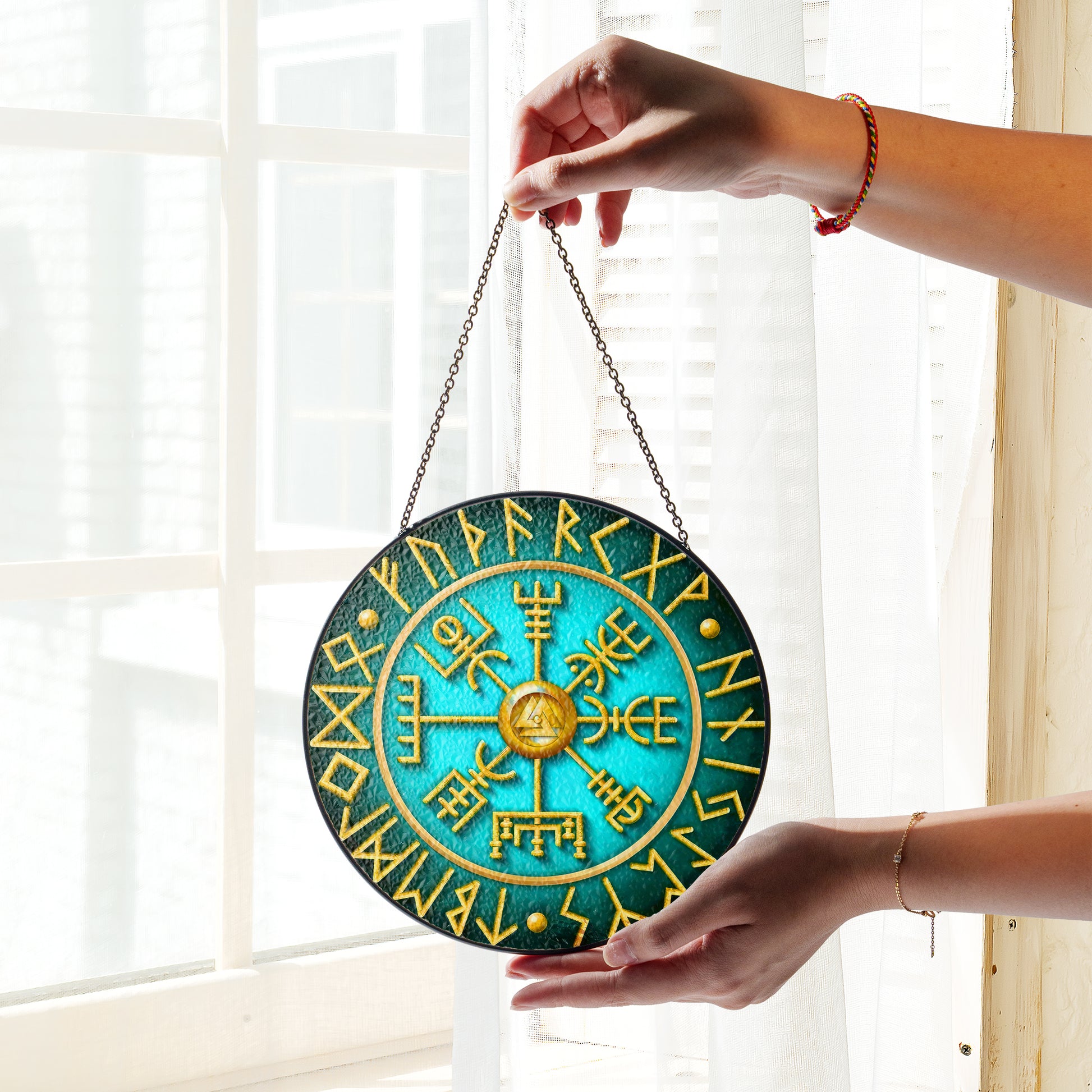 Runic Compass - Viking Stained Glass Hanging Ornament