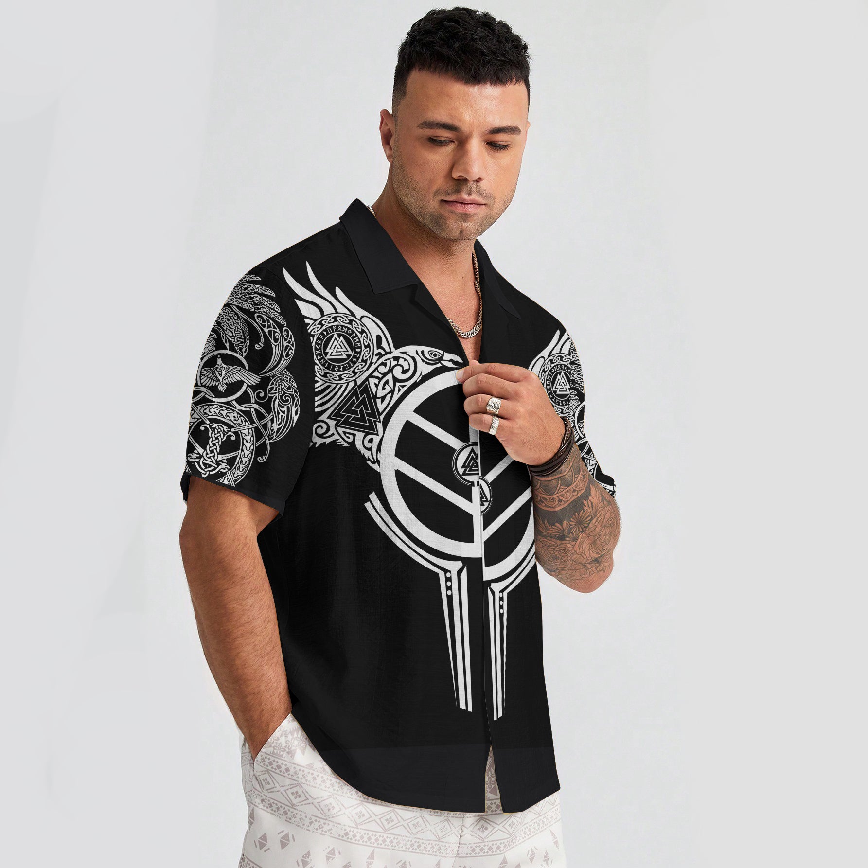 With a design inspired by Norse mythology, Runic Shield Hawaiian Shirt Shirt Shirt embodies the Viking spirit. Own it to confidently showcase your Viking style.