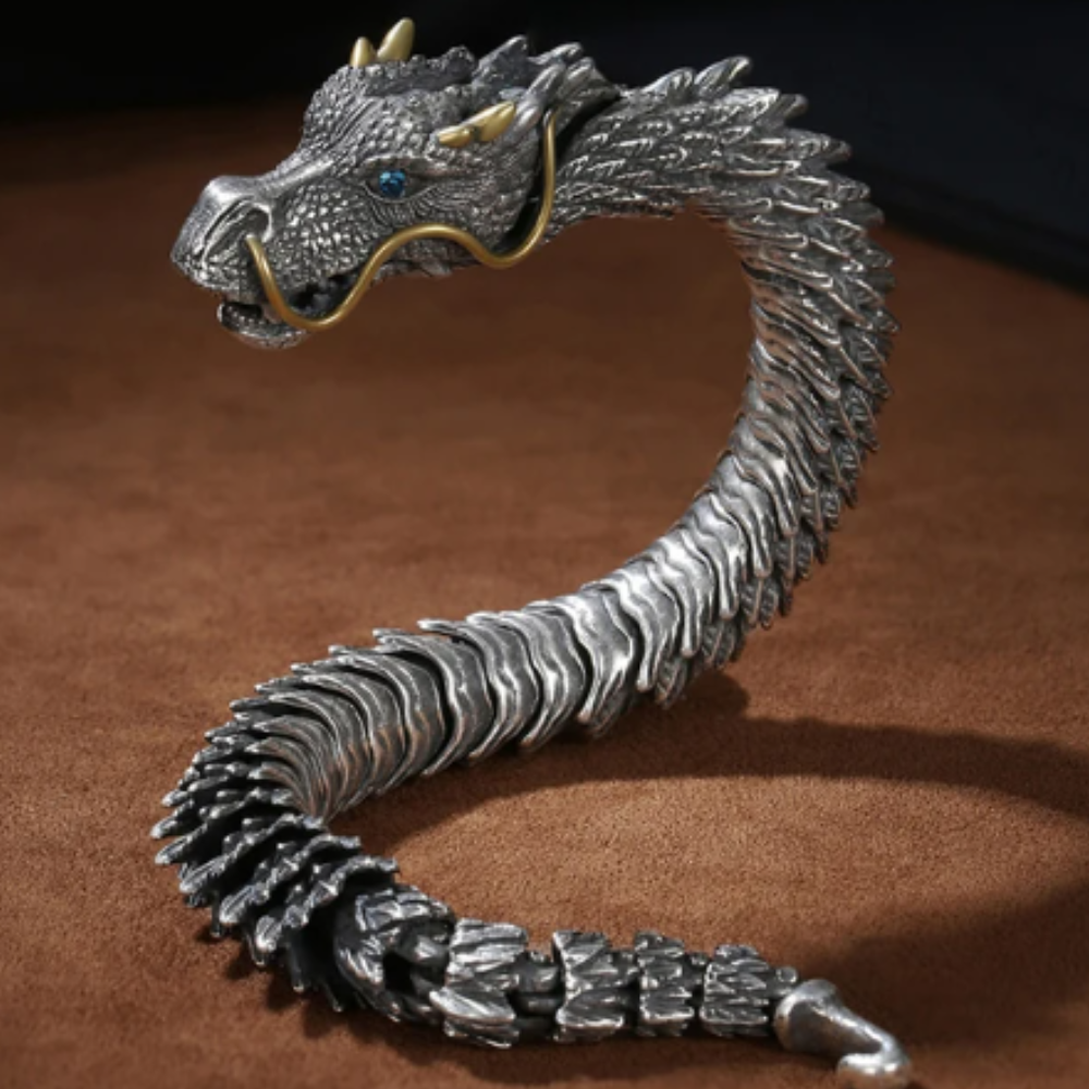 Unleash the power of ancient mythology with the Serpent Dragon Medusa Viking Bracelet from Mijonir. This striking piece is crafted from high-quality 925 sterling silver, featuring a fierce dragon-serpent head with blue gemstone eyes and intricate scale patterns. The bracelet coils around your wrist like a mythical creature, embodying the strength and mystique of both dragons and Medusa. Perfect for those who appreciate bold and unique jewelry, this bracelet is a testament to timeless craftsmanship and Viking-inspired design.