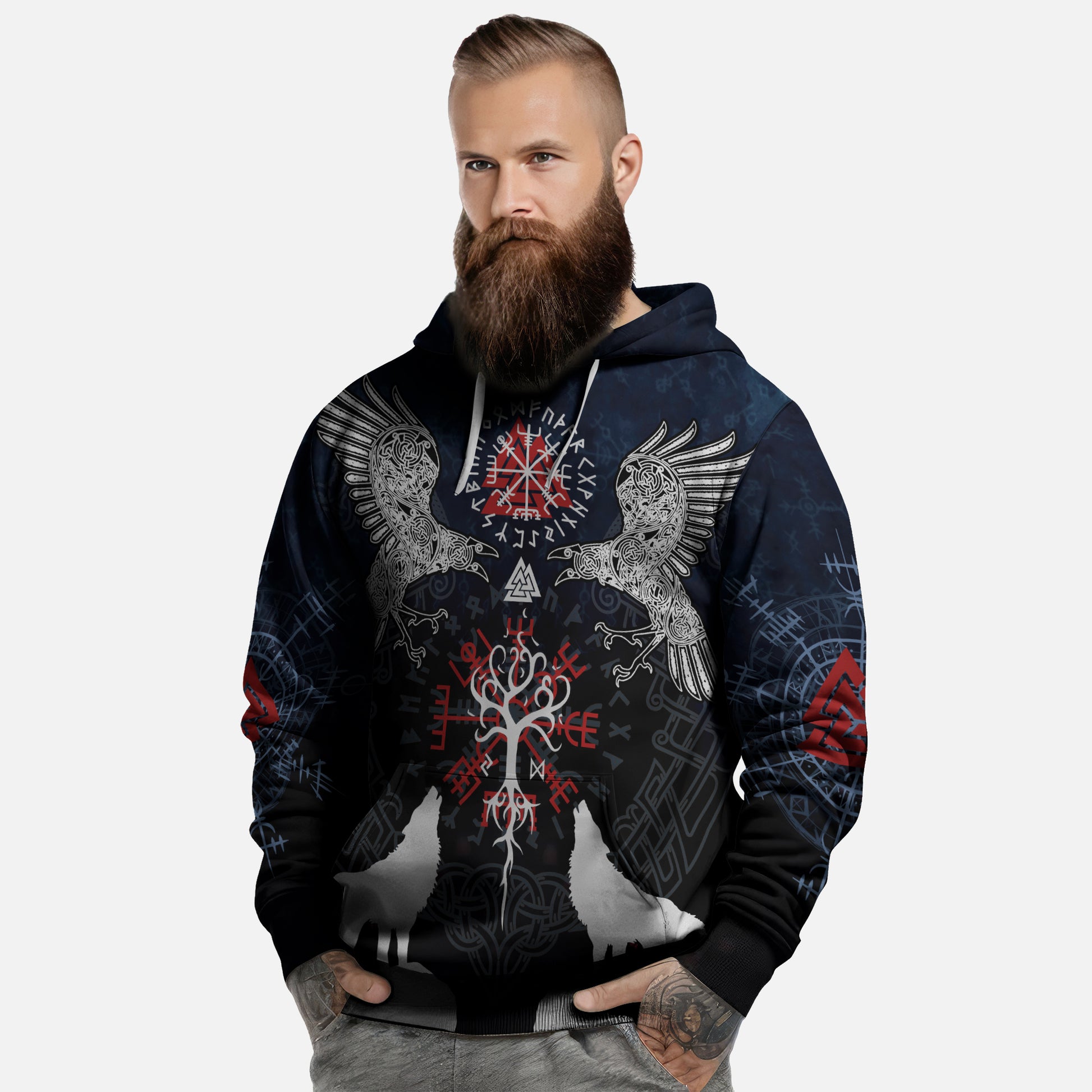 • All-Over Print: Bold Viking-themed designs printed across the entire hoodie, making it a unique addition to your wardrobe.