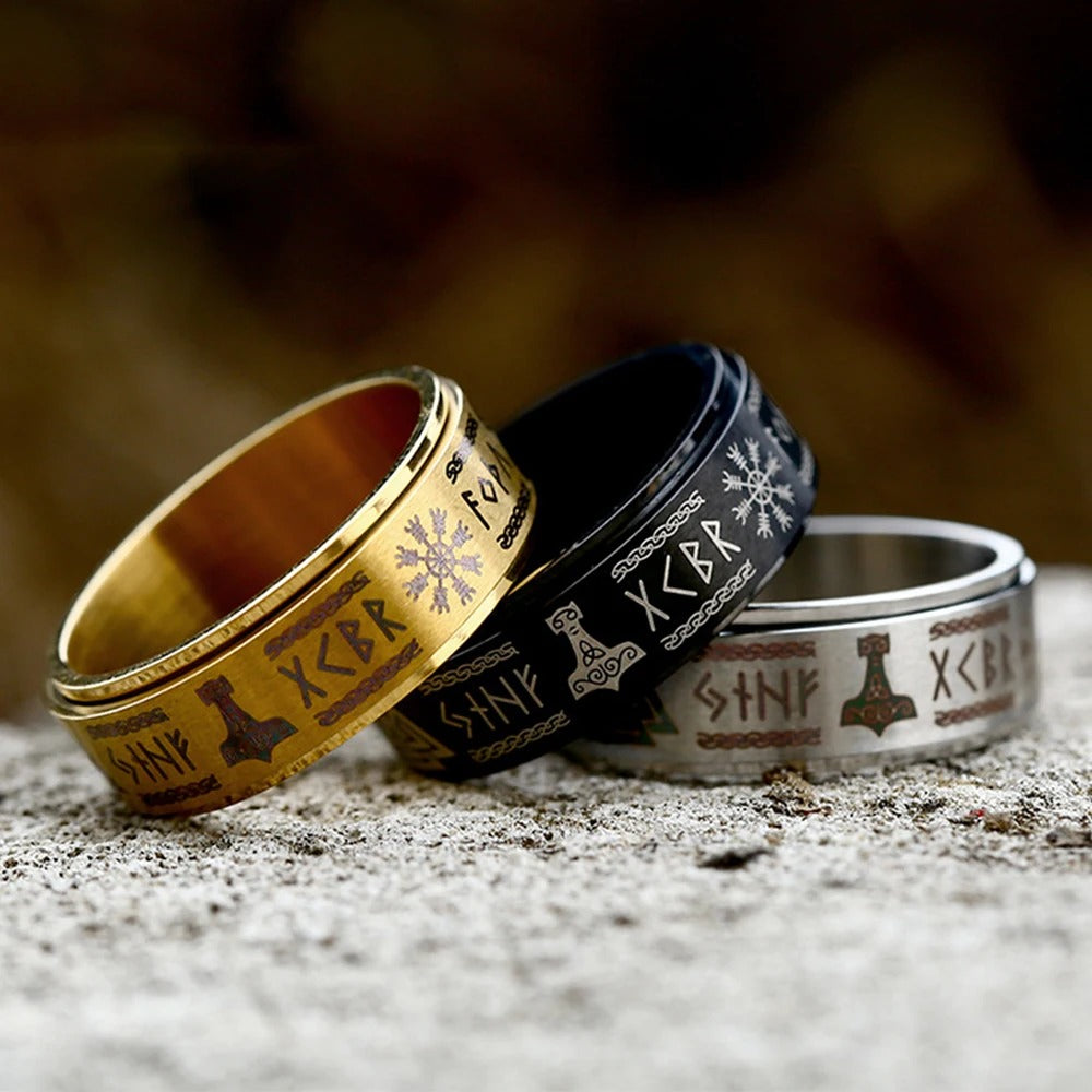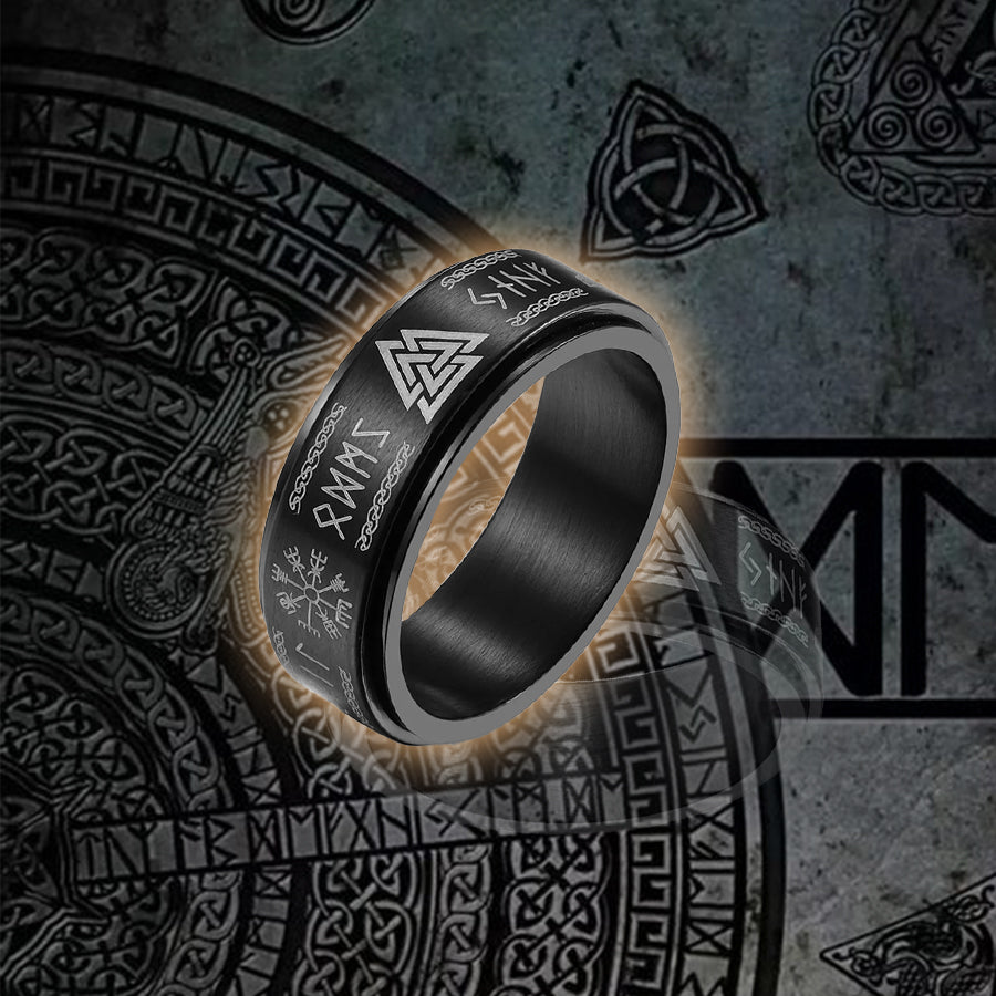 Discover the perfect blend of style, tradition, and functionality with our Nordic Viking Text Rotatable Titanium Steel Couple Ring. This exquisite ring features ancient Viking runes engraved around a rotatable band, making it not only a unique piece of jewelry but also a functional decompression tool. Crafted from high-quality titanium steel, this ring is durable, hypoallergenic, and designed to last.