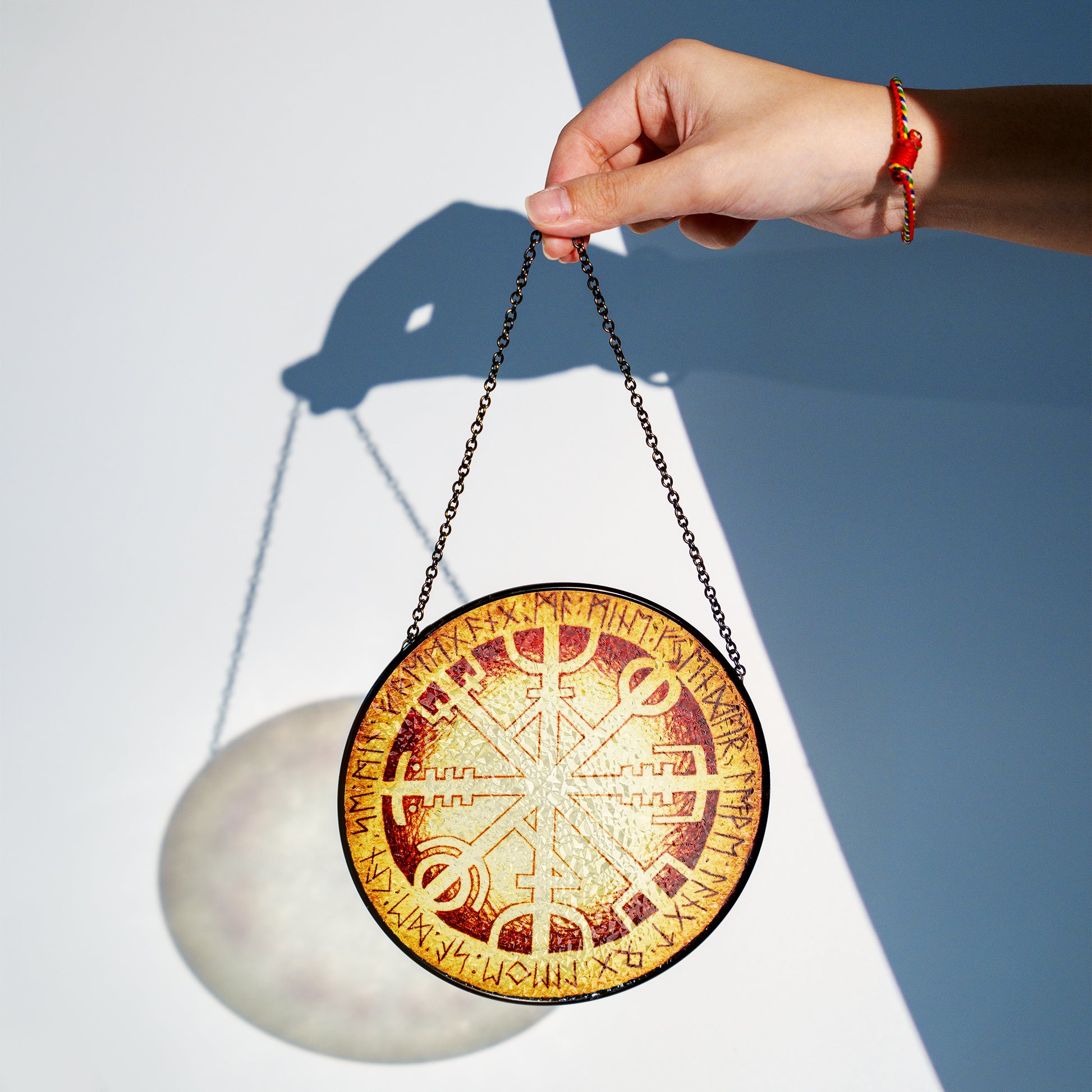 Vegvisir Rune Shield - Viking Stained Glass Hanging Ornament